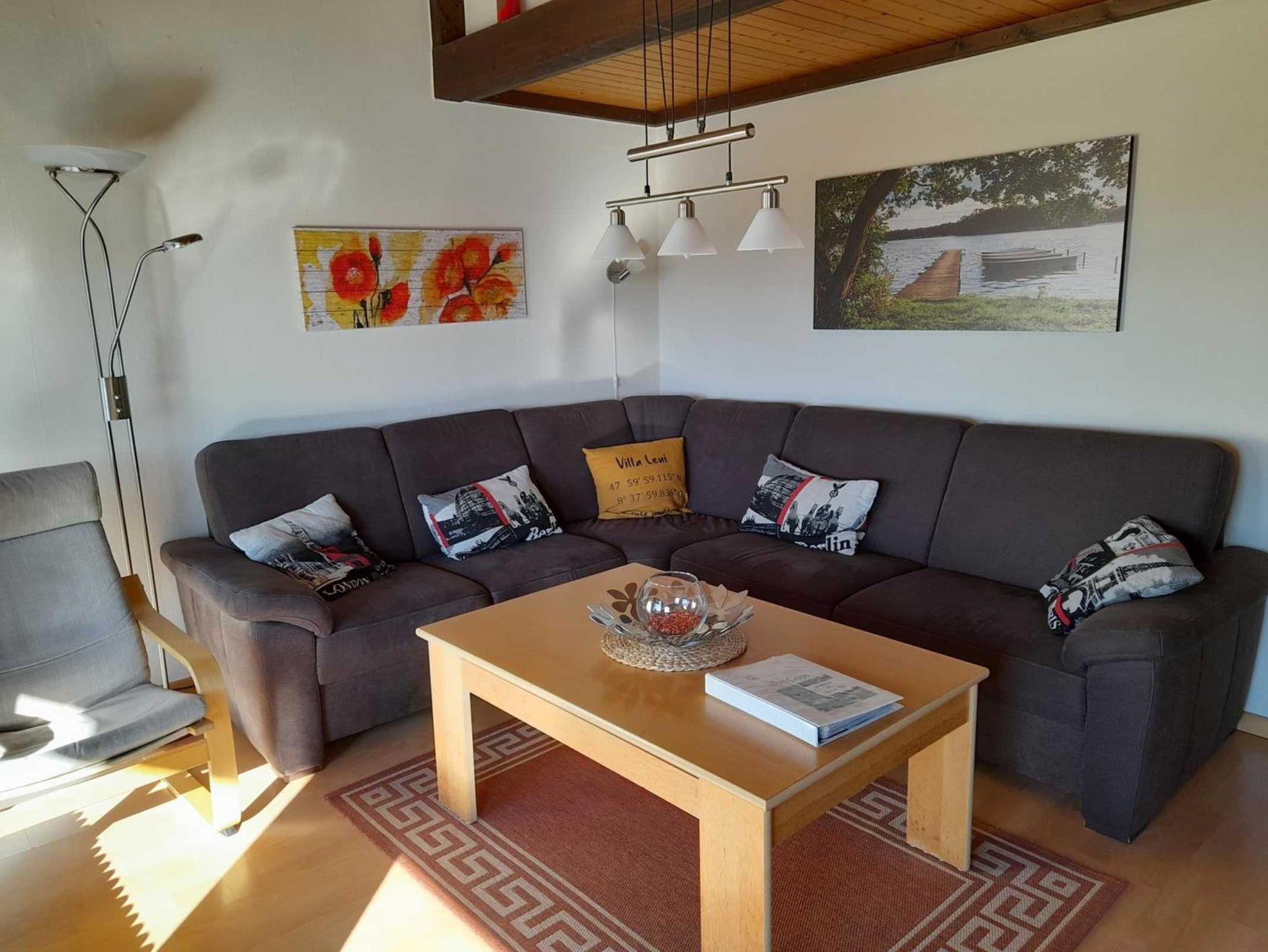 Der großzügige Wohnbereich ist mit einer gemütlichen Sitzecke ausgestattet. Smart-TV, Stereoanlage, Spiele und Bücher tragen zu Ihrer Unterhaltung bei.