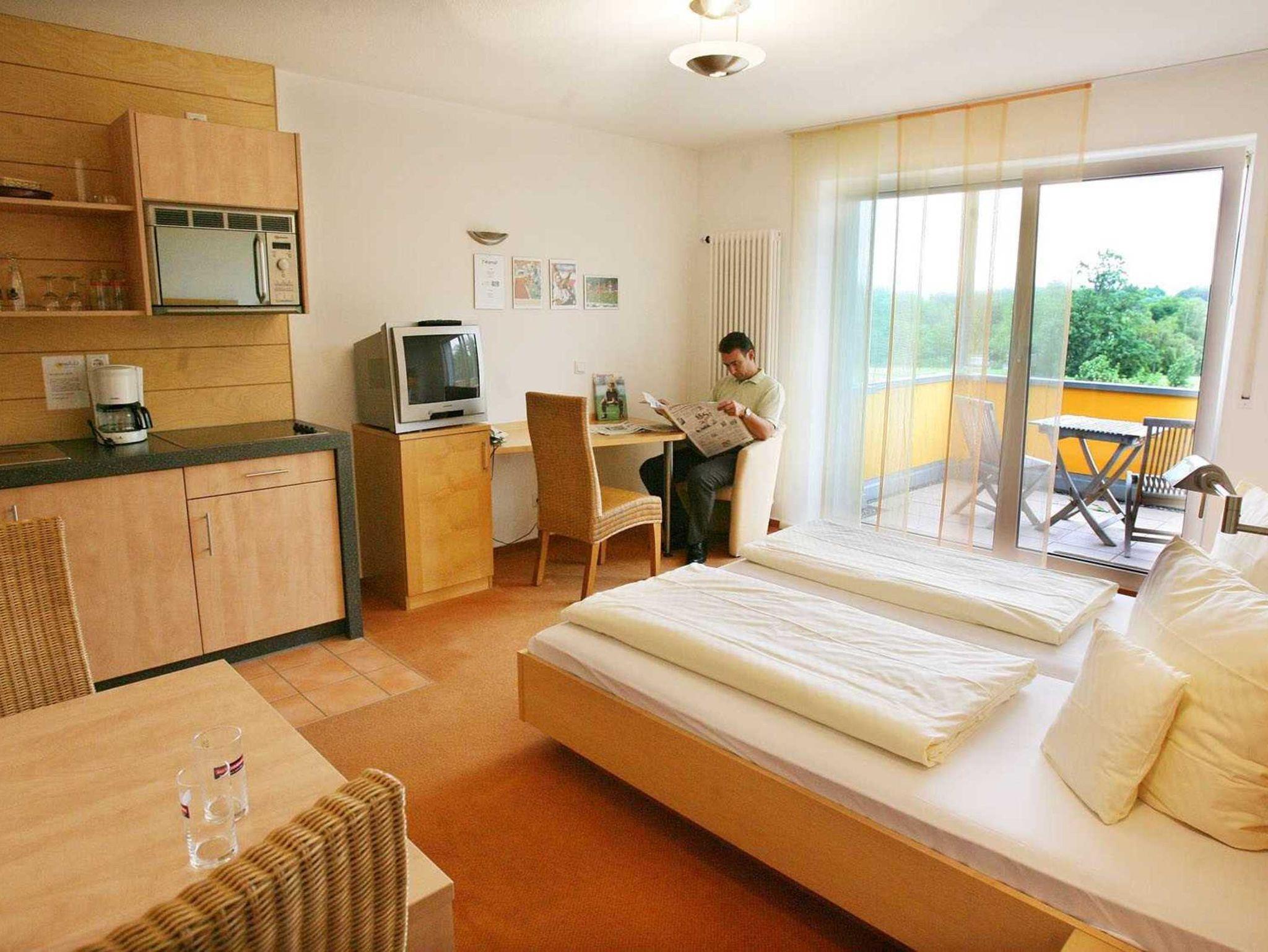 Für einen kurzen Aufenthalt bietet sich unser 1-Zimmer-Apartement mit Doppelbett und vollwertiger Küchenzeile und Balkongeradezu an.