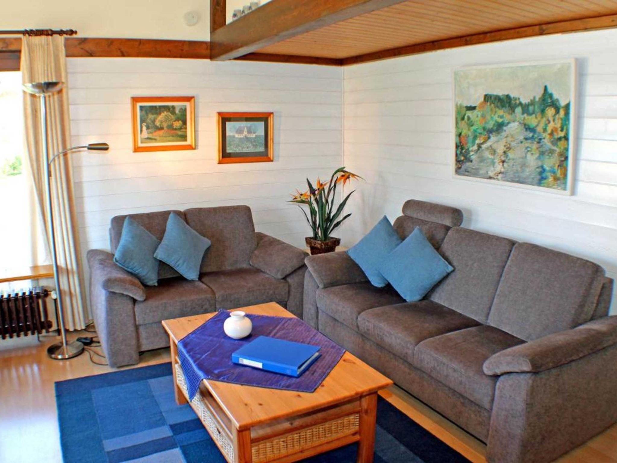 Sie wohnen in einem 3-Zimmer-Ferienhaus, sehr gut gelegen in oberster Reihe des Feriendorfes, für bis zu 4 Personen (5 bei Nutzung des Notbettes unter Dach) auf ca. 48 m² Wohnfläche.