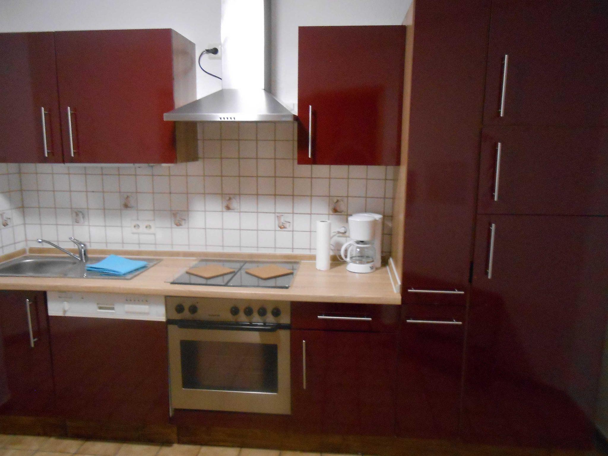 Schöne große Wohnung , 75 qm , mit Terrasse . großes Wohnzimmer , separate Küche , zwei Schlafzimmer , zwei Doppelbetten , Betten können auseinander gestellt und als Einzelbett genutzt werden , Bad mit WC / Dusche , Fenster , großer Farbfernseher , kostenloses WLAN , kostenloser Parkplatz beim Haus . Eingang über Terrasse möglich . Voll ausgestattete Küche mit Spülmaschine . Incl. Nebenkosten .