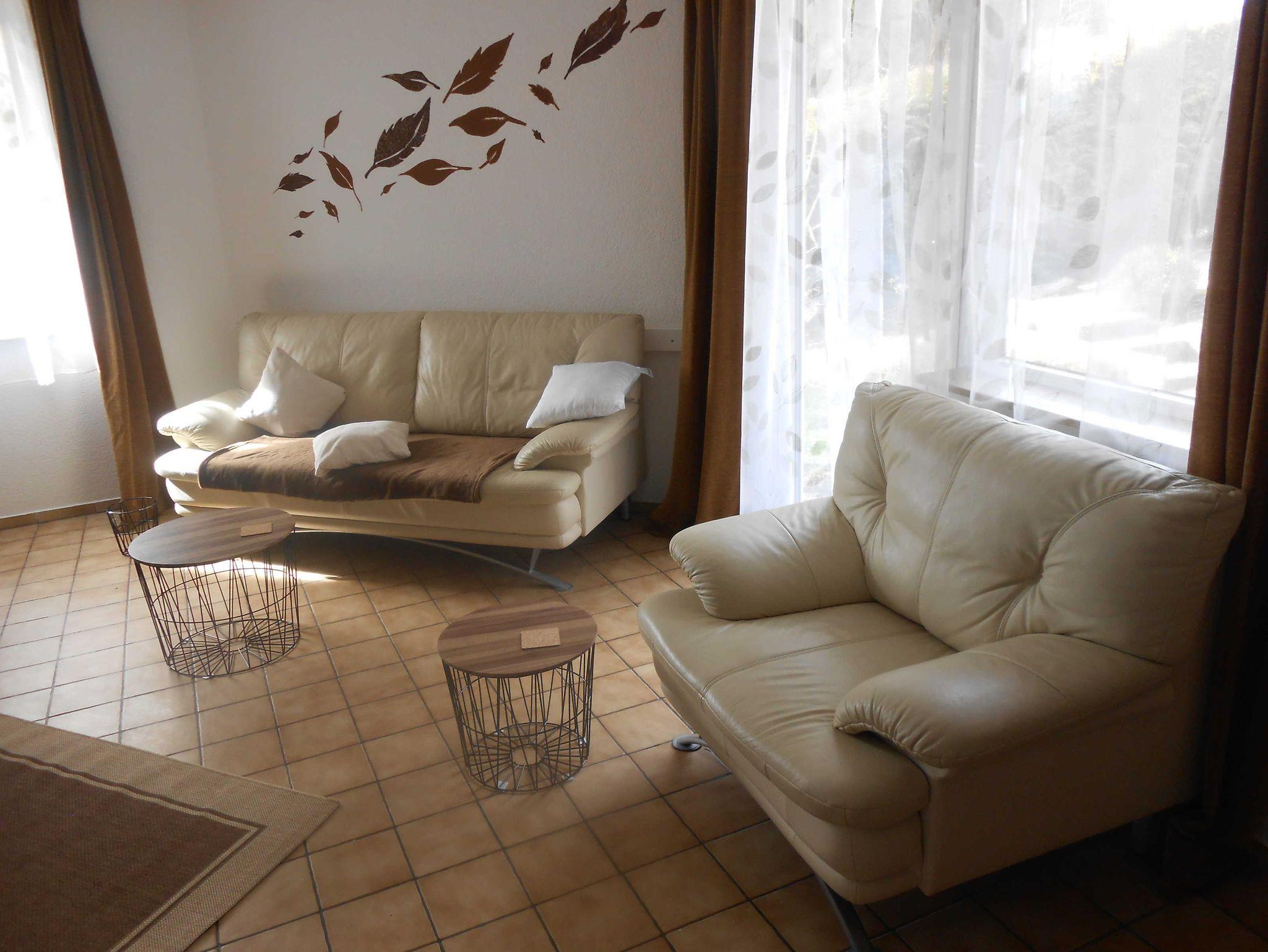 Die 3-Zimmer Nichtraucher Ferienwohnung mit 75 qm, bietet Platz für bis zu 4 Personen. Sie verfügt über 2 separate Schlafzimmer, die Schlafzimmer haben Doppelbetten , können aber auch als Einzelbett genutzt werden , großes Wohnzimmer mit Essecke, separate Küche mit Spülmaschine und Gefrierkombination, Dusche mit WC und Fenster , große Terrasse., Böden gefliest und Fußbodenheizung. WLAN , Sat - Fernsehen , Flachbildschirm . Eigener Parkplatz , Zugang über Terrasse möglich .