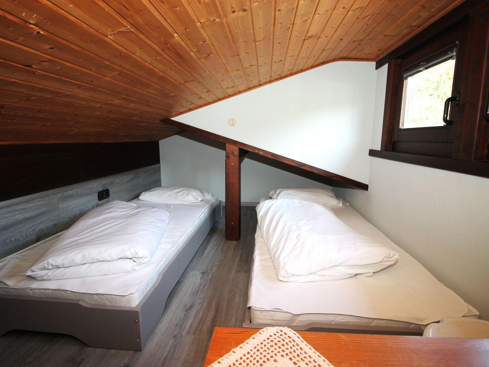 Sie wohnen in einem gemütlichen 3-Zimmer Ferienhaus für bis zu 6 Personen mit ca. 56 m². Zwei Schlafzimmer sind mit Doppelbetten und Schränken sowie Rolläden zur Verdunklung ausgestattet. Für Kinder ab 5 Jahren ist eine über eine Leiter erreichbare Dachkoje mit Verschattung zum gemütlichen Entspannen vorhanden.