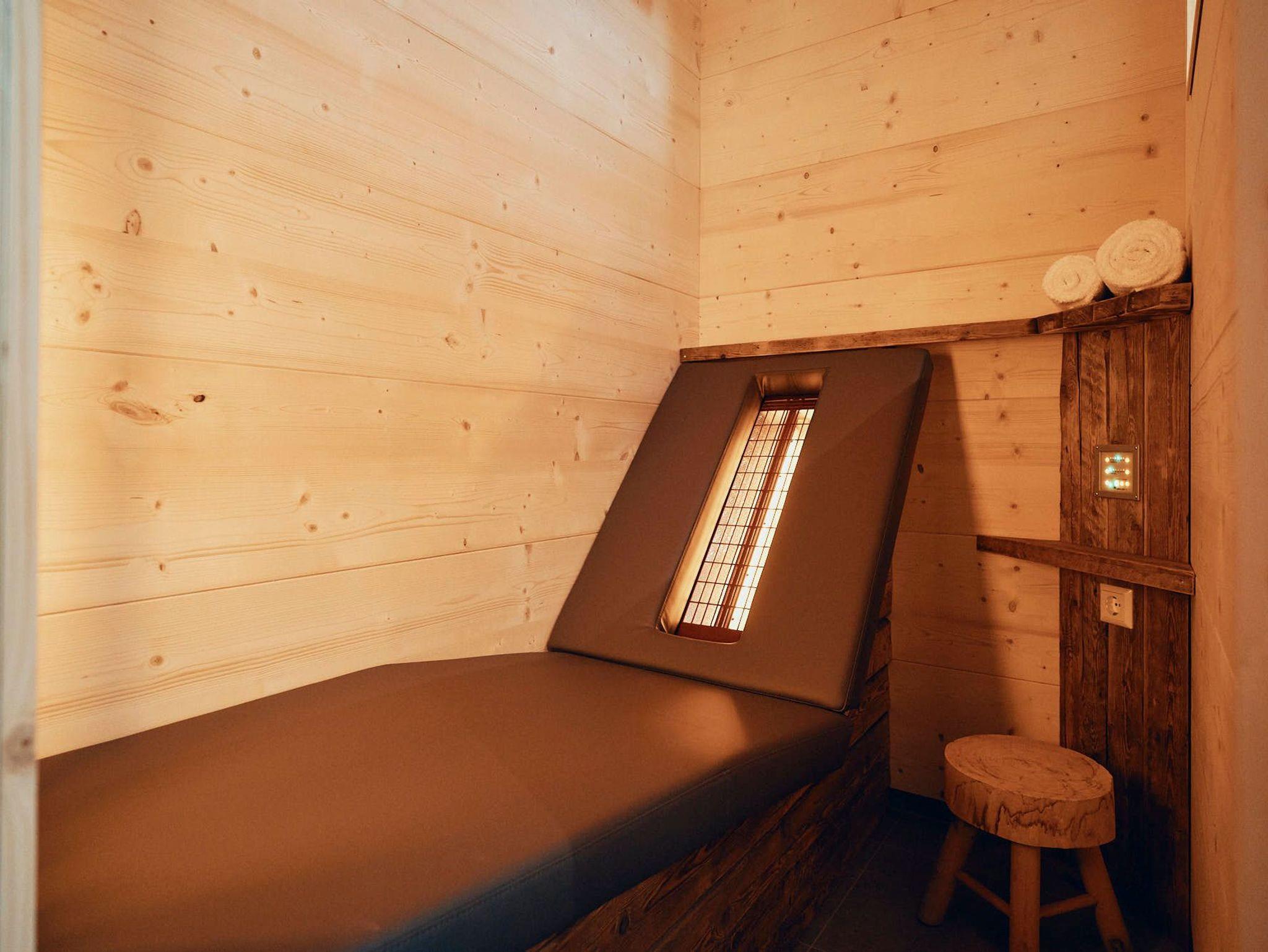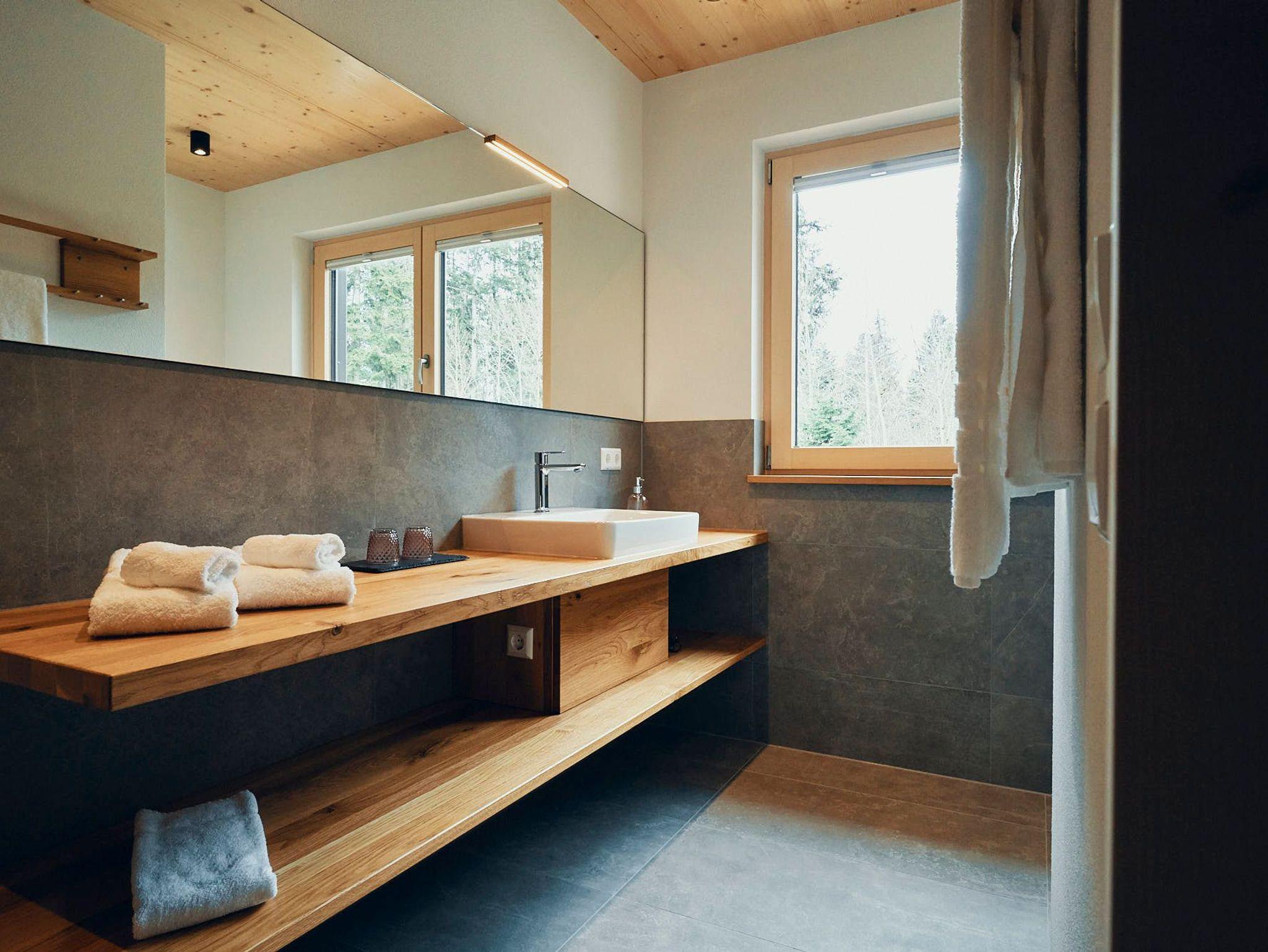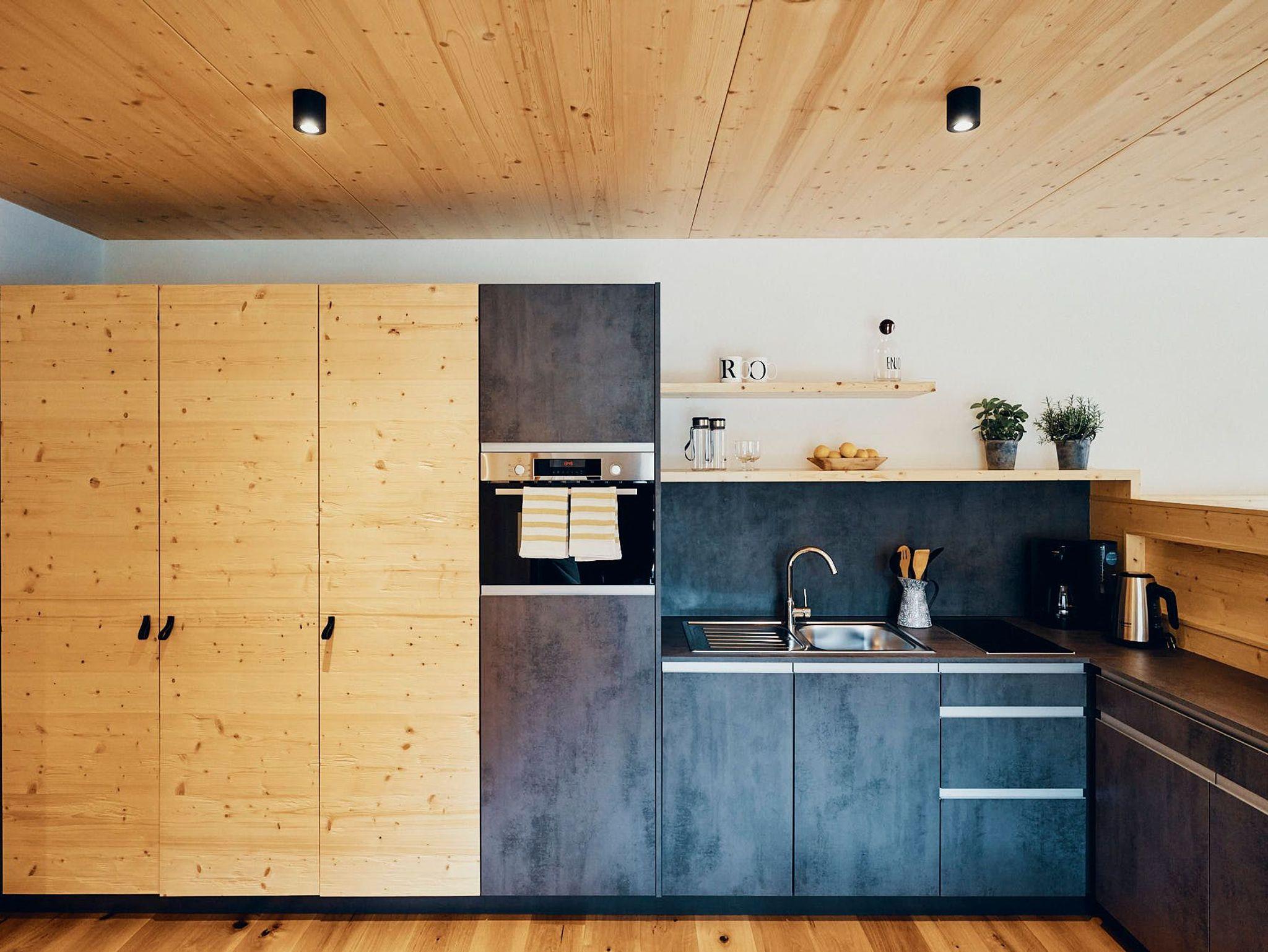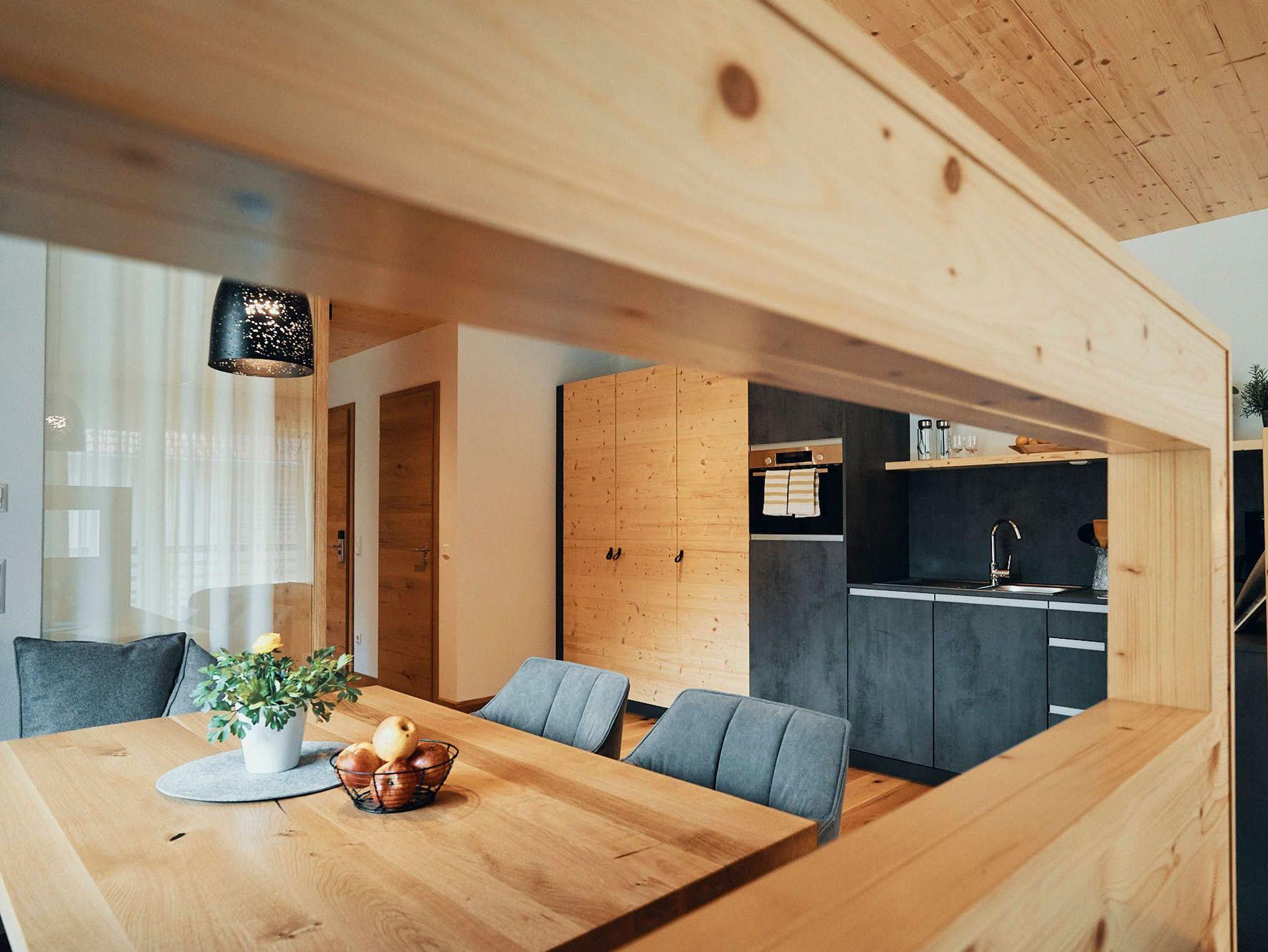 Acht einzigartige Apartments lichtdurchflutet und mit Platz für bis zu sechs Personen. Raumhohe Fenster lassen die Natur herein, während heimische Fichtenholzdecken eine Atmosphäre der Geborgenheit schaffen. Wohnen und Schlafen sind nur durch transparente Elemente getrennt, was den loftartigen Charakter der Räume unterstreicht.