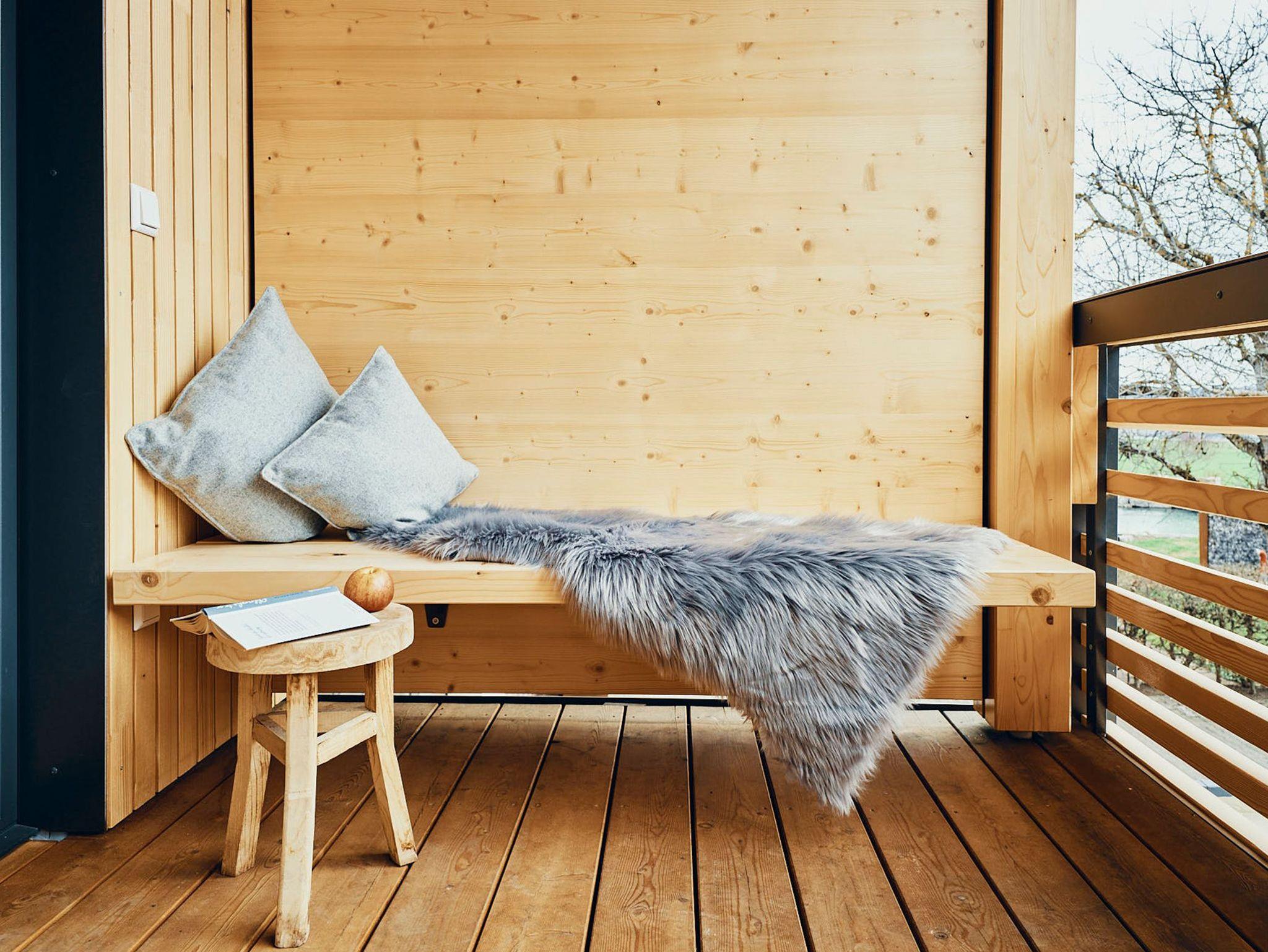 Innen und Außen verschmelzen nahtlos: Gemütliche Sitzgelegenheiten laden nicht nur drinnen, sondern auch auf dem überdachten Balkon, der Terrasse oder im Garten zum Verweilen ein.