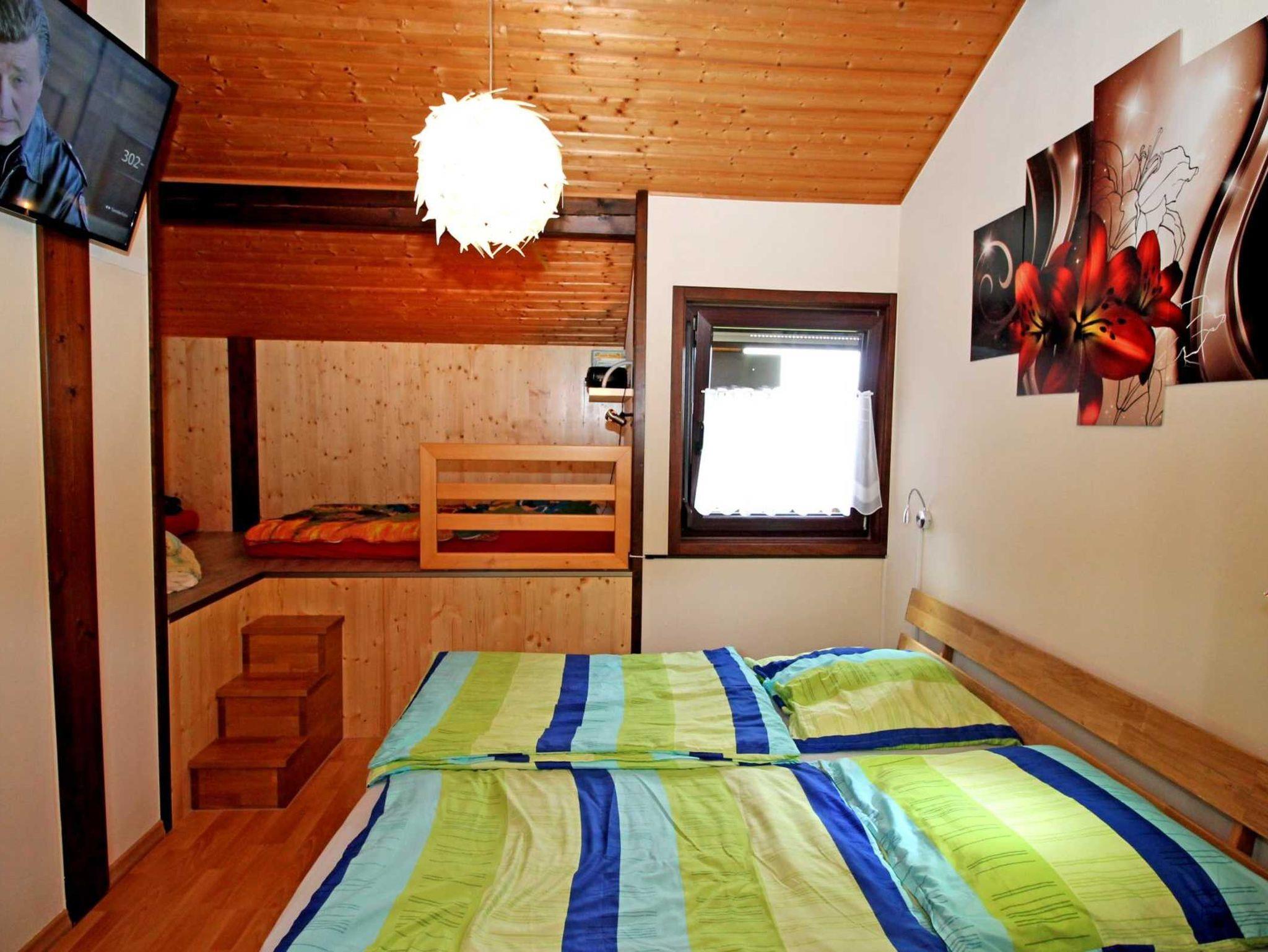 Das Kinderschlafzimmer ist mit einem Doppelbett und zwei zusätzlichen Schlafmöglichkeiten auf einer Empore (z.B. für Kinder ab 5 Jahren) einem 40 '' Samsung Smart TV und vier Leselampen ausgestattet.