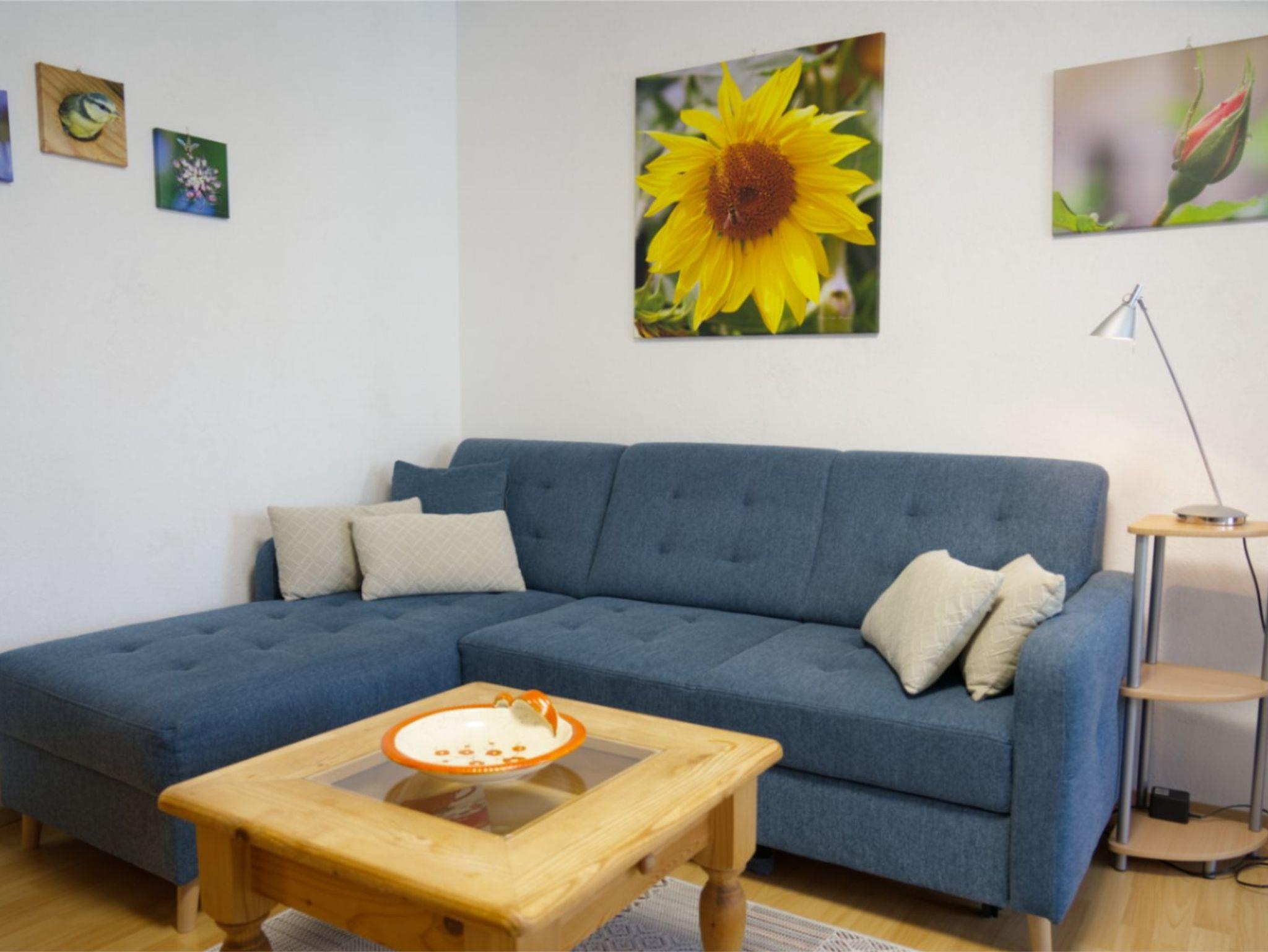 Die Nichtraucher Ferienwohnung Nr.2 ist ca. 56qm gross. Im Schlafzimmer befindet sich ein Doppelbett. Das Wohnzimmer hat eine bequeme Schlafcouch. Die gemütliche Essecke lädt zum Verweilen ein.