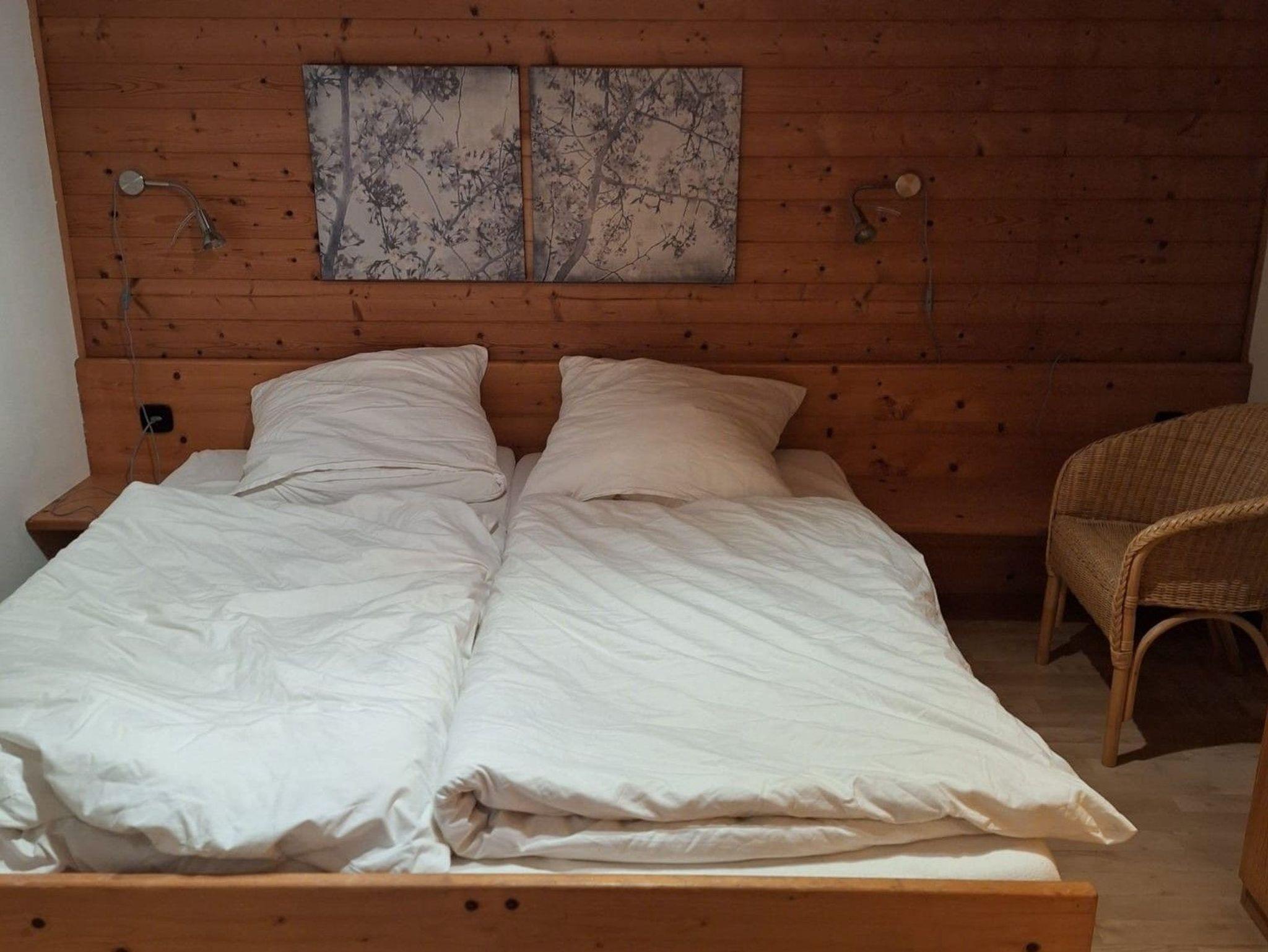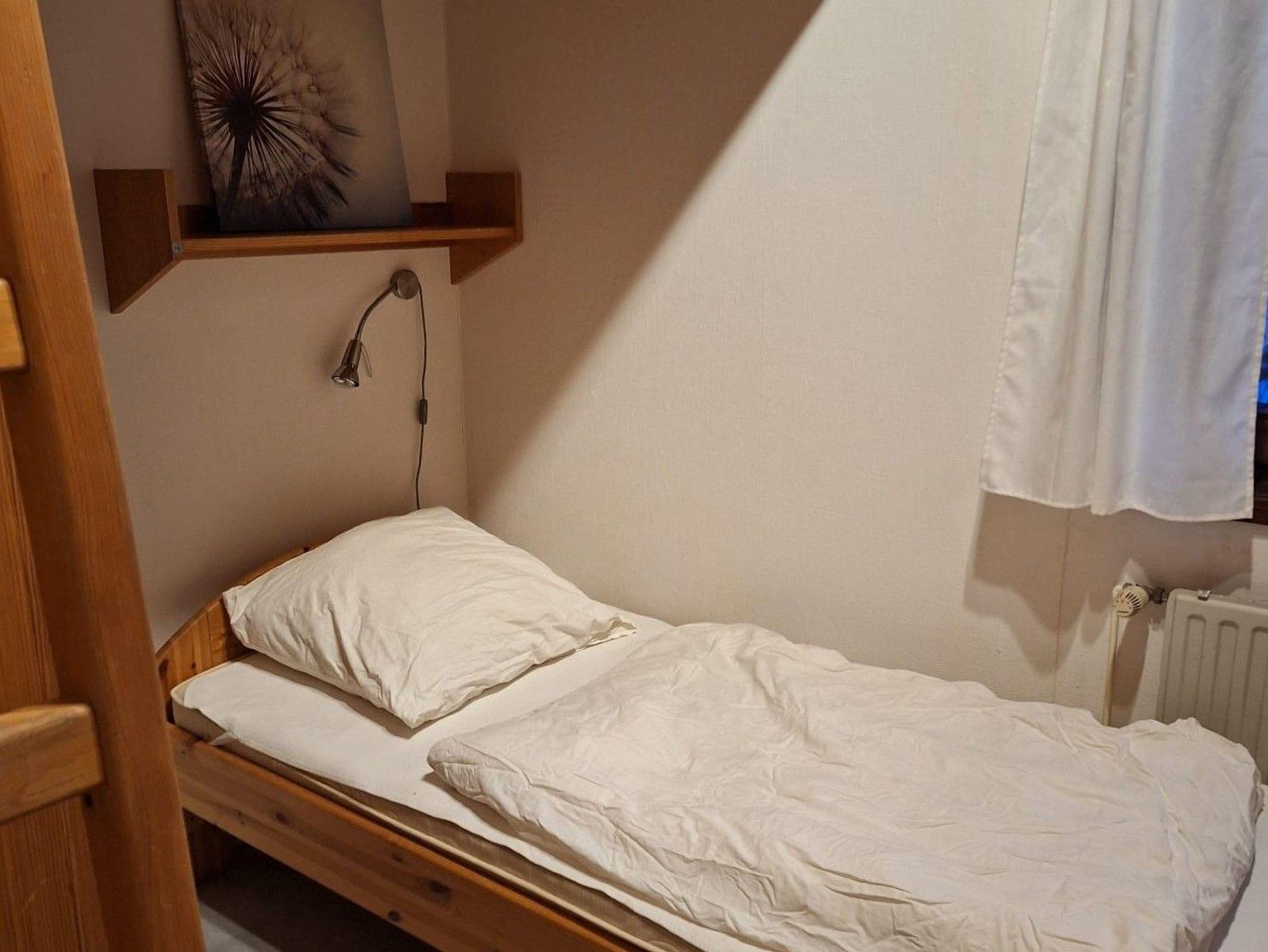 Das Ferienhaus bietet Ihnen ein einladendes Schlafzimmer mit einem komfortablen Doppelbett sowie ein weiteres Schlafzimmer mit einem Einzelbett und einem Hochbett, das über eine Leiter erreichbar ist ? perfekt für Kinder ab 5 Jahren.