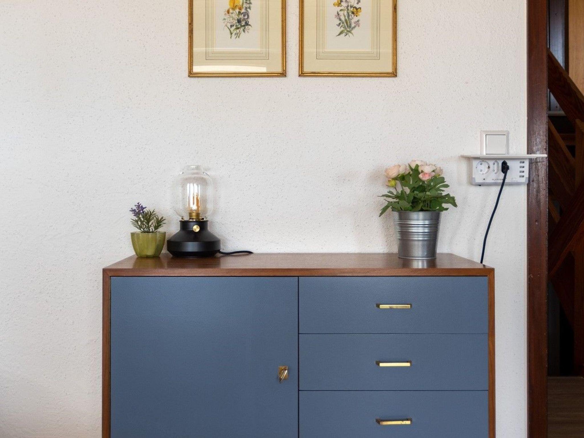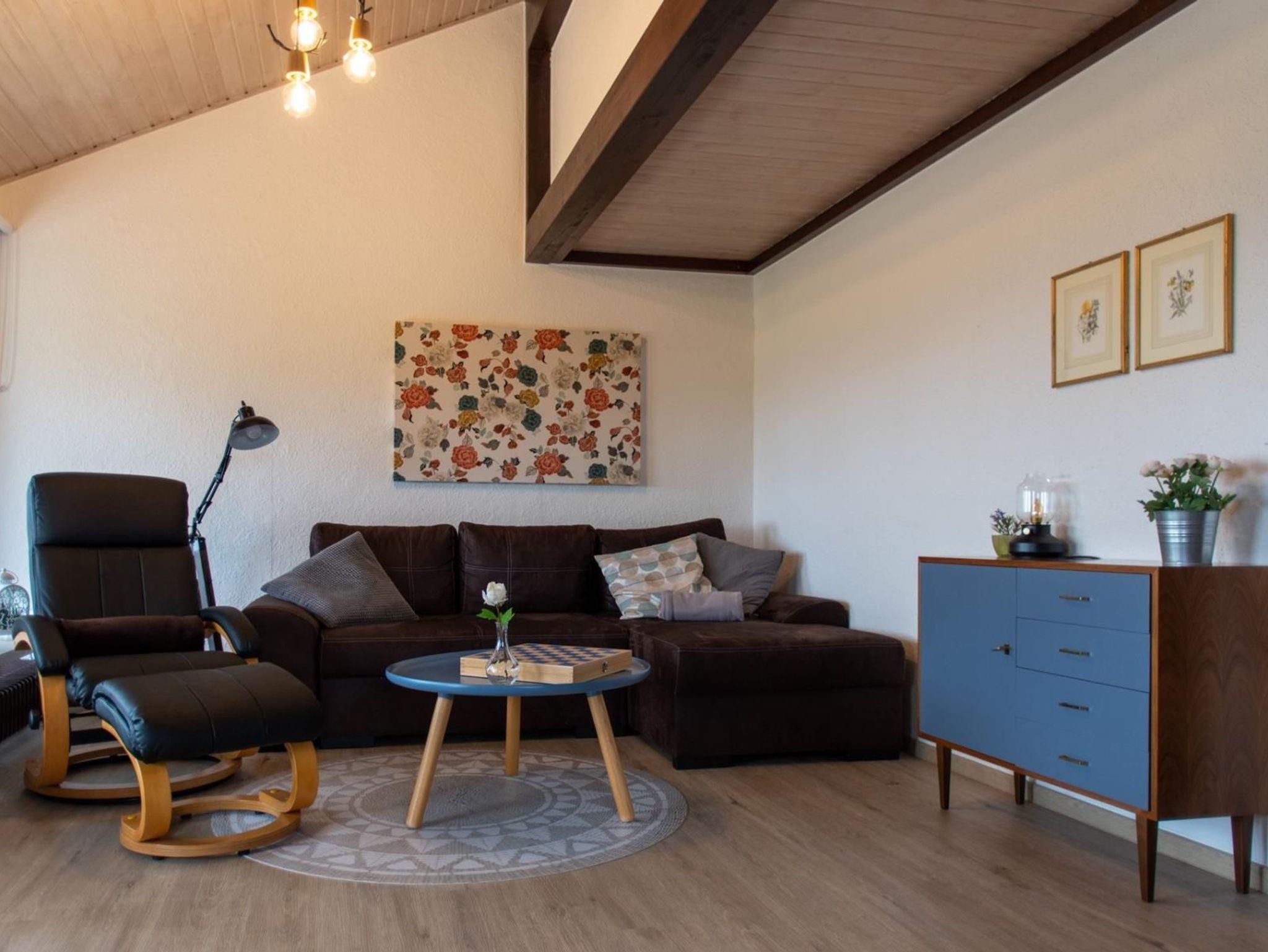 Komfortabel und modern ausgestattet für bis zu 4 Personen (zusätzliches Schlafsofa, Relax Sessel). Ein Schlafzimmer mit einem Doppelbett, ein Schlafzimmer mit zwei Einzelbetten (190 cm x 90 cm), Arbeitsplatz für Remote Office, Kellerabteil