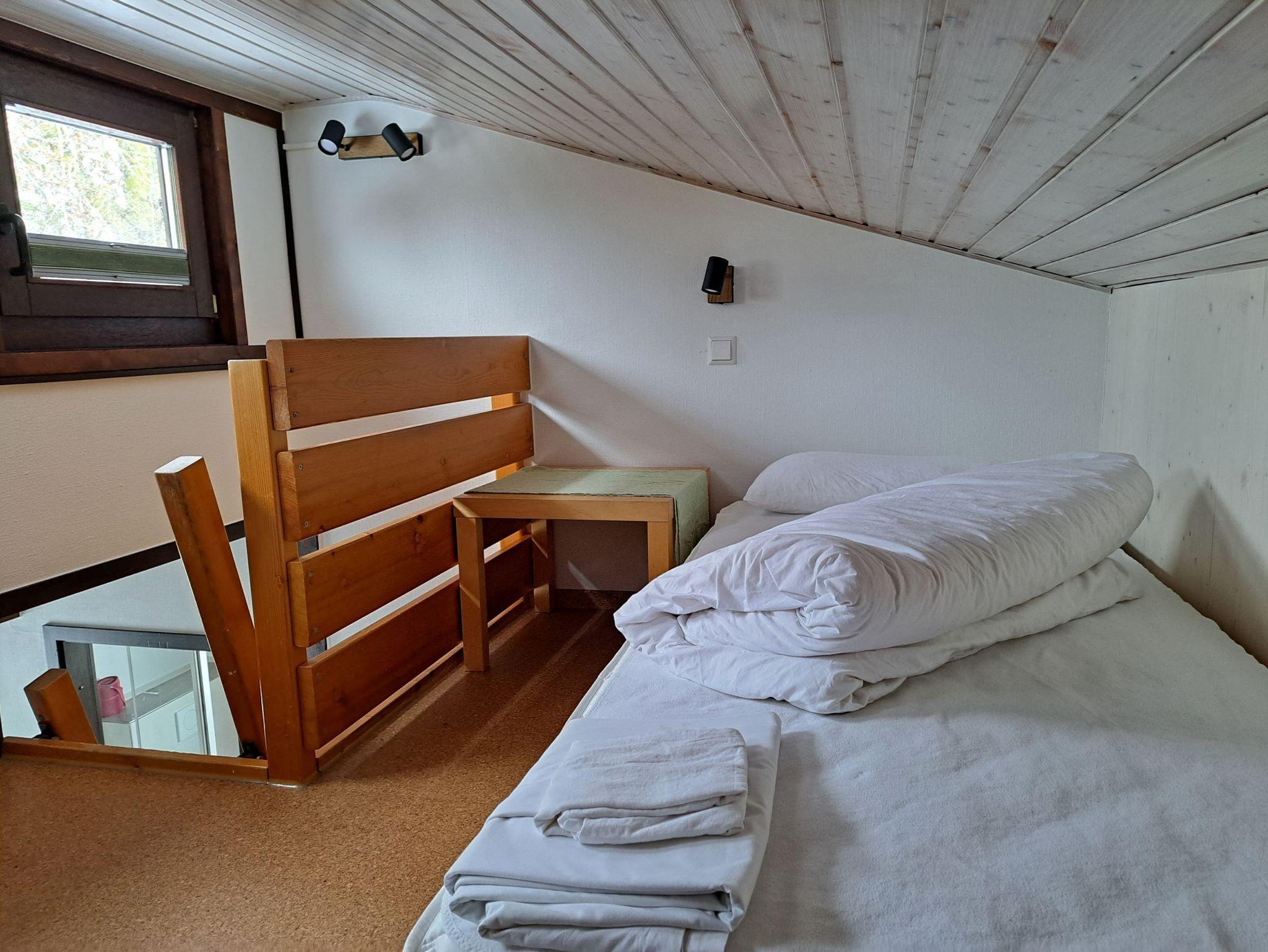 Sie wohnen in einem 3-Zimmer-Ferienhaus bis 4 Personen, ca. 45-50m², 2 Schlafzimmer mit Doppelbett, über Leiter erreichbare Schlafkoje für Kinder ab 5 Jahren, Wohnraum, separater Essplatz, voll ausgestatteter Küchenbereich, Dusche/WC, Abstellraum, Terrasse, Kabel-Falchbild-TV. Inklusive Kinderreisebett und Kinderhochstuhl.