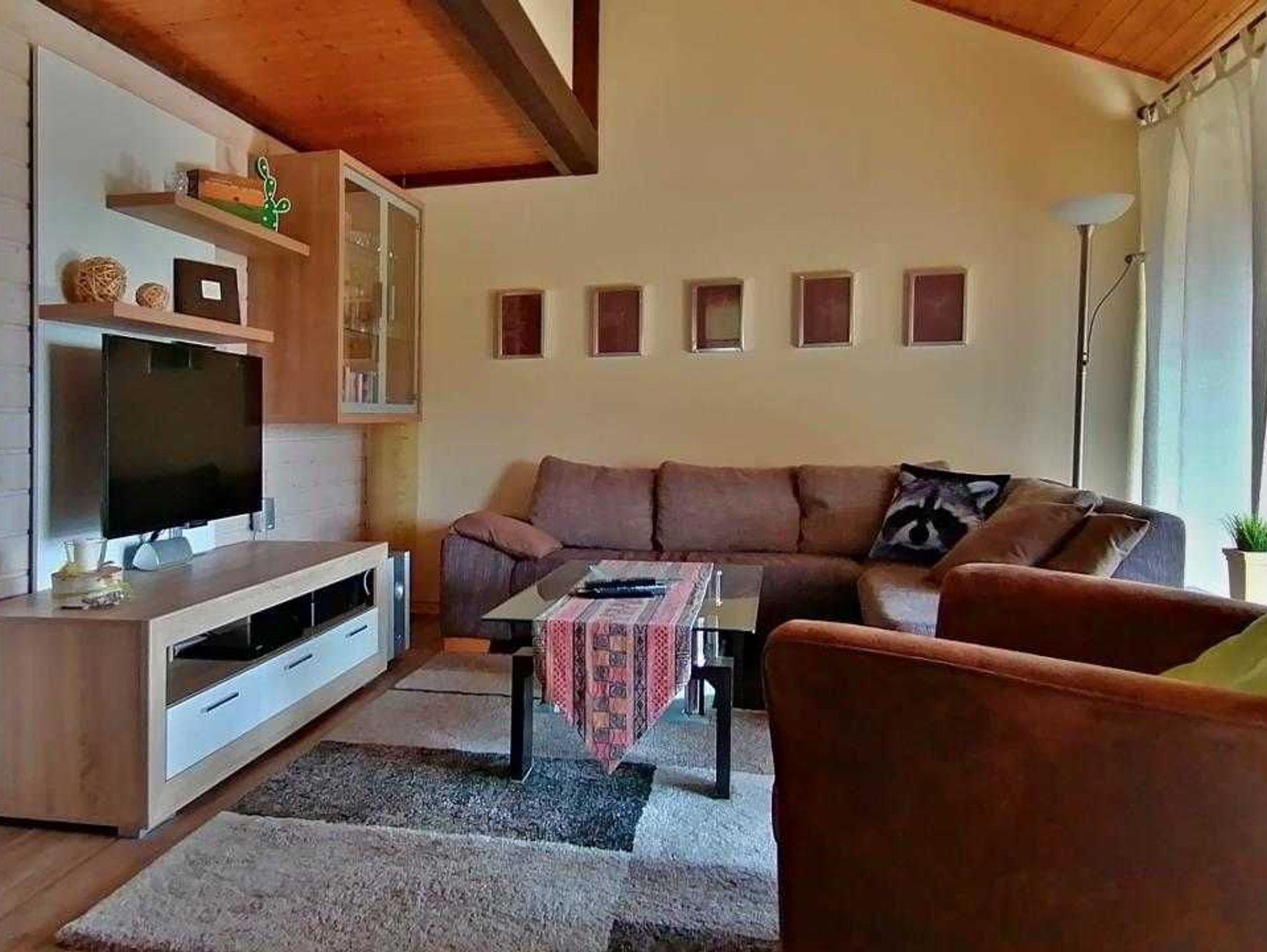 Sie wohnen in einem 3-Zimmer-Ferienhaus für bis zu 6 Personen auf mehreren Ebenen auf ca. 68 m² Wohnfläche. Ein Schlafzimmer mit Doppelbett + Emporemit einer weiteren Schlafgelegenheit, ein zweites Schlafzimmer mit Doppelbett und zwei getrennten Schlafgelegenheiten auf einer Empore mit TV+DVD Gerät, Wohnraum, separater Essplatz, voll ausgestatteter Küchenbereich inklusive Spülmaschaschine, Senseo und Mikrowelle, Bad mit Dusche und WC, separater Abstellraum, Terrasse, Kabel-TV (LCD), DVD+Stereo-System, Wii+ WLAN Hausanschluss. Zusätzlich Kinderreisebett und Hochstuhl.