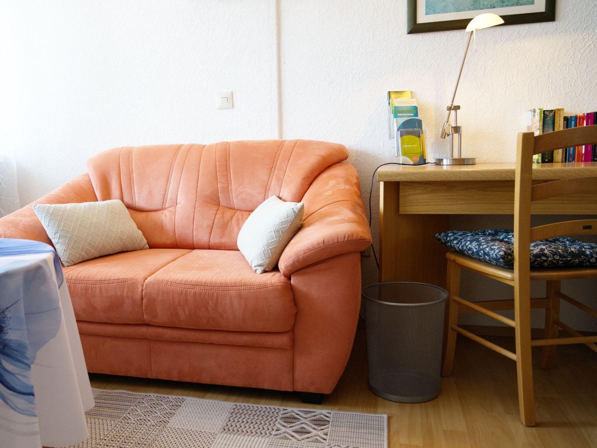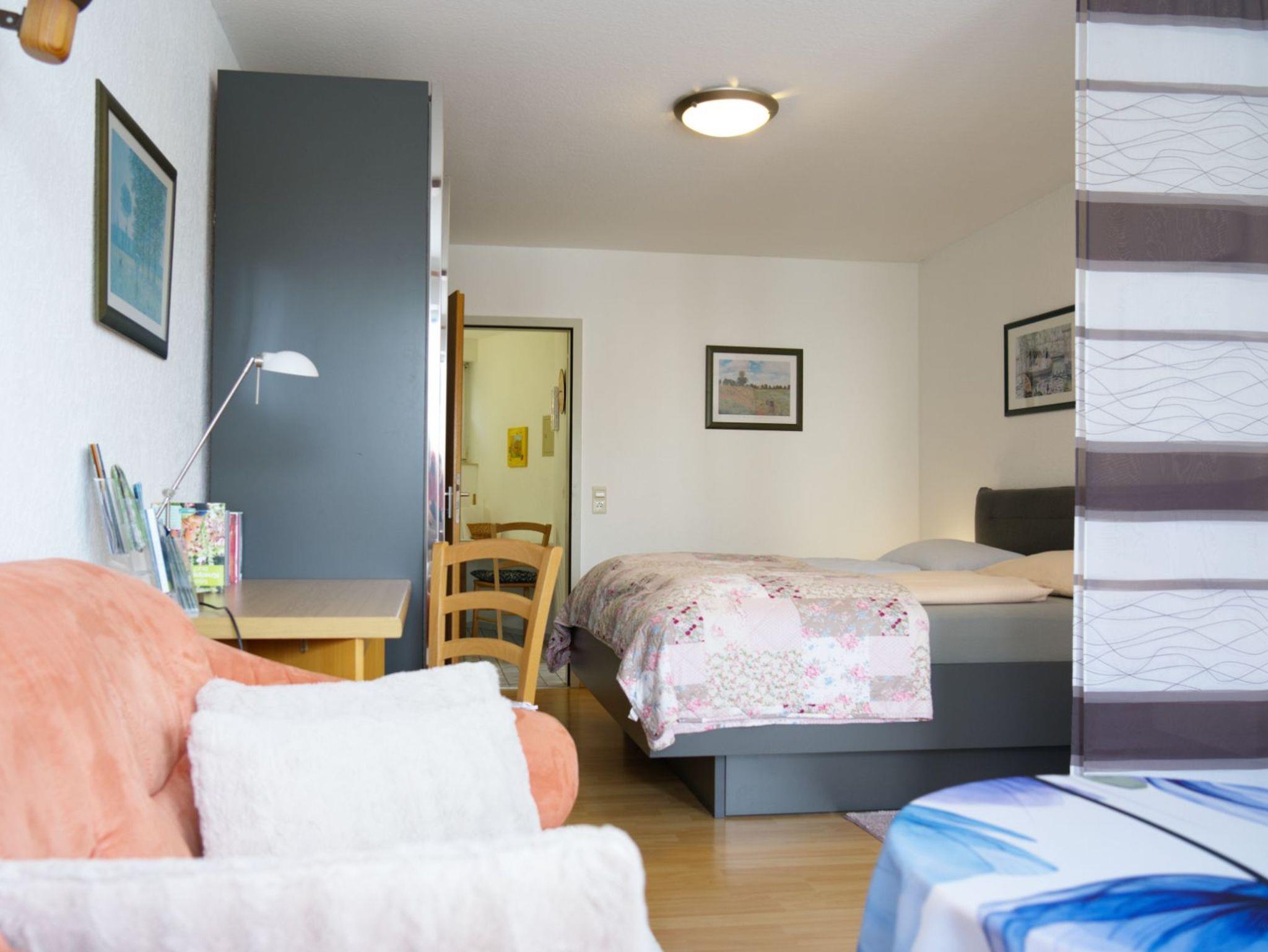 zum gemütlichen Erholen ein. Ein Doppelbett, Sofa, Kleiderschrank und SAT