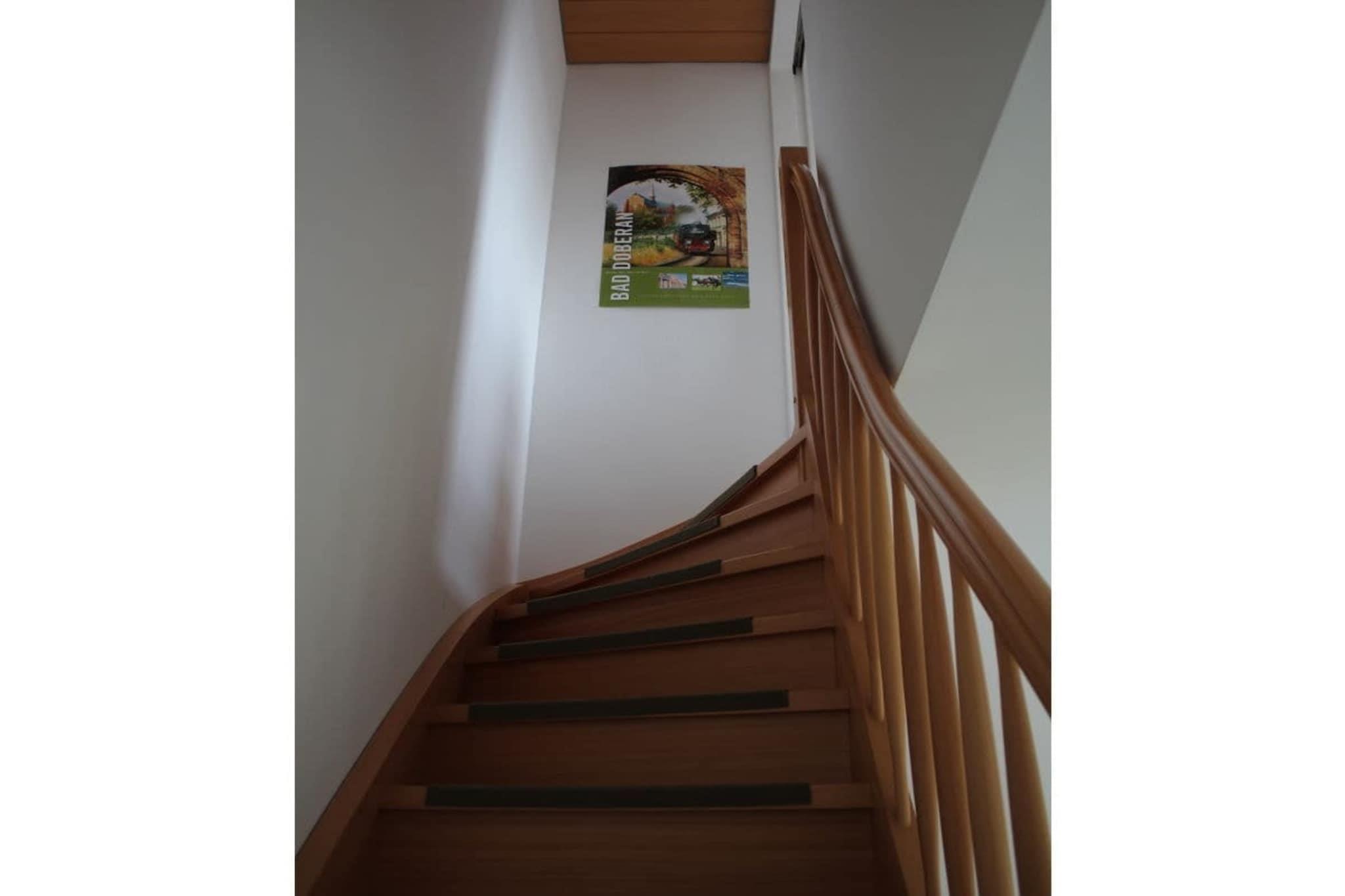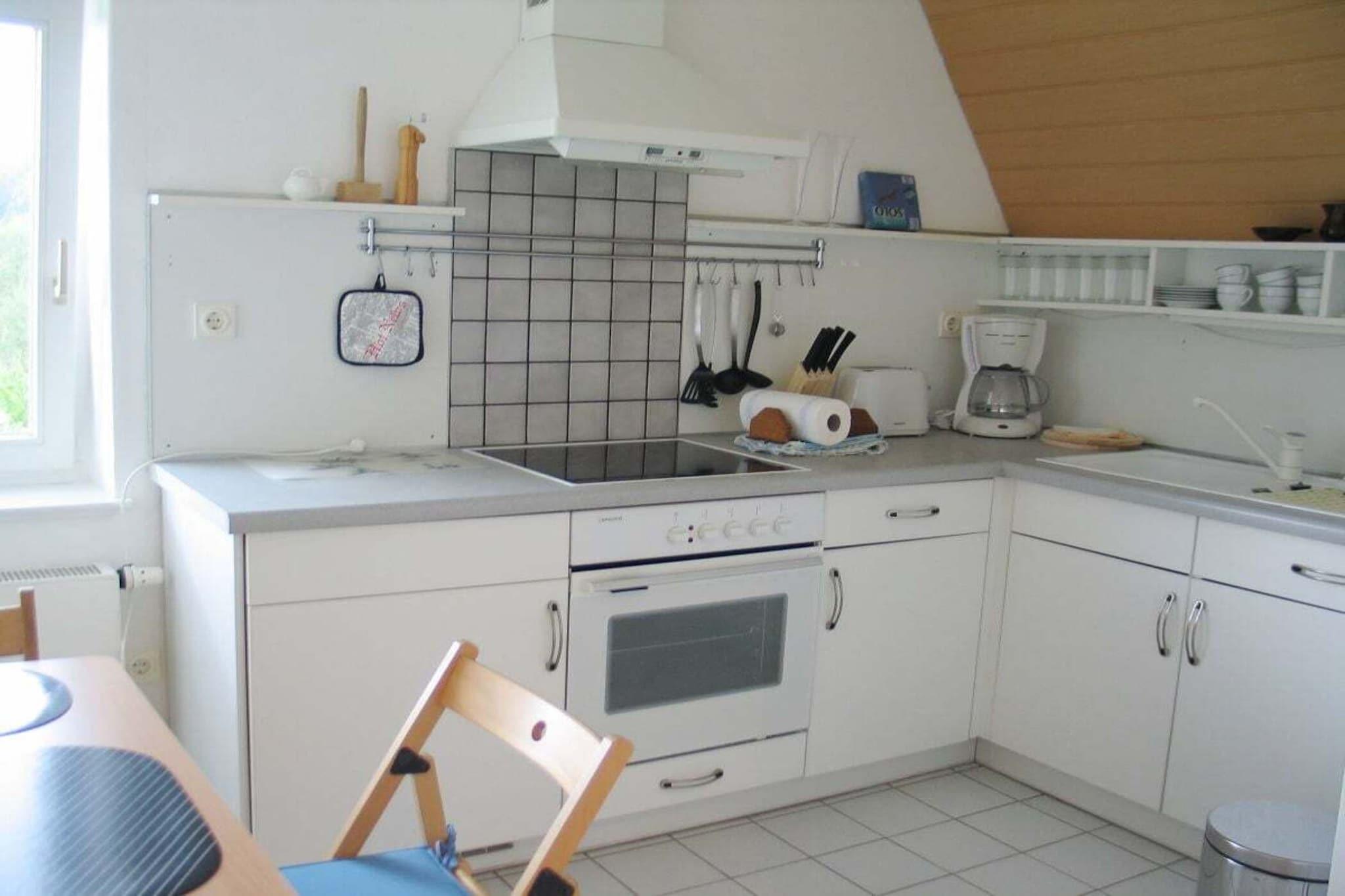 Ferienwohnung liegt in einem 2000 qm großem Grundstück in sehr ruhiger Lage mit einem blühenden Bauerngarten 100 m vom Waldrand entfernt. Die Straße ist für den Durchgangsverkehr gesperrt. Der Bahhof ist 5 Minuten und das Stadtzentrum 10 Minuten zu Fuß entfernt. Bei Anreise mit dem Zug Bahnhofstransfer bei Anfrage. Freisitz für Raucher, Leseecke am Teich. Es handelt sich um eine Maissonettewohnung über 2 Ebenen. Großes geräumiges Bad mit Wanne, Dusche und WC, im 1.OG befindet sich der Wohn-Schlafbereich und im 2.OG finden Sie eine komplett eingerichtete Küche.