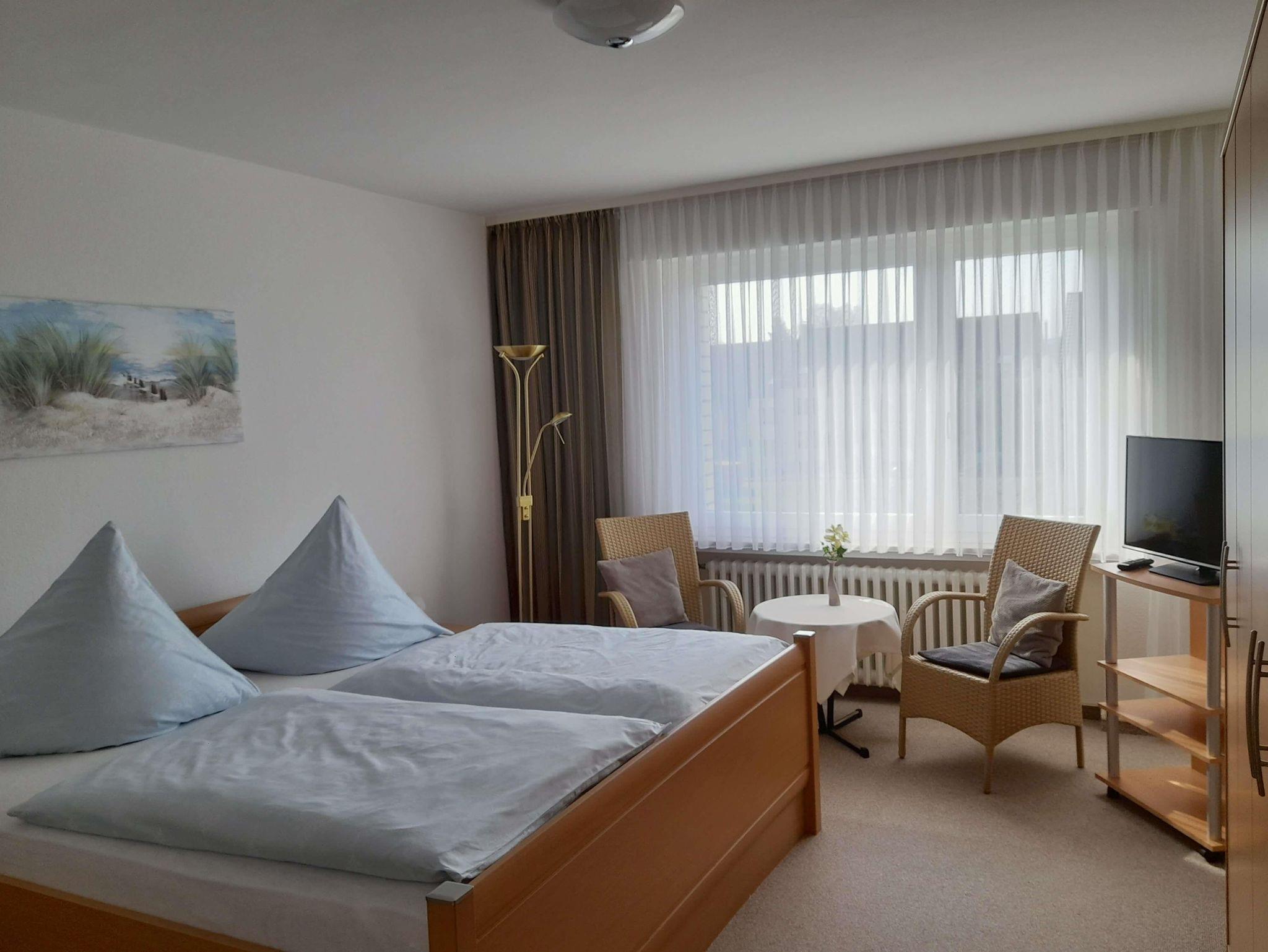 Die Ferienwohnung verfügt außerdem über Dusche/WC, Gäste-WC, Doppelzimmer mit Zugang zum Balkon, Einzelzimmer, SAT-TV im Wohnzimmer und Schlafzimmer und kostenloses W-LAN.
