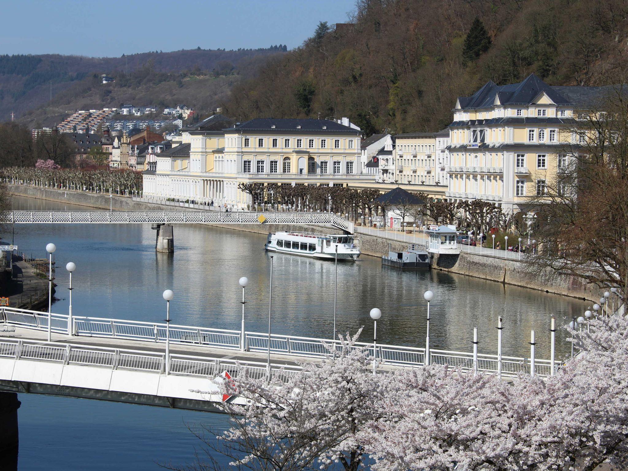 Das Logierhaus Stadt Lyon ist etwa 1830 gebaut worden und war eines von vielen Logierhäusern in Bad Ems für den europäischen Wohlstandstourismus zur damaligen Kaiserzeit. Ärzte aus Paris, Adlige aus St. Petersburg und jeder, der zum europäischen Establishment dazugehören wollte, verbrachten hier einige Wochen des Jahres, um gesehen zu werden und etwas für die Gesundheit zu tun. Zwischen 2014 und 2018 wurde das Gebäude authentisch restauriert und vermittelt jetzt unseren Gästen aus aller Welt den Glanz der Kaiserzeit verbunden mit modernem Komfort. im Zentrum von Bad Ems. Im Apartment 'Le Parterre' haben wir eine behindertengerechte Wohnung mit Schlafzimmer, Bad und Wohnzimmer eingerichtet und eigenem Zugang zum Felsenhof. Das Apartment 'Le Belle Etage' im 1. Obergeschoß und 'Le Deuxième Etage' im 2. Obergeschoß haben jeweils einen Balkon zum Fluß mit Aussicht auf das prächtige Kurzentrum und bieten mit 2 separaten Schlafzimmer, einem Wohnzimmer mit Küchenzeile und einem Luxusbad ausreichend Platz für Kleingruppen und Reisende mit Personal. Im 3. Obergeschoß befindet sich das Apartment 'Au Ciel' mit 1 Schlafzimmer, Wohnzimmer mit Loggia zum Fluß, Luxusbadezimmer und eigenem Zugang zur Felsendachterrasse mit Jacuzzi, Schaukelliege und Grilltisch - ein Aufzug bringt Sie in alle Obergeschosse. Für alle Apartments besteht die Möglichkeit, eine mitreisende Begleitperson in einem 1-Zi Apartment 'Le Service' im 3. Obergeschoß separat unterzubringen - wie zu Kaiser's Zeiten.