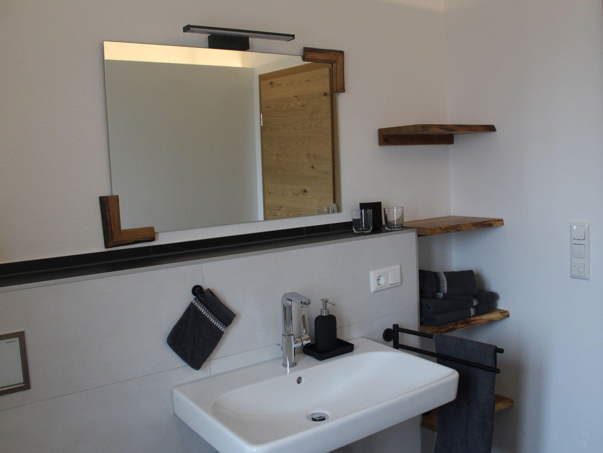 Die Neubau Ferienwohnung ist 38 qm groß und liegt im 1. Stock eines Einfamilienhaus. Sie verfügt über einen eigenen Eingang mit Terrasse sowie ein separates Schlafzimmer, Badezimmer und Küchen-Wohn-Essbereich. Die Ausstattung umfasst im Badezimmer eine Dusche, WC, Waschtisch sowie ein Tageslichtfenster. Im Schlafzimmer ist ein 1,8 Meter breites Doppelbett, Nachttische, ein Schrank sowie ein Fernseher vorhanden. Im Küchen-Wohn-Essbereich ist eine Küchenzeile mit Kochfeld, Geschirrspüler, Kühlschrank mit Gefrierfach, Kaffeemaschine sowie ein Essbereich mit Fernseher zu finden. Kostenloses WLAN, ein Außenstellplatz und ein absperrbarer Fahrradkeller mit Stromanschluss und Ablagefläche für Helme etc. gehören zum Angebot.