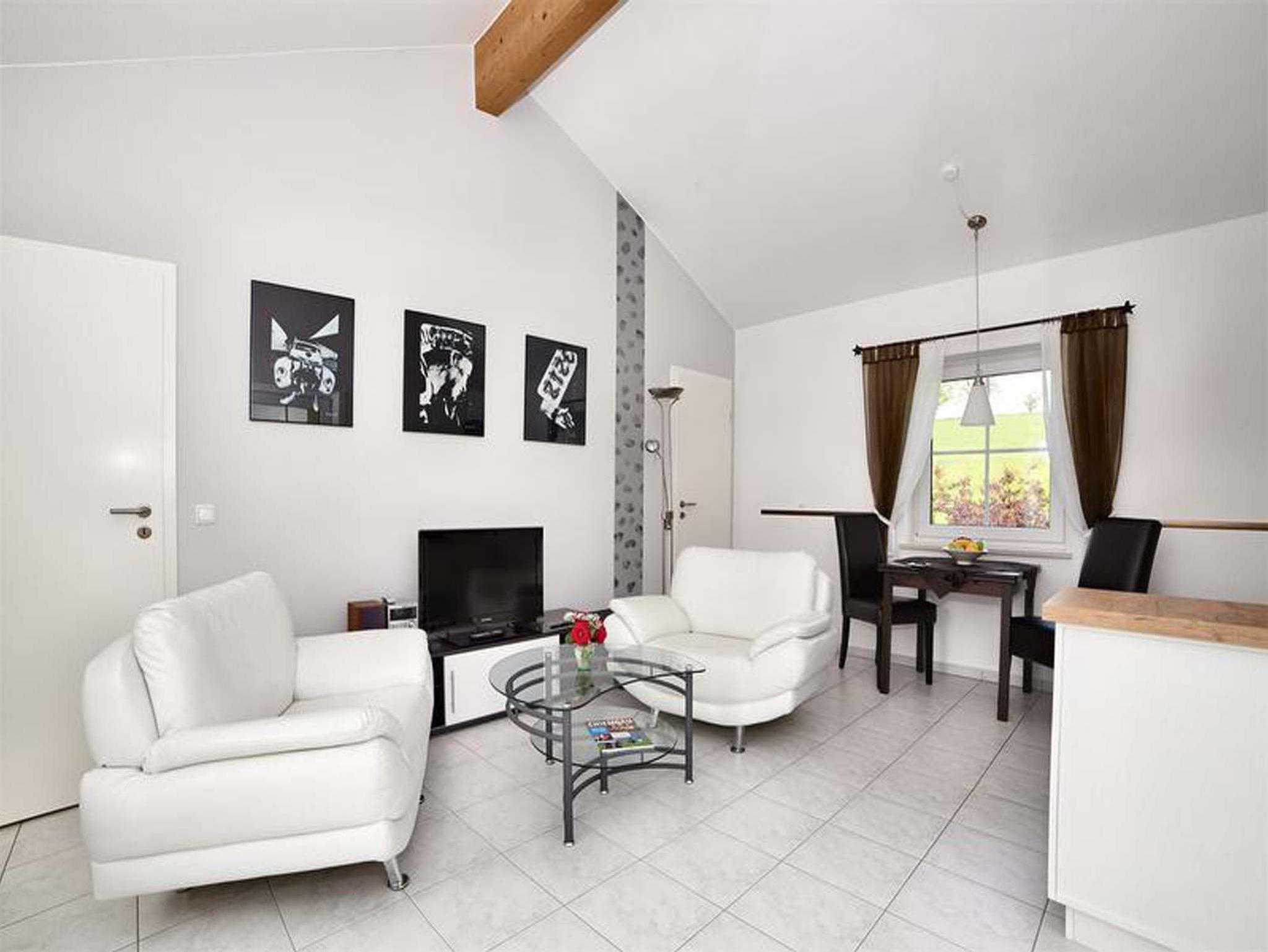 Pfiffig geschnittene 2-Zimmer Wohnung mit großzügiger, sonniger Terrasse und herrlichem Blick im Nebengebäude. Wohnraum mit integrierter Einbauküche und Essecke, Senseo-Kaffeepads-Maschine. Kuscheliges Schlafzimmer. Moderne Unterhaltungs-, Kommunikations- und Küchentechnik. Geeignet für Allergiker. Verstellbare Lattenroste, Bandscheiben-Matratzen. Umfangreiche Serviceleistungen. Frühstück auf Anfrage möglich.