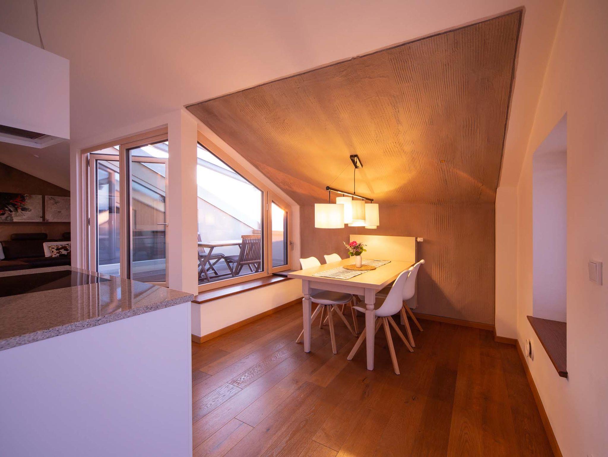 In dieser hellen, sehr modern gestalteten Ferienwohnung haben Sie einen Ausblick von oben über den Pelhamer-See in die Chiemgauer Alpenkette. Die sehr großzügige Wohnung verfügt über einen offenen Wohnraum, zwei getrennte Schlafzimmer sowie zwei Bäder und zwei Balkone. Ruhige, klare Formen bestimmen die Räumlichkeiten dieser Wohnung.
