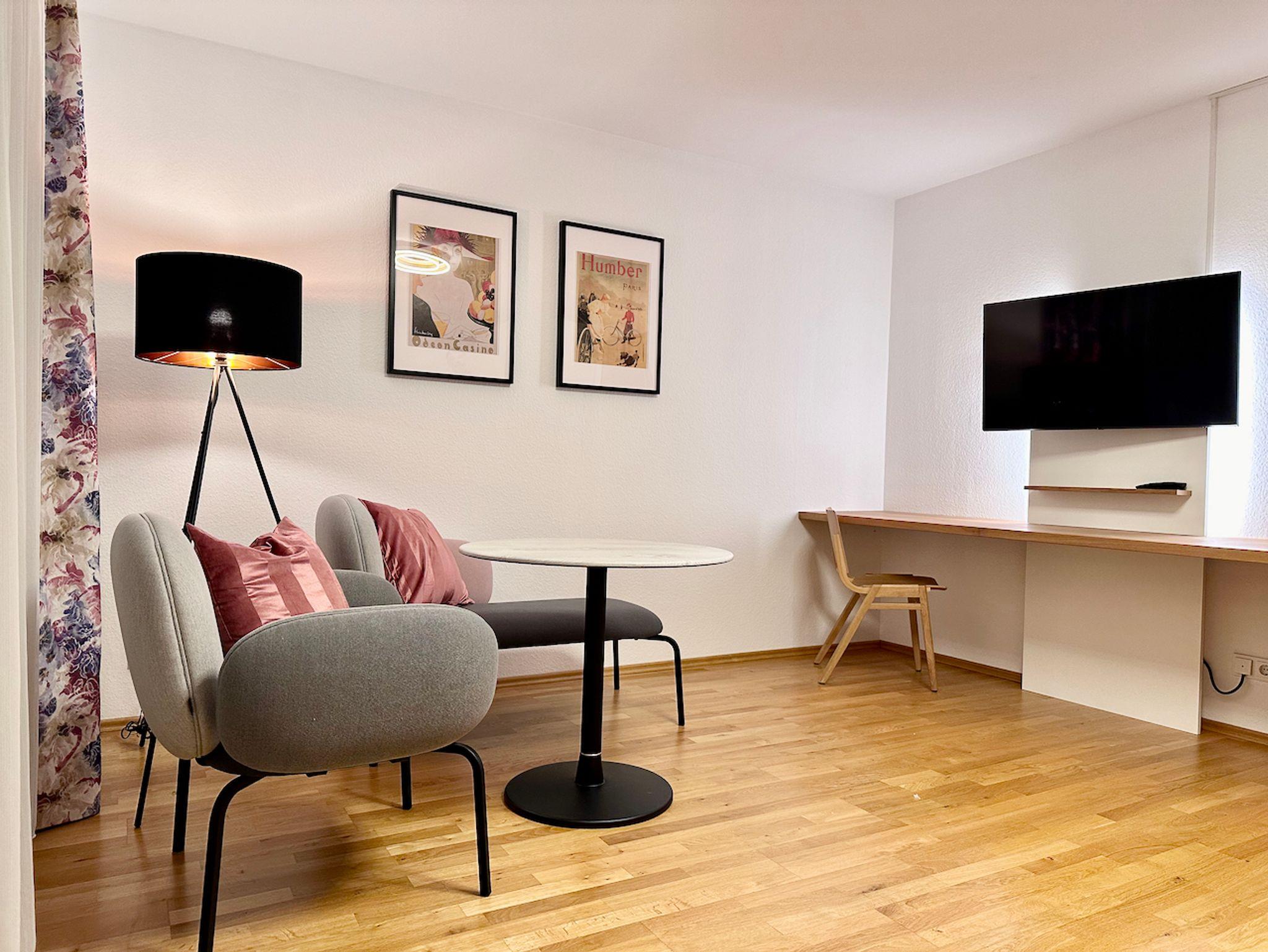 Sie wohnen in einem gemütlichen Apartment mit großem Wohn-/Schlafraum im ersten Stock mit Balkon. Das Apartment ist mit einem Doppelbett ausgestattet. Zudem verfügt es über eine Miniküche ohne Backofen mit Kochfeld im Eingangsbereich, mit der Sie eine Brotzeit oder Pause sehr gut zubereiten können. Im Wohn-/Schlafraum ist eine Sitzgruppe vorhanden. Der Balkon ist geräumig und mit einer Sitzgruppe und einem Sonnenschirm ausgestattet. Ein PKW-Stellplatz ist vorhanden. WLAN ist kostenfrei. Die Chiemgau Thermen sind ca. 200 m entfernt und der Bahnhof in 5 Minuten fußläufig erreichbar.