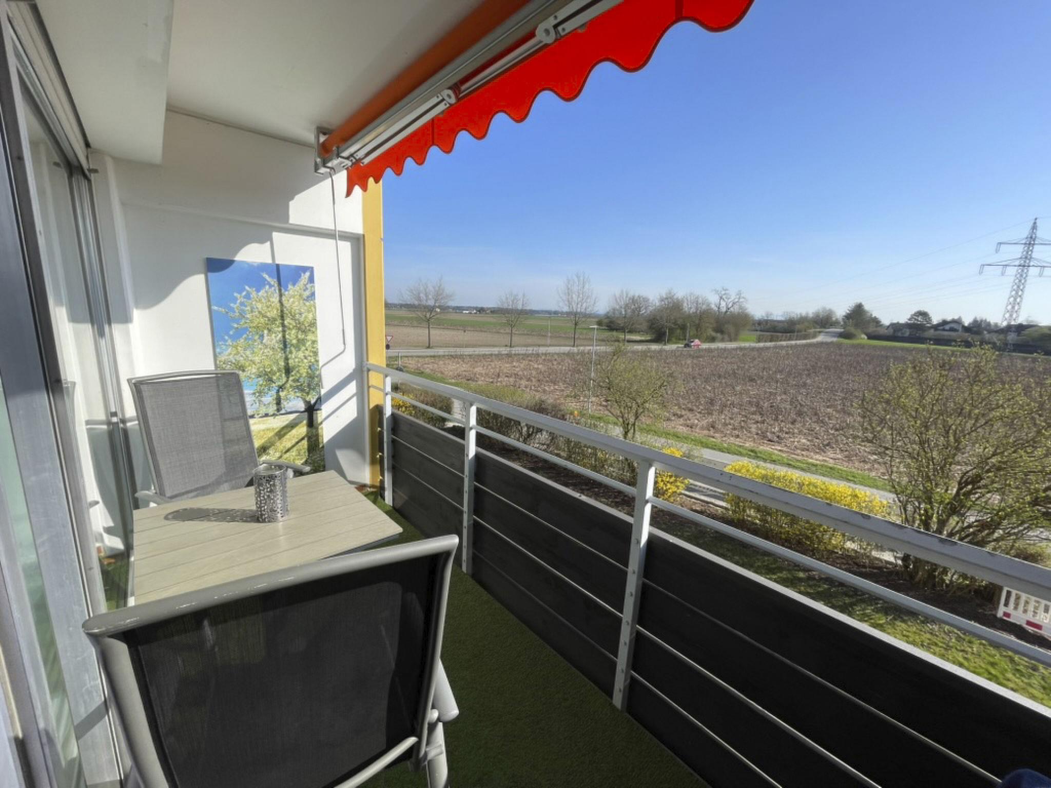 The furnished balcony in a quiet location invites you to relax. The view is into the greenery. There are plenty of parking spaces next to the house. A car park directly in front of the entrance door can be used for unloading.