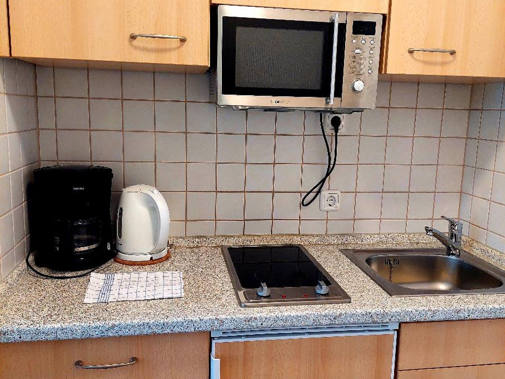 Das Appartement ist ausgestattet mit Wohnzimmer, Schlafzimmer (beide mit TV), zwei Duschen und zwei WC's und einer kleinen gemütlichen Küche.