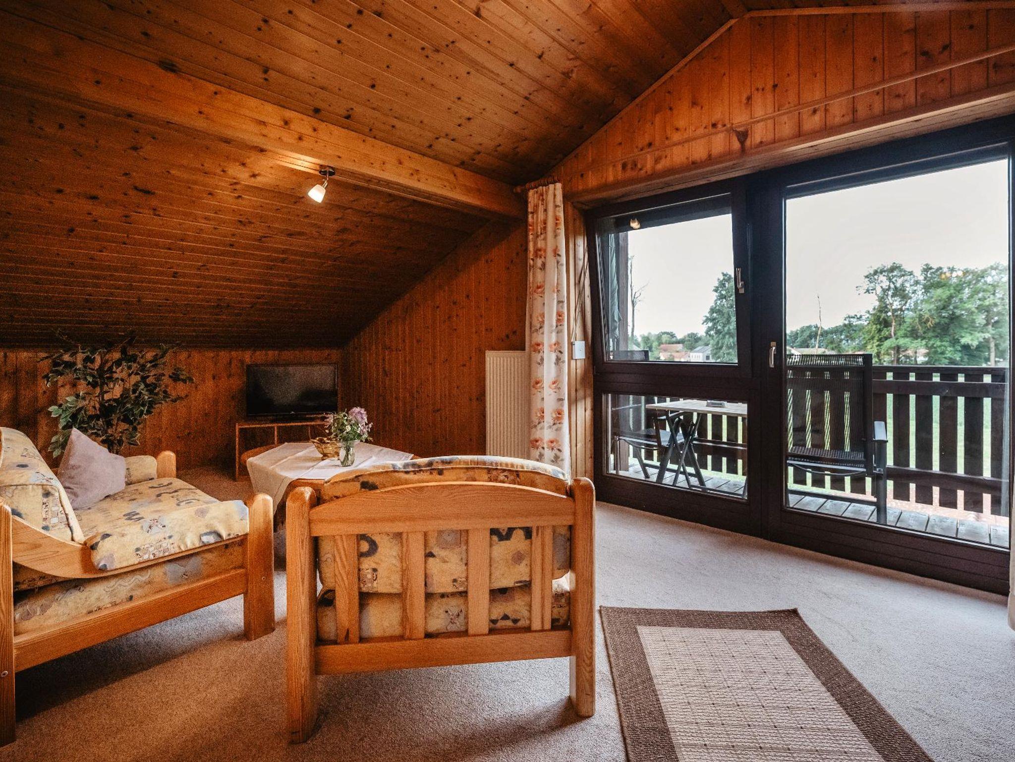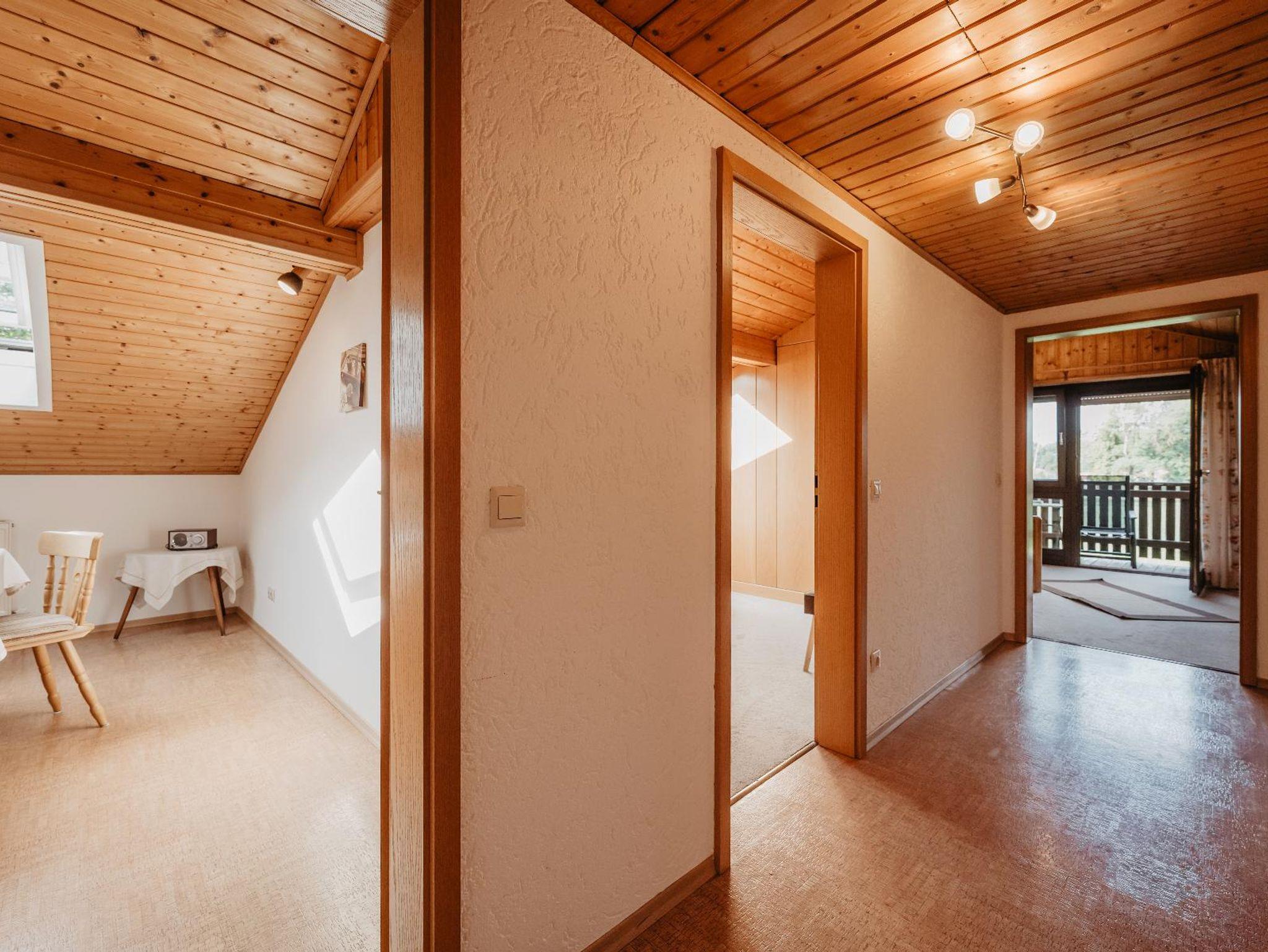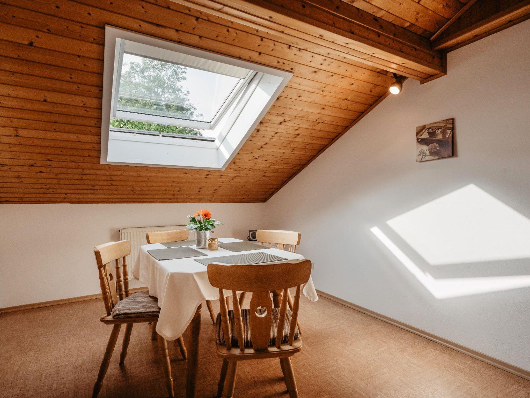 Die wohnliche 2-Zimmer-Mansardenwohnung im 2.OG verfügt über einen Balkon Richtung Westen mit Sitzgelegenheit. Die Einrichtung umfasst neben Bad mit Badewanne und WC, eine Wohnküche mit Küchenzeile, Tisch und Stühle, Kühlschrank inkl. Gefrierfach, Koch- und Speisegeschirr, sowie eine Kaffeemaschine, einen Wasserkocher und einen Toaster. Der Schlafraum ist mit Teppichboden, einem Doppelbett und Einbauschrank ausgestattet. Im Wohnzimmer befindet sich eine Couch, SAT Farb-TV, Radio, ebenfalls Teppichboden und ein feststehendes 3. Bett, das besonders wegen der Möglichkeit getrennt zu schlafen geschätzt wird. Bettwäsche, Hand- und Geschirrtücher sind vorhanden. Es ist ein Garagenstellplatz vorhanden.