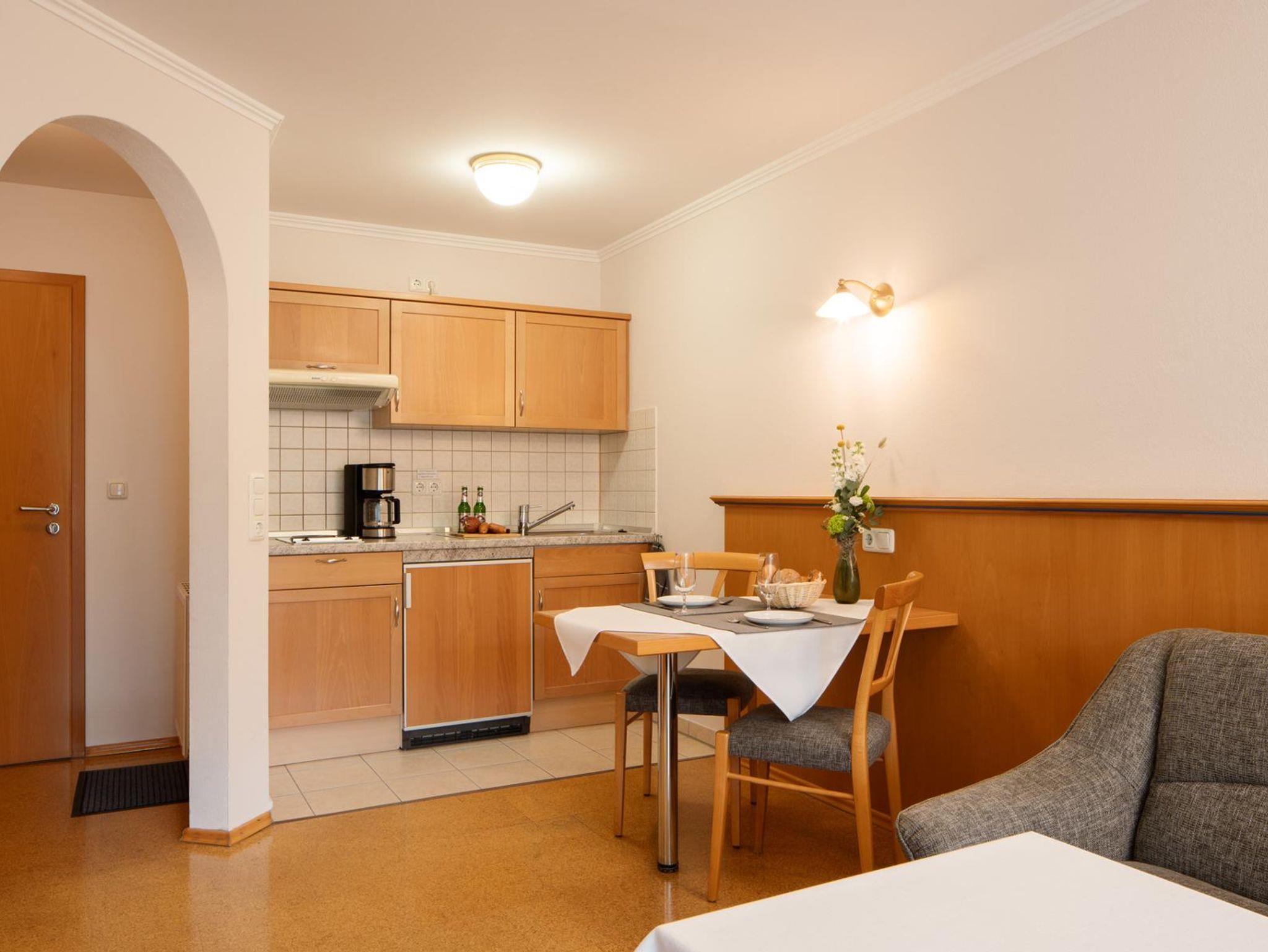 Küche eingerichtet. WC und Dusche sind in allen Appartements getrennt. In