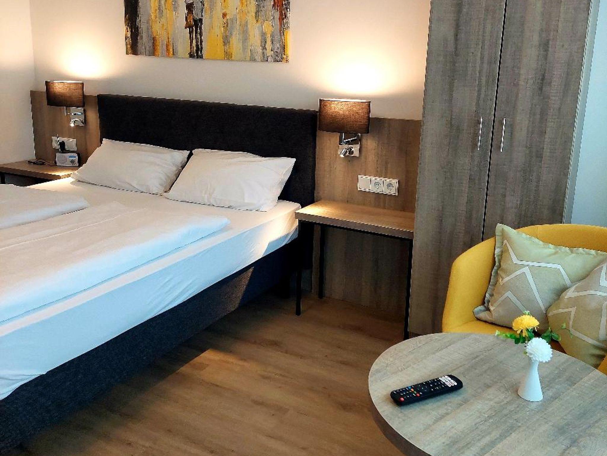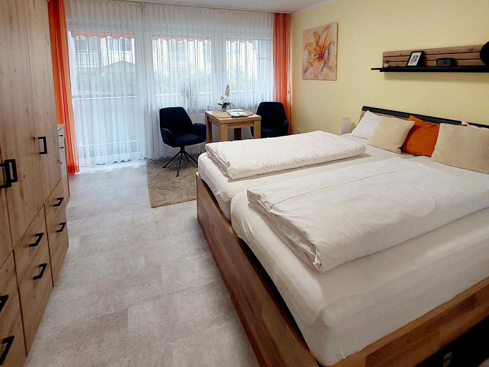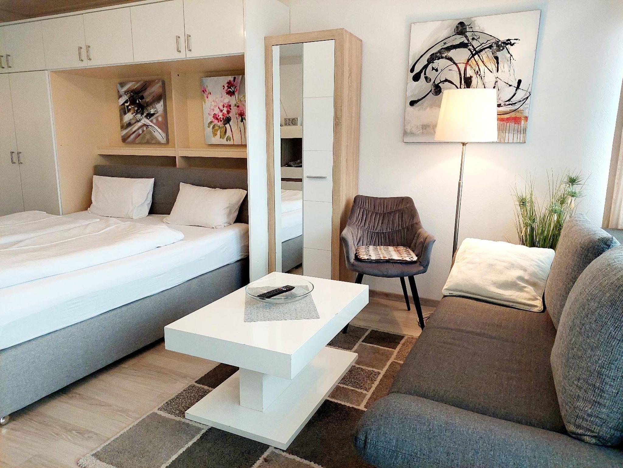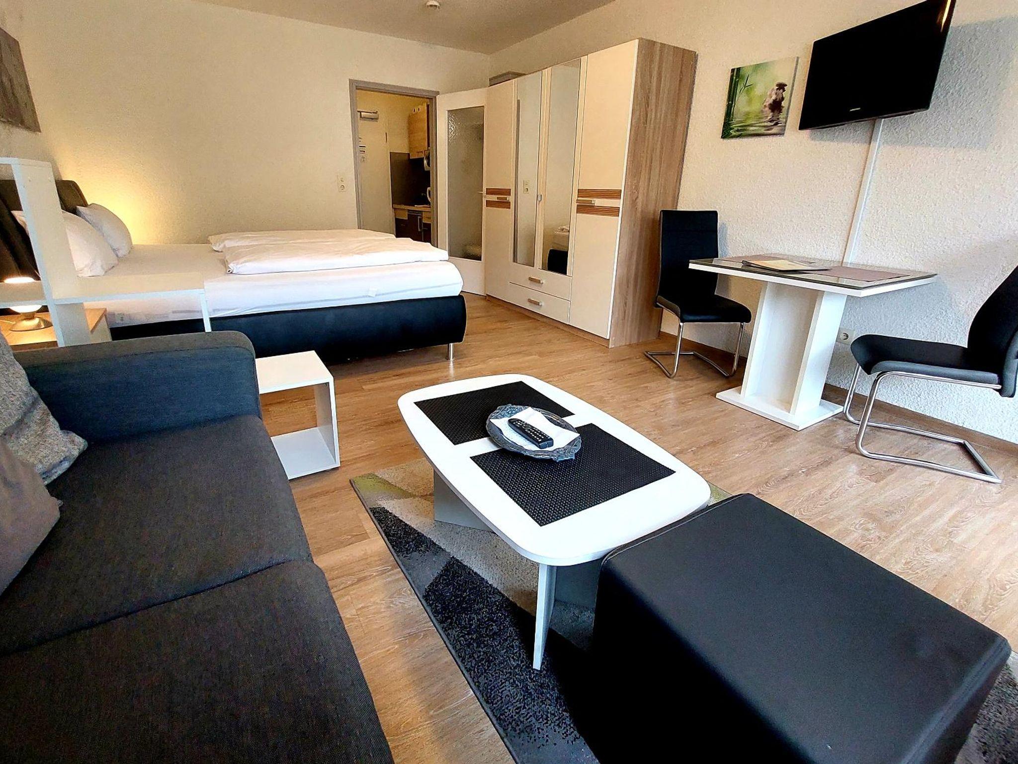 In unserem traditionsreichen Haus finden Sie gemütlich eingerichtete Appartements: (Wohn-Schlafraum) mit Schrankbetten, Polstergarnitur, SAT-TV, Kochnische, Bad und Balkon. Die Kleinküchen sind komplett mit Kühlschrank, Kaffeemaschine und Kochgelegenheit ausgestattet.