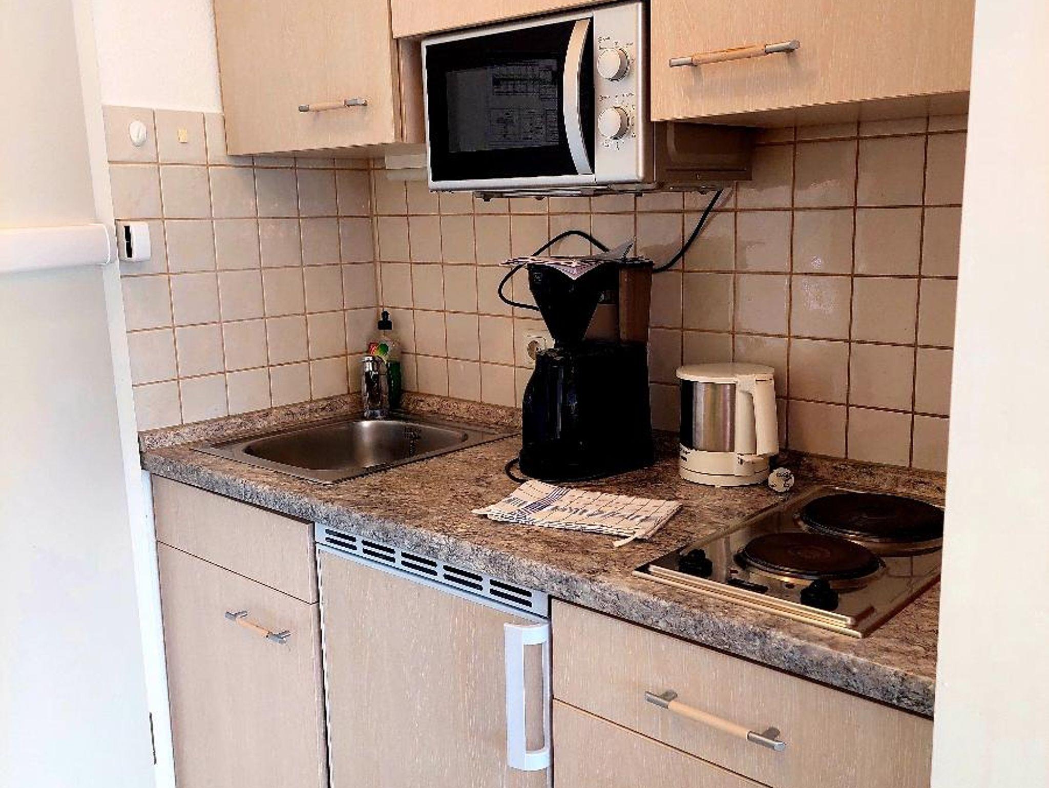 Das Appartement ist ausgestattet mit Wohnzimmer, Schlafzimmer (beide mit TV), zwei Duschen und zwei WC's und einer kleinen gemütlichen Küche.