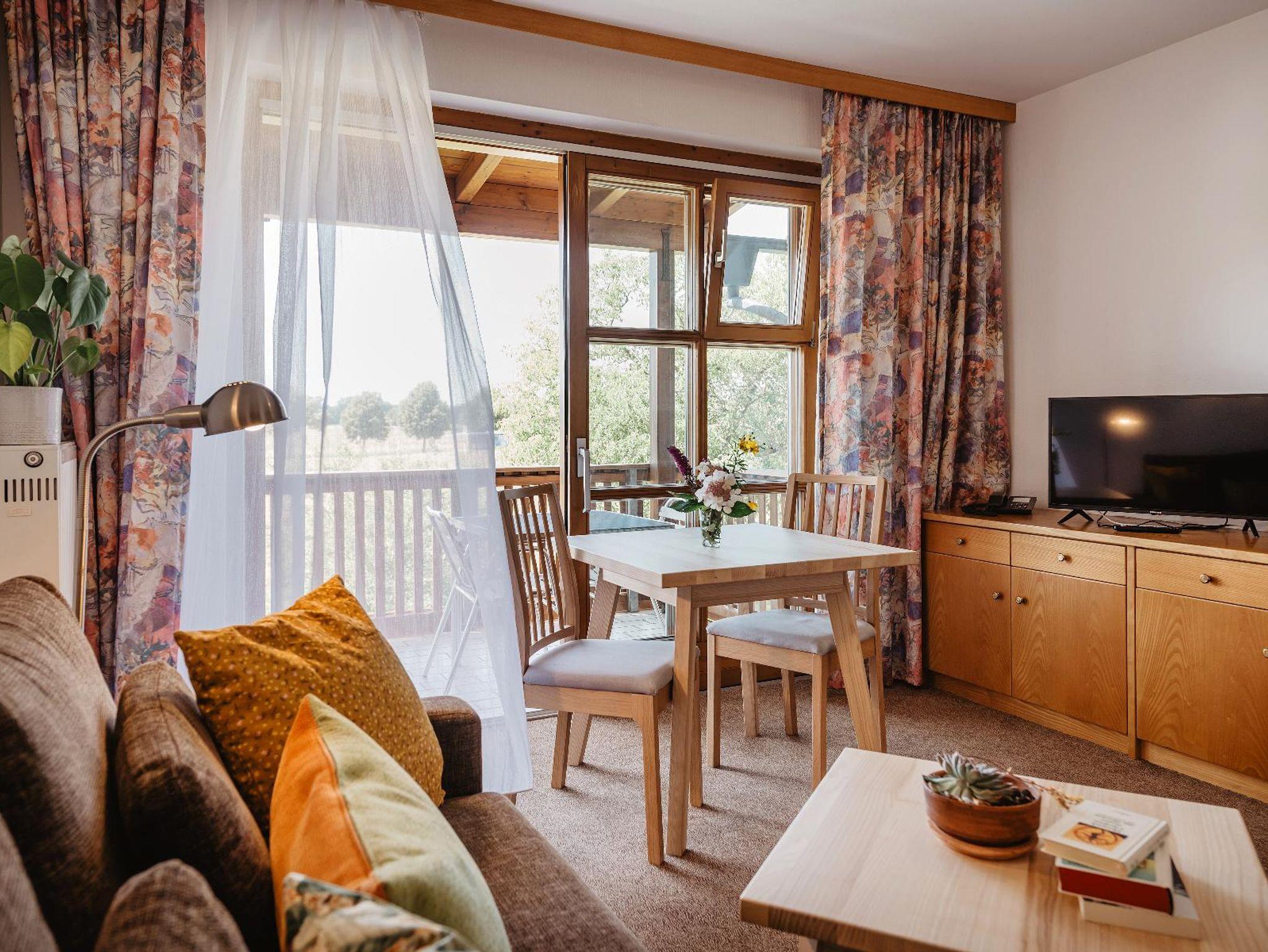 Diese Appartements befinden sich zum einen auf der Südseite unseres Hauses und auf der Gartenseite mit Blick ins Grüne.