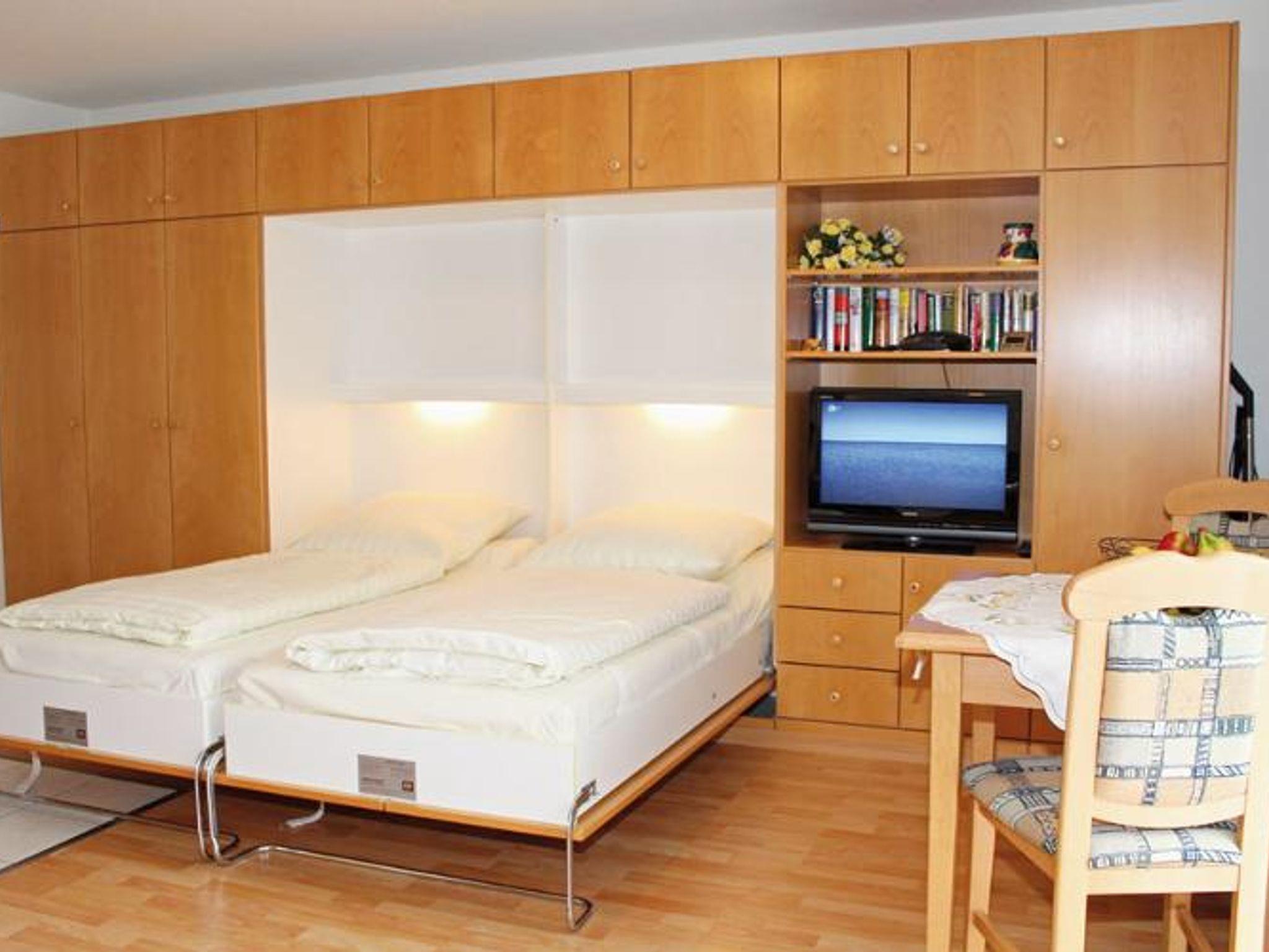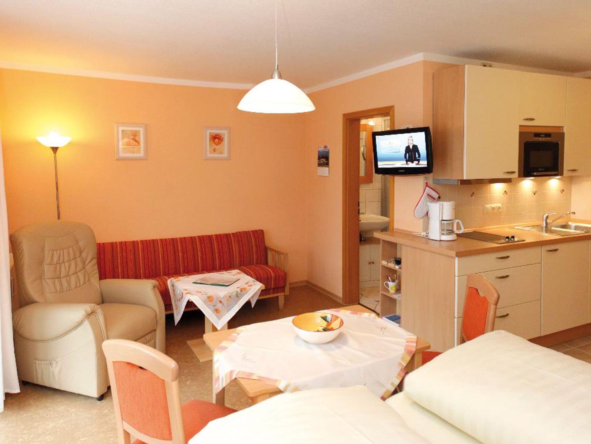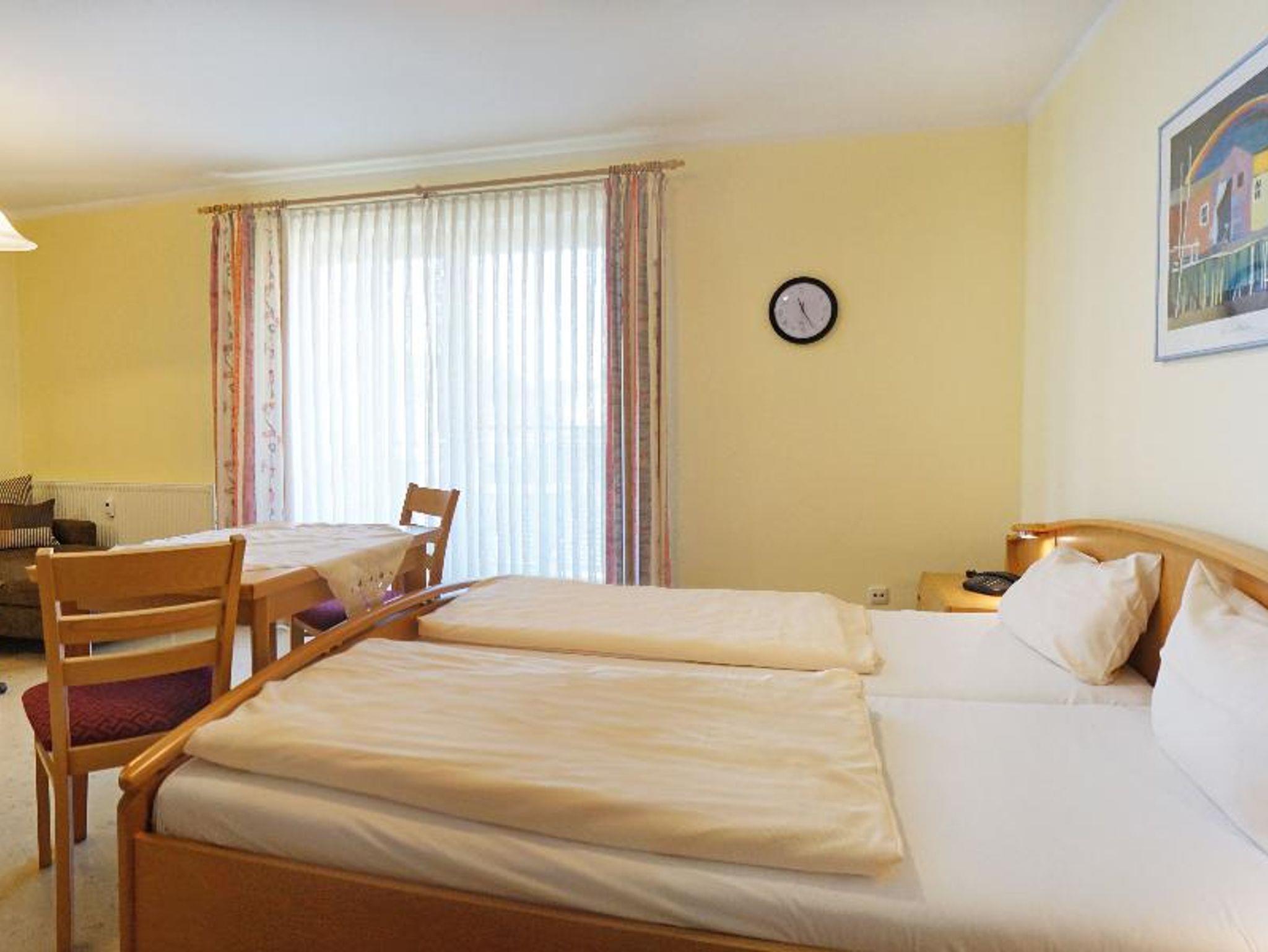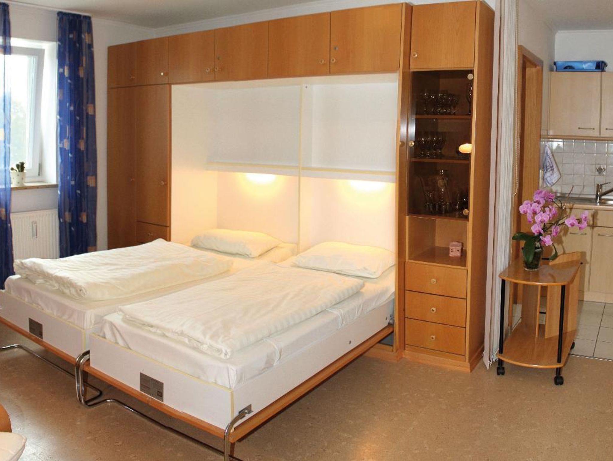 Die geräumigen 1-Zimmer-Appartement Typ A (ca. 30-34 qm) sind für 2 Personen ausgelegt. Im kombinierten Wohn- und Schlafzimmer befindet sich ein bequemes Doppelbett, ein Esstisch sowie eine voll ausgestattete Küche, Radio, SAT-TV, Couch und ein kleiner Couchtisch. Die Küche ist mit einem 2-Platten-Kochfeld, Mikrowelle, Kaffeemaschine, Spüle und Geschirr ausgestattet. Das Bad besteht aus Dusche und WC. Auf dem schönen Balkon/ Terrasse können Sie die Sonne und Aussicht genießen. Balkonmöbel sind vorhanden.