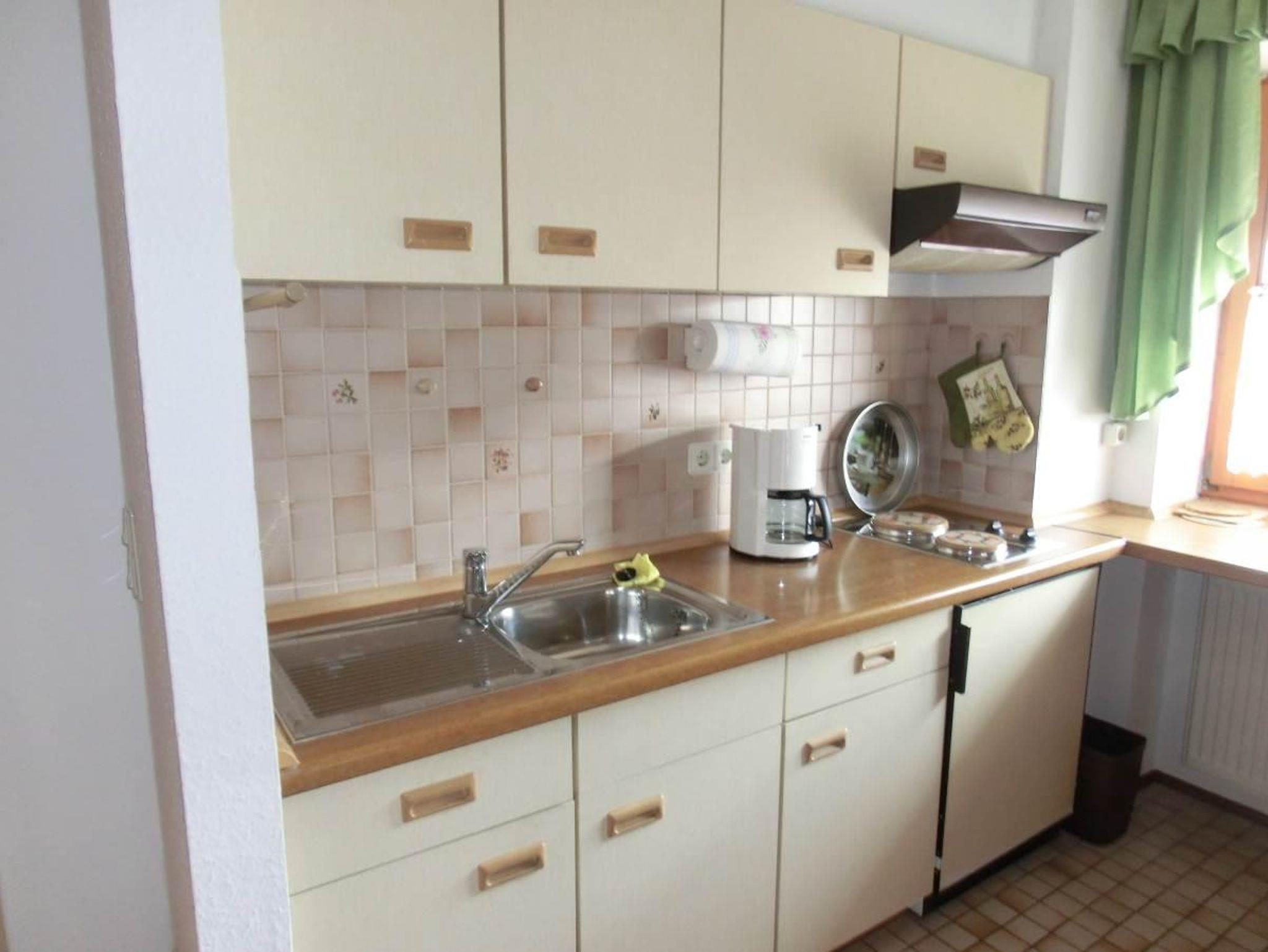 Kleinküche, Kühlschr., 2 Kochpl., Kaffeemasch., Geschirr;