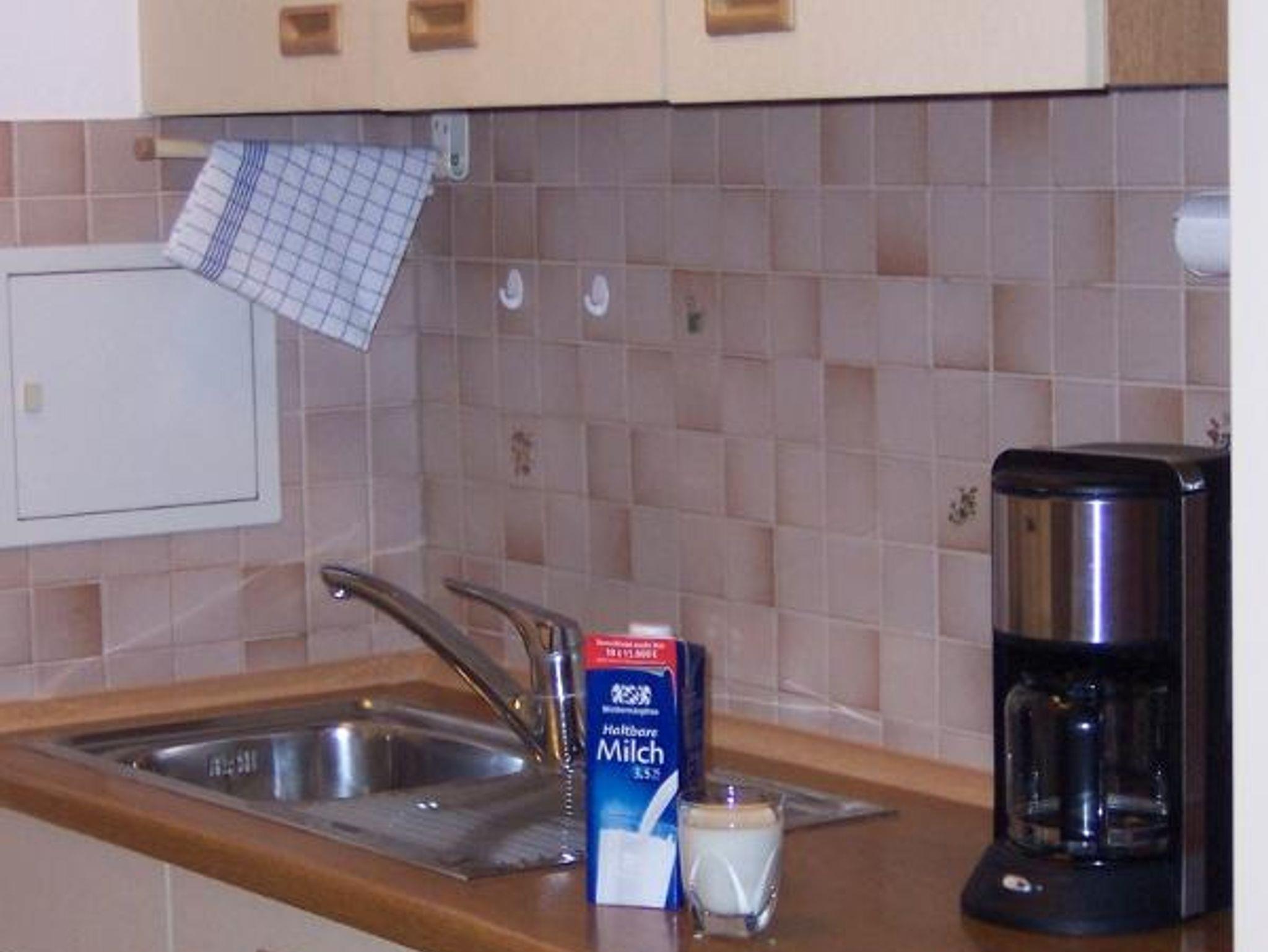 Kleinküche, Kühlschr., 2 Kochpl., Kaffeemasch., Geschirr;