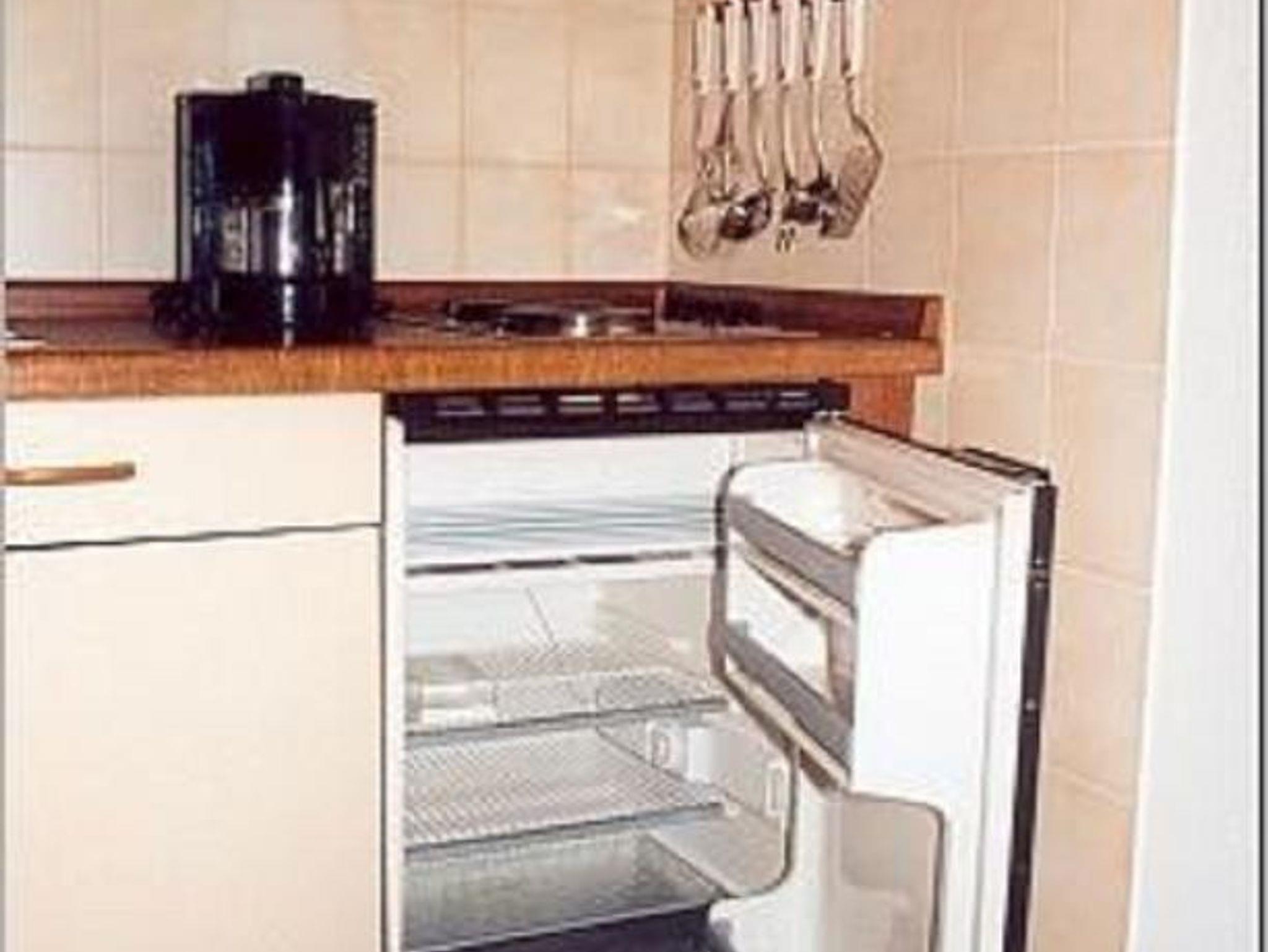 Küche vollständig eingerichtet mit Kaffeemaschine, 2-Platten-Herd, Wasserkocher, Mini-Backofen, Toaster