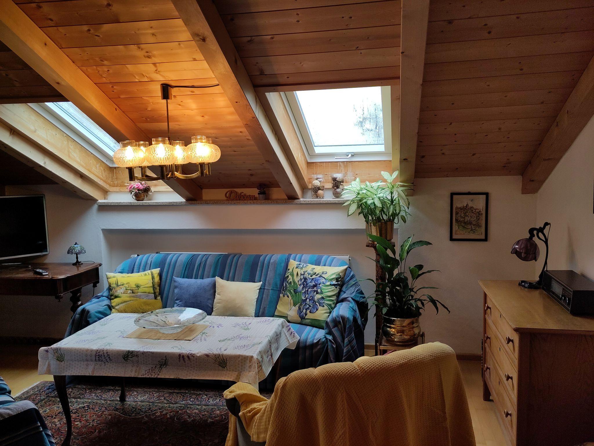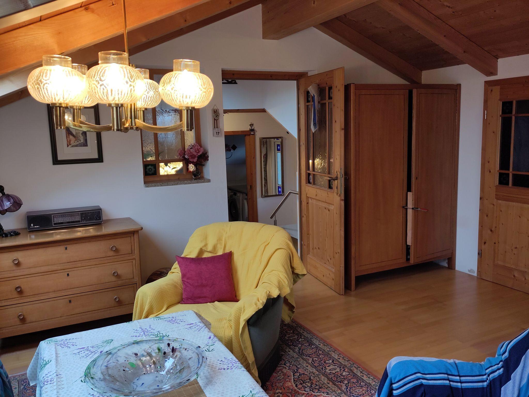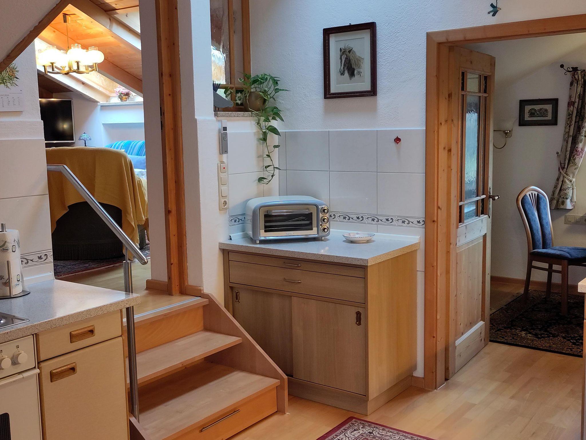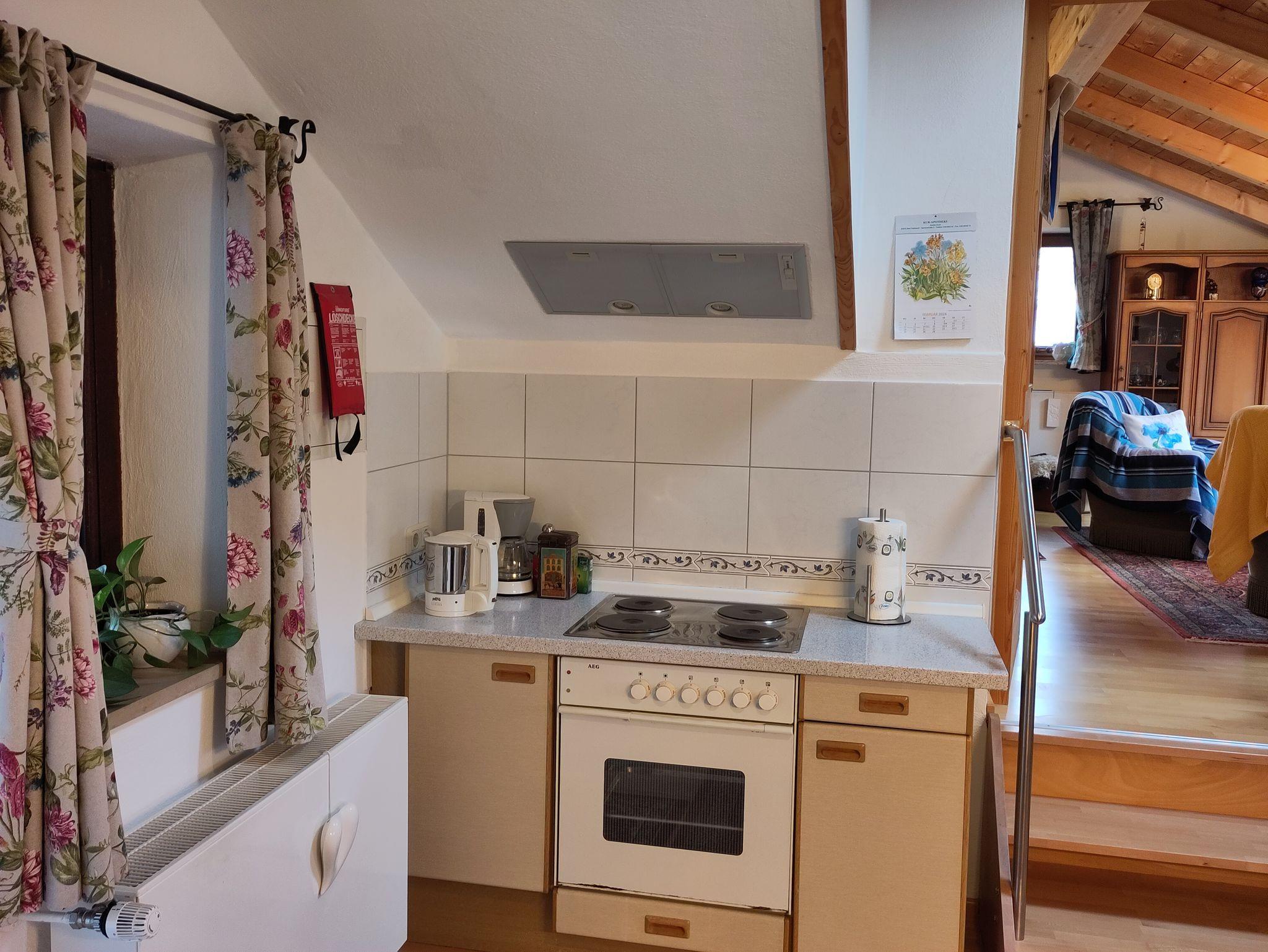In der komfortablen 2 Zimmerwohnung im 1. Stock mit 50 qm, separatem Eingang und PKW Stellplatz bleibt kein Wunsch offen. Die Wohnung verfügt über einen großzügigen und hellen Schlaf-Wohnbereich, ein gemütliches Esszimmer mit Bergblick, eine großzügige und vollausgestattete Küche, ein helles funktionelles Bad mit Dusche, WC, Waschmaschine sowie Trockner und einem großen überdachten Balkon mit Tisch, Eckbank und Stuhl.