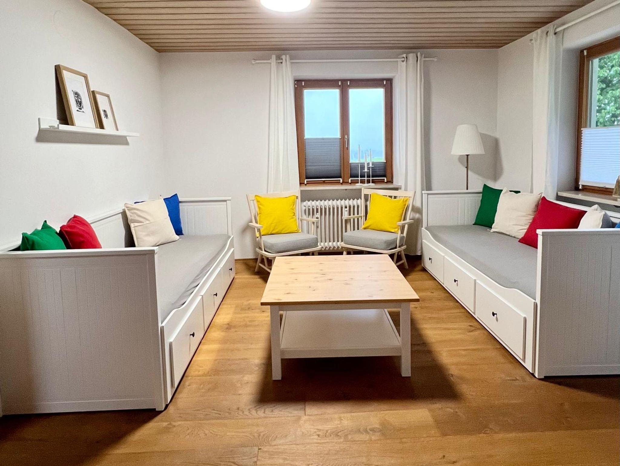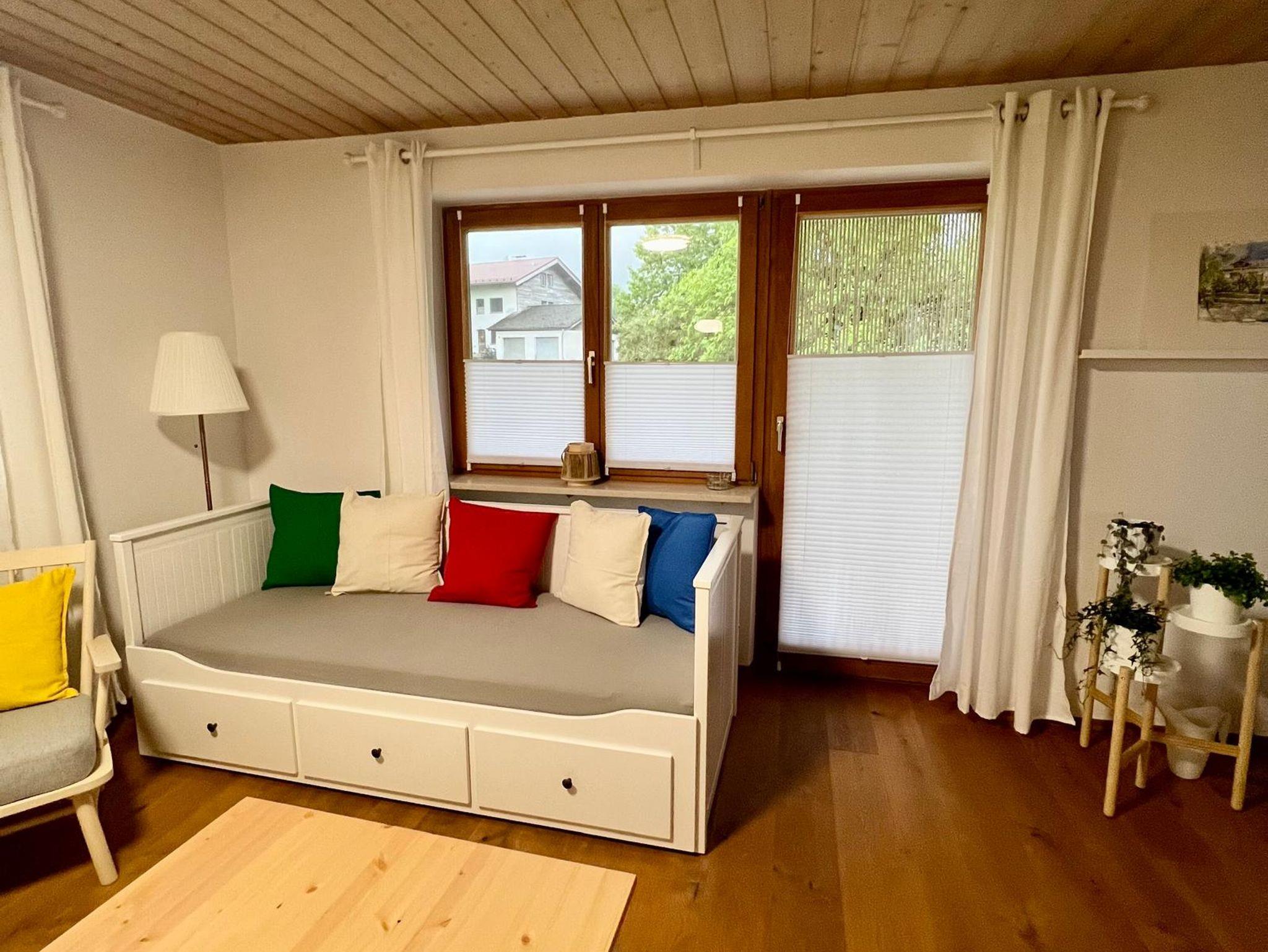 Unsere helle, gut ausgestattete Ferienwohnung befindet sich in einem ruhig gelegenen 4- Familienhaus im Ortsteil Litzldorf. Unsere Gäste dürfen gerne ihren Hund mitbringen. Die Wohnung ist sehr gut geeignet als Ausgangspunkt für Wanderungen, Radtouren, zum Skilaufen oder für Städtetouren (München 60 km, Salzburg 90 km, Kufstein 30 km). Ein Einstellplatz für Fahrräder ist vorhanden. In unmittelbarer Nähe befindet sich eine Bäckerei und ein traditionelles Gasthaus (ca. 3 min Fußweg). Auf Nachfrage stellen wir ein