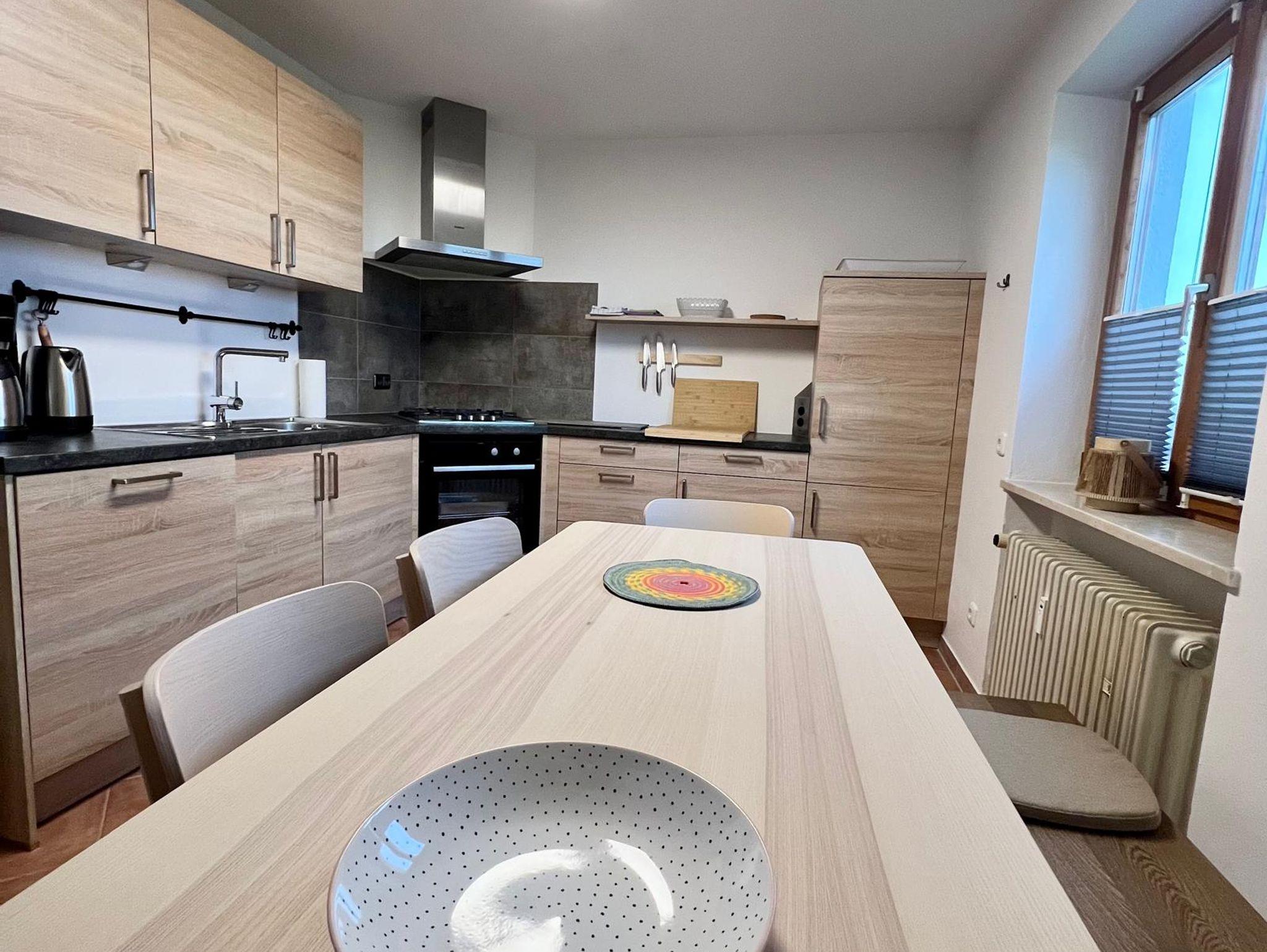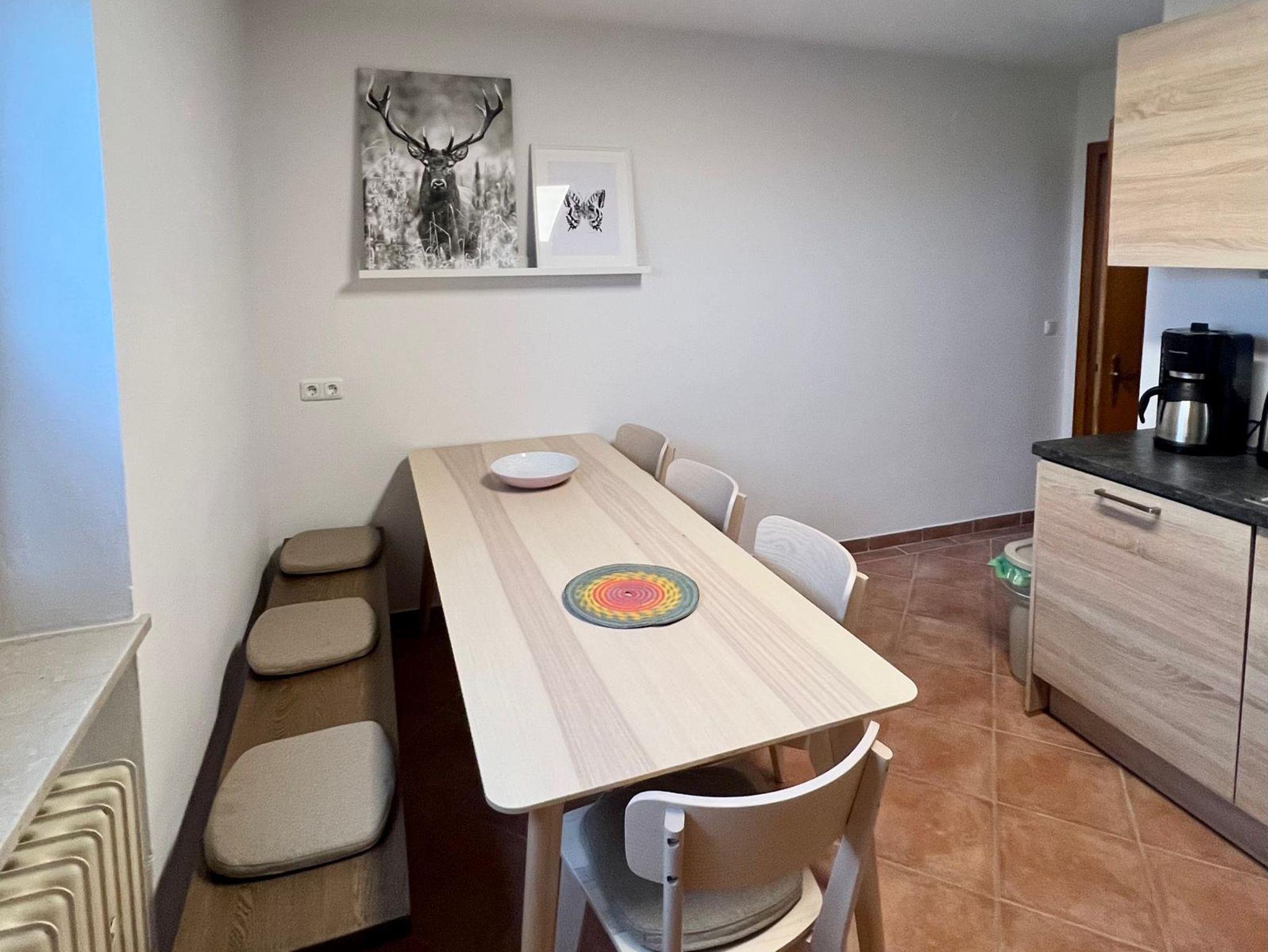 Die helle Ferienwohnung ist geeignet für maximal 6 Personen. Die Gäste dürfen gerne Ihre Hunde mitbringen. Die Wohnung hat eine Südterrasse und befindet sich in einem 4-Familienhaus im Ortsteil Litzldorf. Die Gäste können direkt von der Ferienwohnung aus zum Bergwandern, Radfahren oder Spazieren gehen starten. In unmittelbarer Nähe befindet sich eine Bäckerei und eine Gastwirtschaft mit einem gemütlichen Biergarten (ca. 3 min Fußweg). Parkplatz ist an der Unterkunft vorhanden.