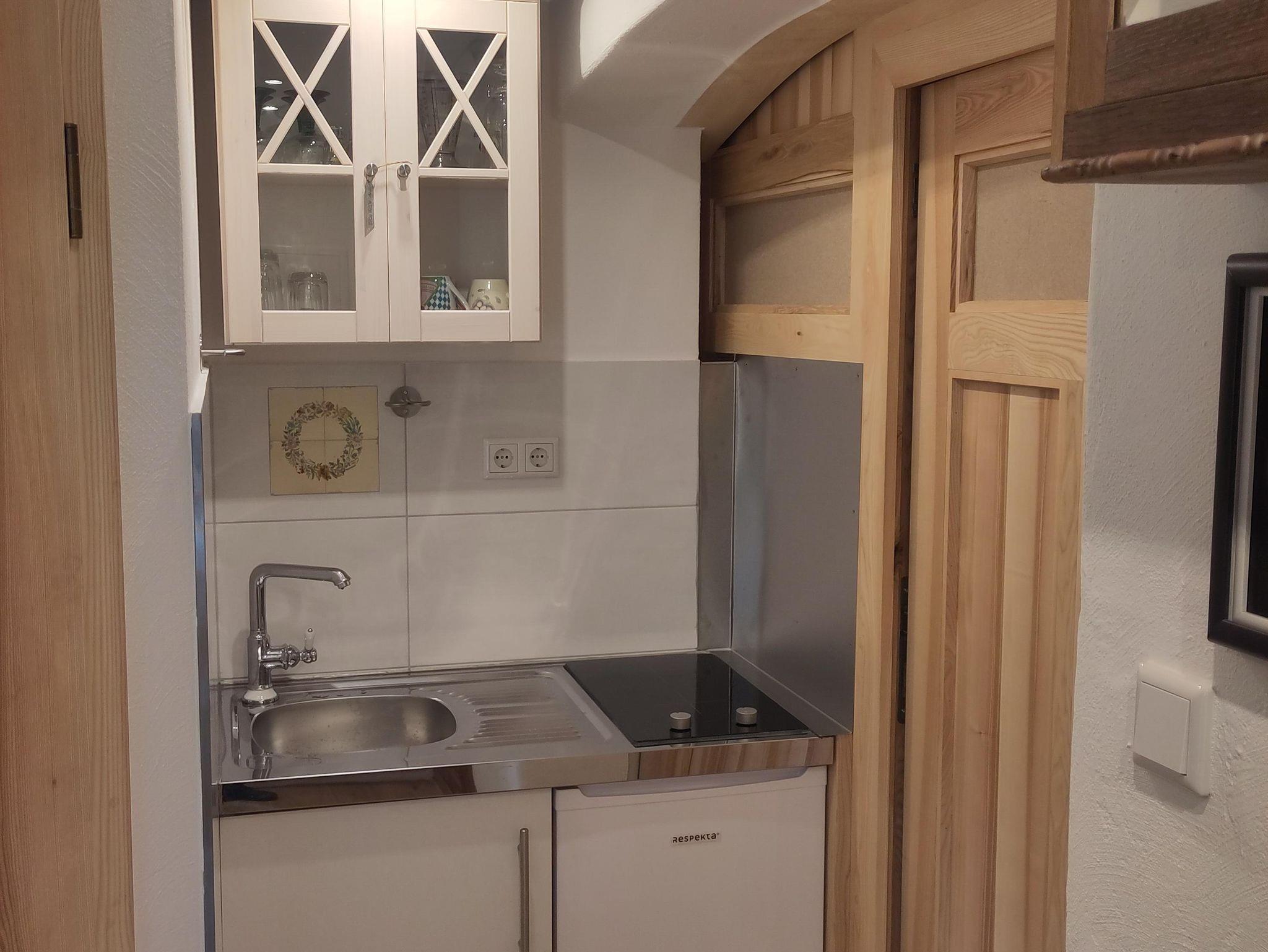 Die kleine, aber feine 1 Zimmerwohnung im Erdgeschoß (mit separatem Eingang) mit Kochnische, Backofen und Mikrowelle, sowie einer Kühl-Gefrierkombination, neu renoviertes Badezimmer mit begehbarer, bodengleicher Regendusche, WC. Diese Wohnung ist optimal für 1 Person geeignet. Schlaf-Wohnbereich mit Fenster, Essbereich bei der Kochnische.