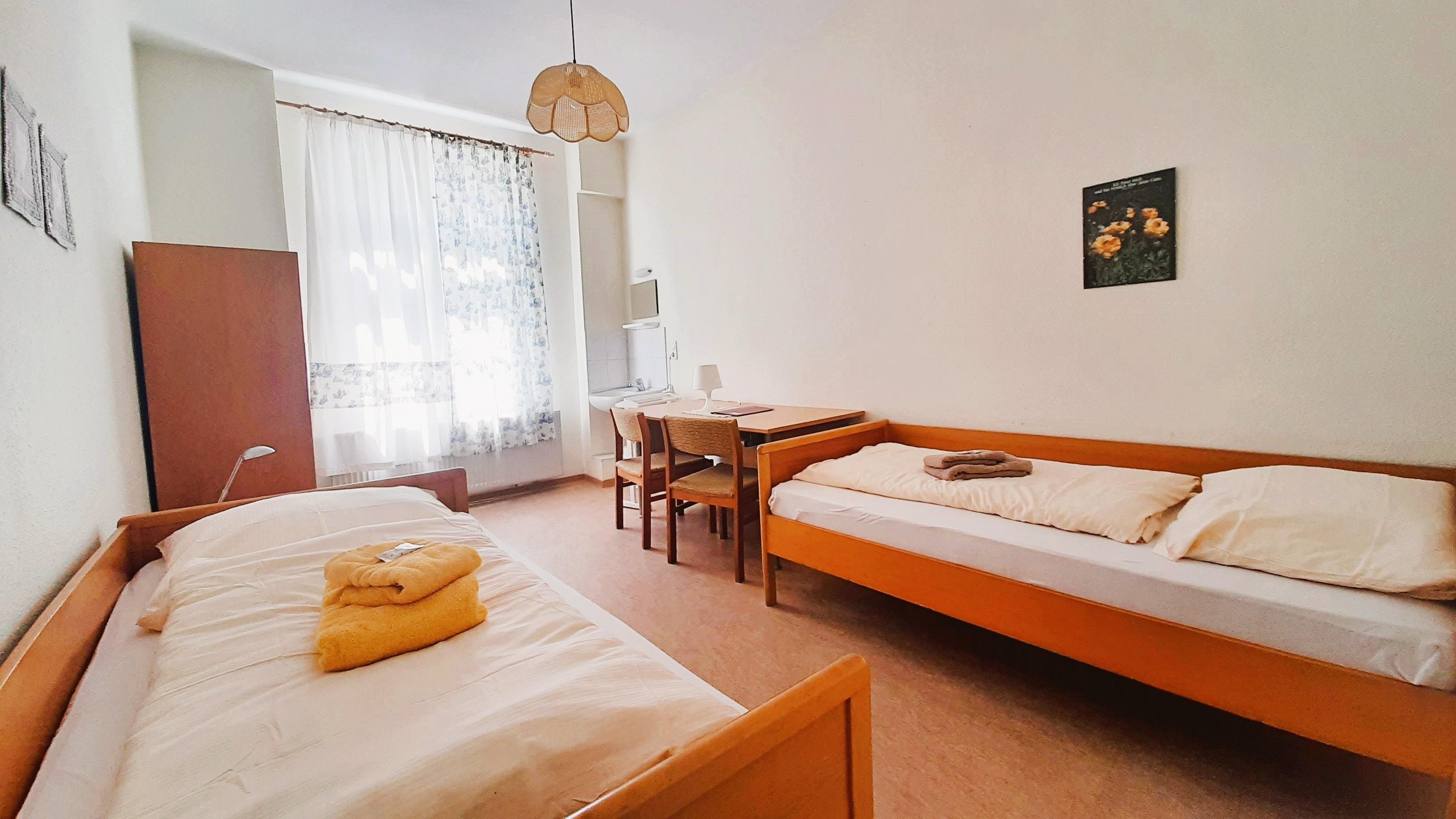 In unserem großen Gästehaus, erbaut 1907, stehen Ihnen insgesamt 27 Zimmer mit 51 Betten zur Verfügung. Die sanitären Einrichtungen sowie die Gemeinschaftsküchen befinden sich auf der Etage.