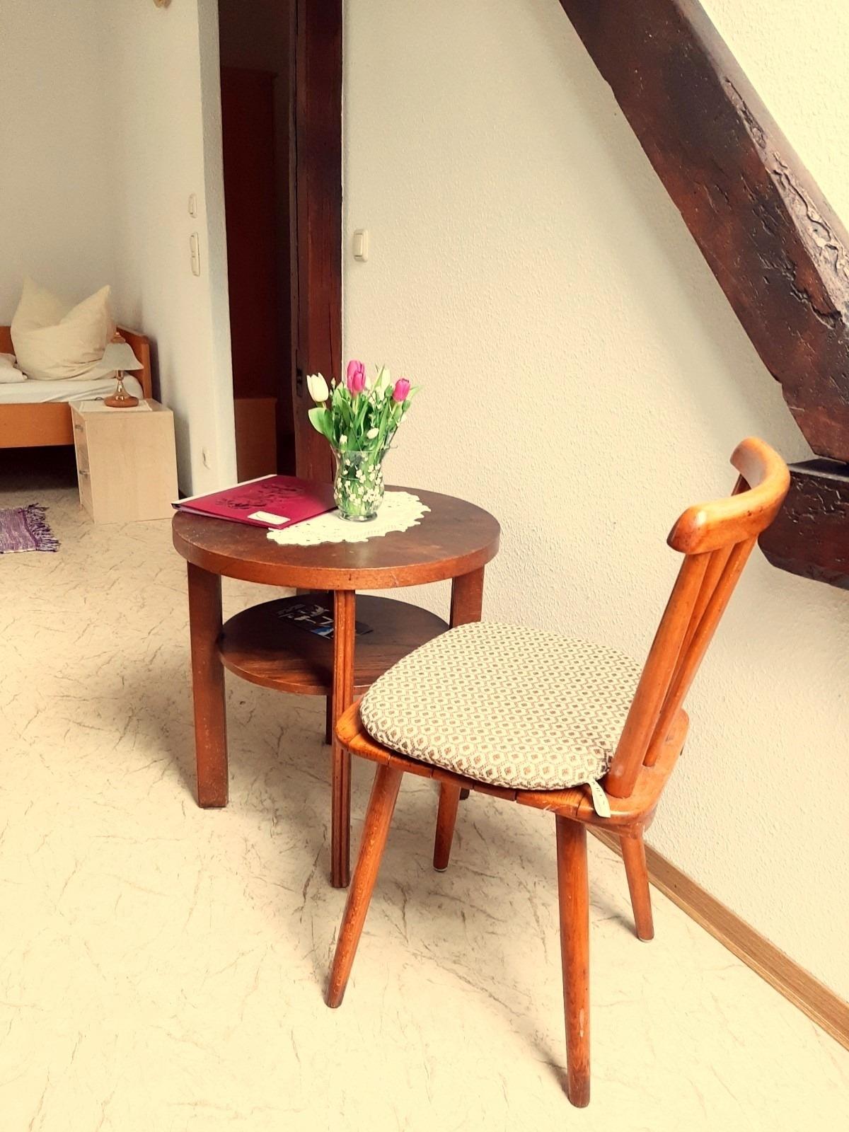 In unserer gemütlichen Villa steht Ihnen unsere Gästewohnung mit 2 Zimmern und einem gemeinsamen Bad sowie ein Einzelzimmer mit inkludiertem Bad zur Verfügung. Zudem ist ein Fahrstuhl vorhanden, der den Zugang zu den oberen Etagen erleichtert.