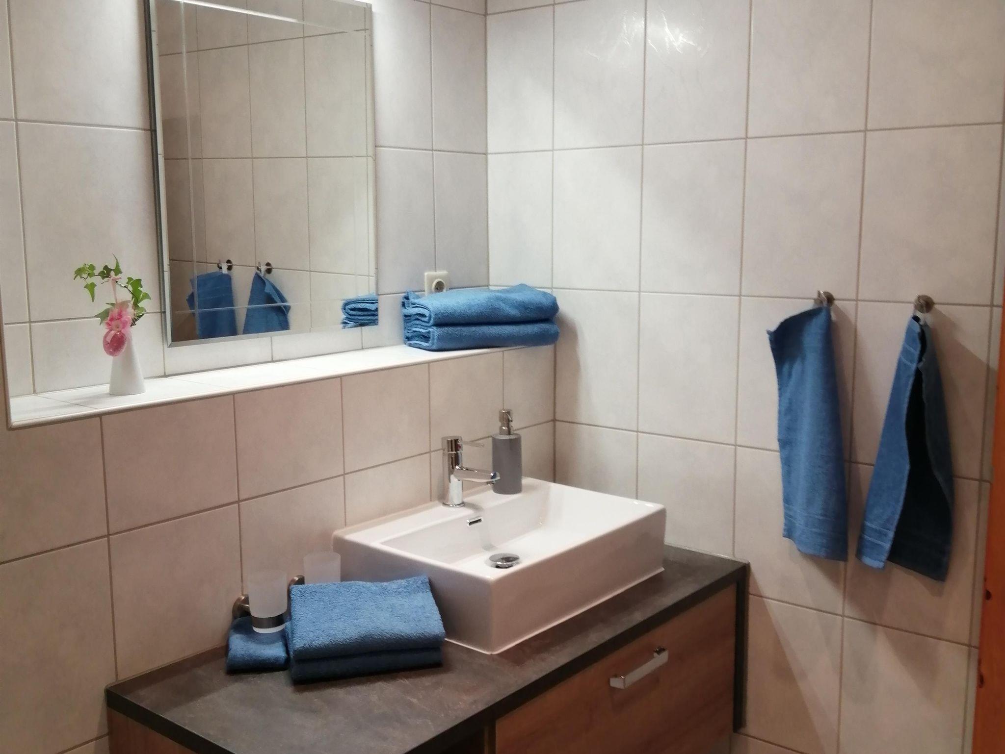 Willkommen in unserer gemütlichen geräumigen Ferienwohnung mit Holzbalkendecke und Fussbodenheizung. Sie befindet sich in einem denkmalgeschütztem Haus direkt am wunderschönem Markt in Bad Gottleuba. In der Ferienwohnung können bis zu vier Personen (ideal 2 Erwachsene und 1 Kind oder 3 Erwachsene und 1 Kind) ihren erholsamen Urlaub genießen. Sie ist ca. 67 qm groß und beinhaltet einen Wohn-/ Schlafraum mit Couch, Schlafcouch und zwei gemütlichen Sesseln, TV Flachbildschirm mit Streamingdiensten (Bsp.Netflix), ein Bad mit Badewanne und Duschabtrennung, WC, Föhn und Waschmaschine. In der Küche können Sie Platz nehmen in der urigen Essecke und finden alles, was man zum Kochen benötigt. Bsp. Eierkocher, Töpfe, Pfannen, Mixer, Geschirr und Gläser aller Art. Ebenfalls finden Sie Kaffee, Tee und Zubehör für Ihre erste Tasse Kaffee/Tee nach einer anstrengenden Anreise. Im Schlafzimmer erwartet Sie ein Boxspringbett (180 x 200 cm), ein geräumiger Kleiderschrank und eine große Kommode. Bei Bedarf stellen wir noch ein Zustellbett zur Verfügung.