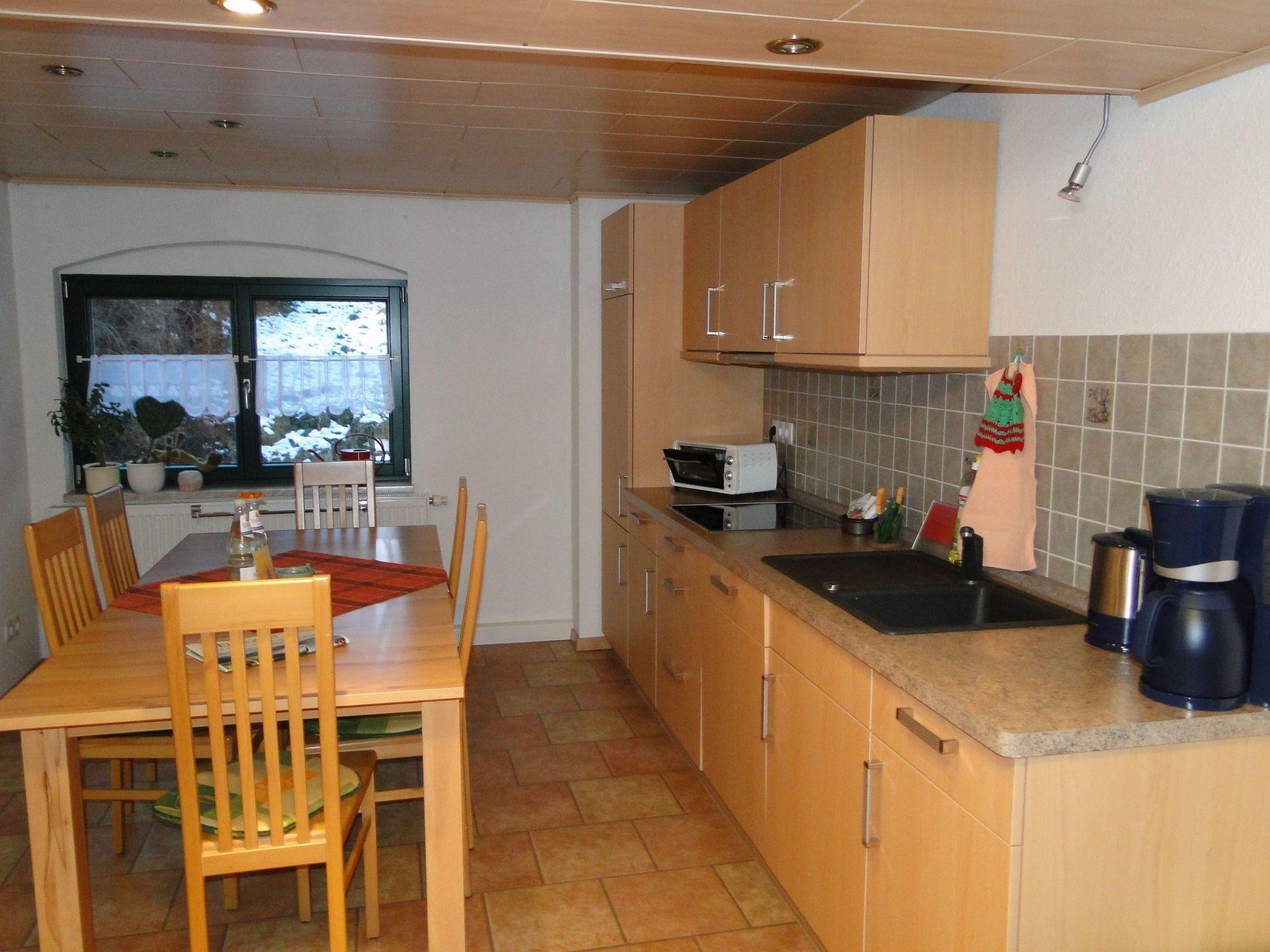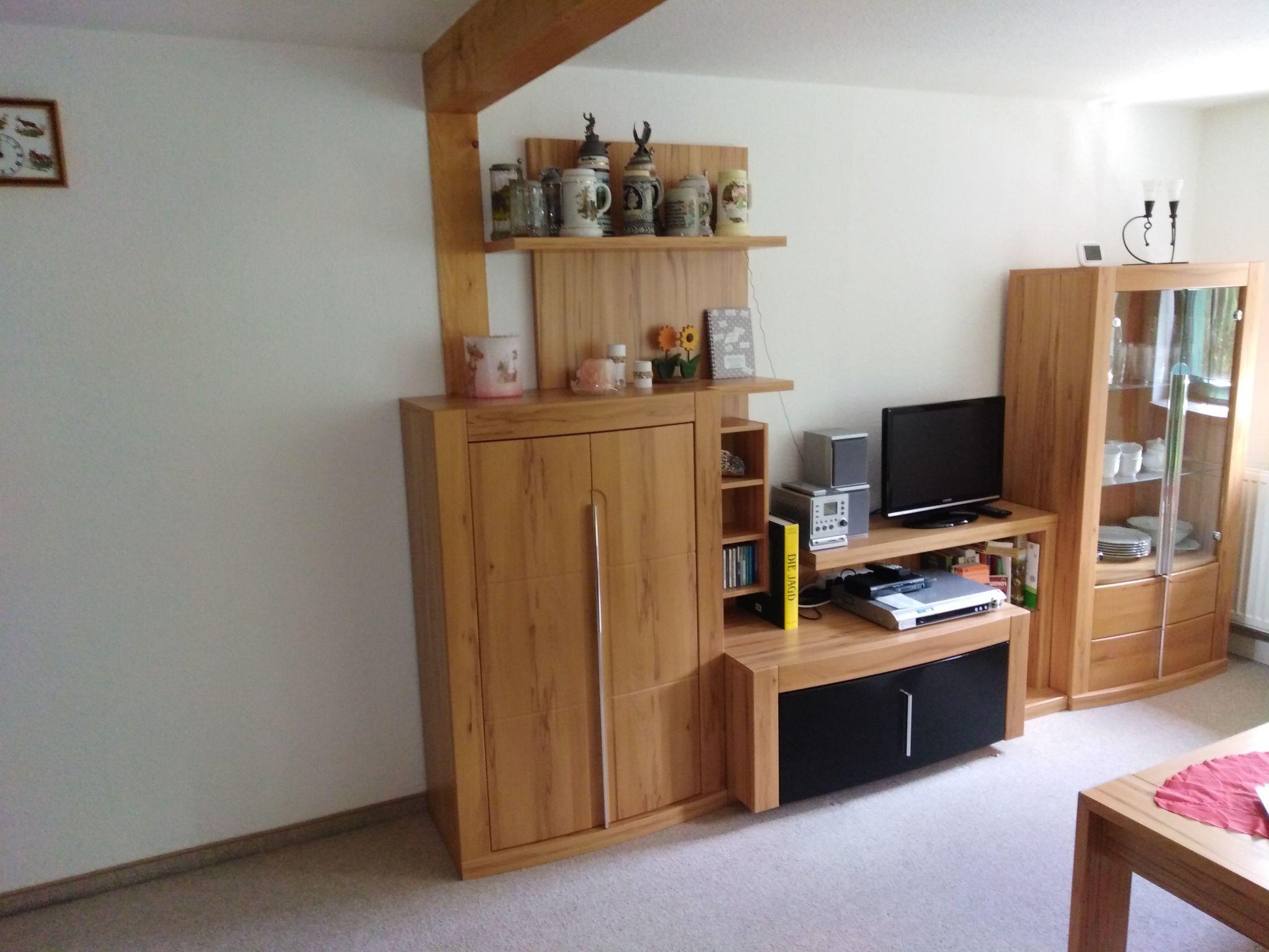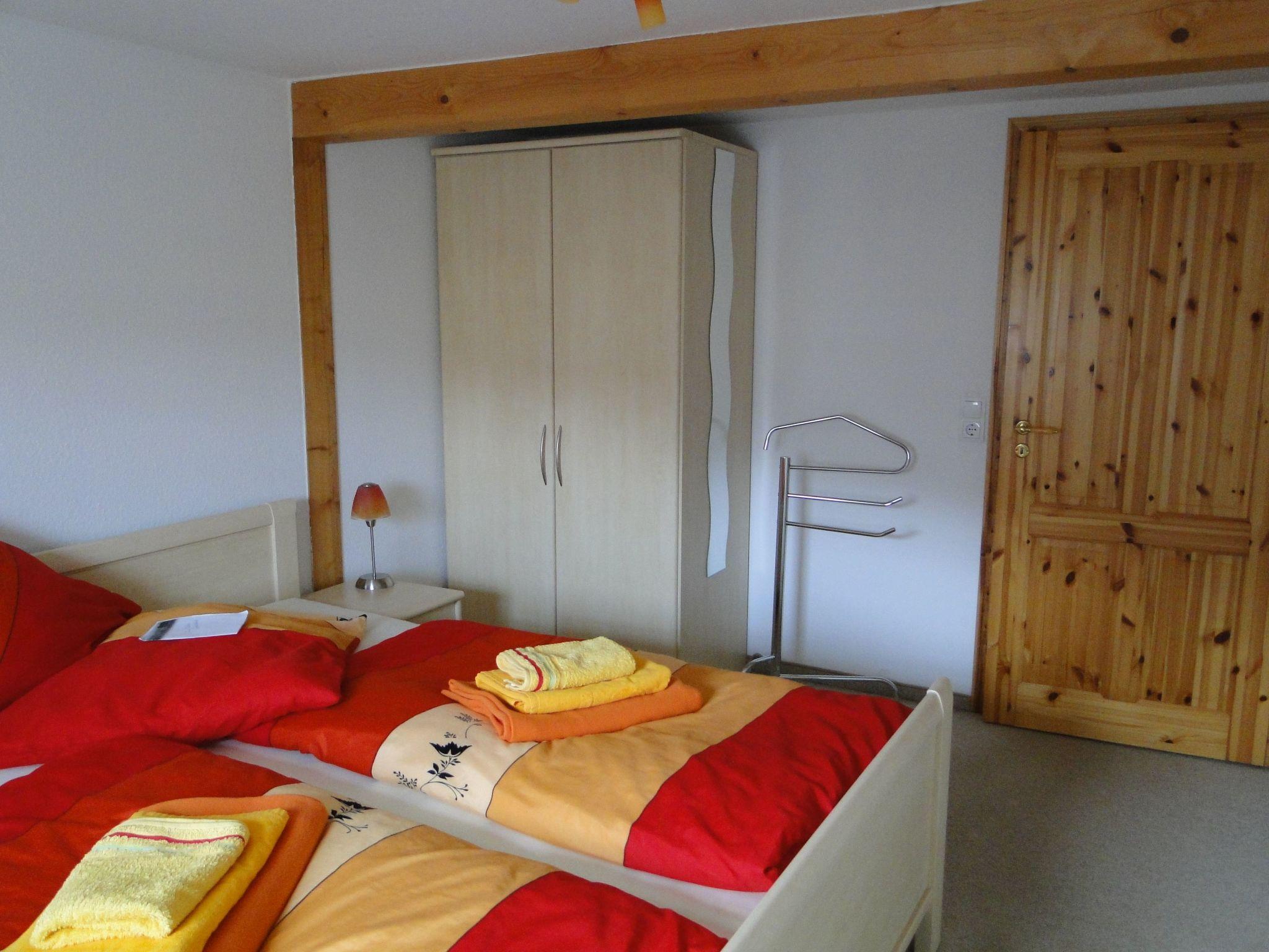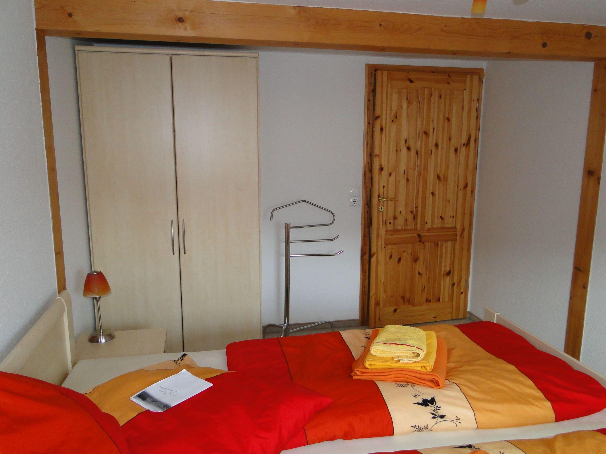 The holiday flat is located on the 1st floor front entrance next to the landlord's flat. CA. 70 m²2 bedrooms, 1x double bed, 1x 2 single beds, 1 living room with couch, wall unit with TV and radio / CD, 1 kitchen with ceramic hob, dishwasher, fridge, toaster, coffee maker, kettle, crockery complete for 6 people,