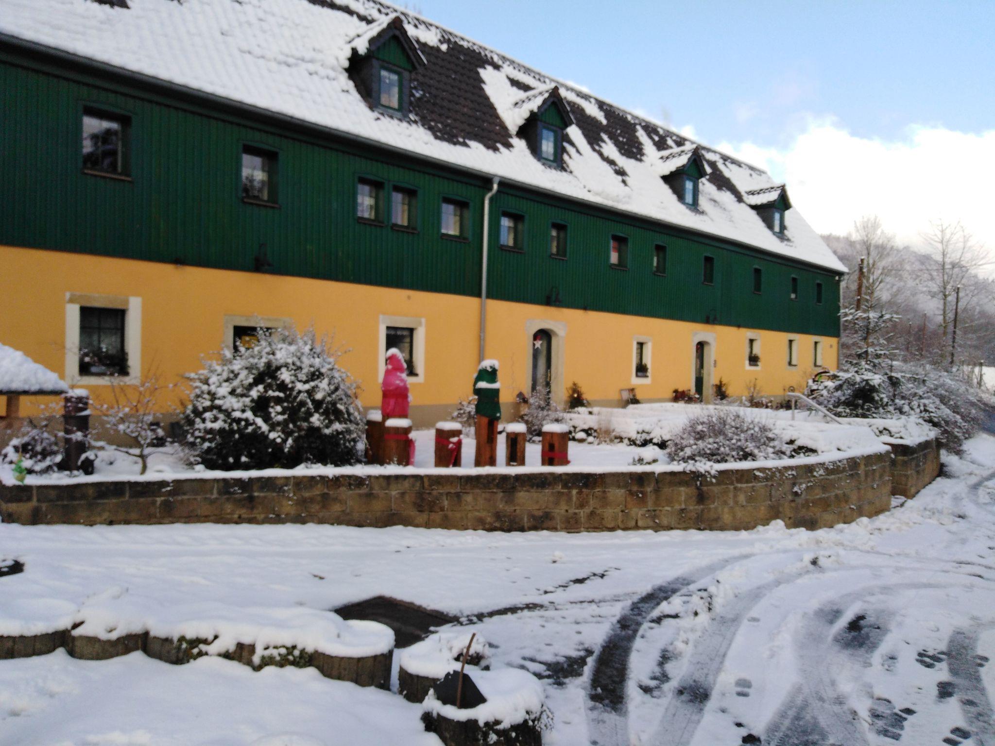 Our house is located 15 minutes on foot from the market square of Bad Gottleuba, where you can hike over the Raabsteine or through the Tannenbusch, far away from the tourist hustle and bustle. Visit our Talsperre viewpoint with its circular hiking trail. Nature lovers should definitely visit our nature reserve. Nearby is the Oelsner Höhe, a popular hiking tour, where you can visit the Rumpelkammer at the riding stables, the medical exhibitions at the health park clinic, the Max-Bähr-Mühle mill for demonstrations and the Marie-Louise Stollen, a salt barn and the Seismographic Museum in the neighbouring village of Berggießhübel, where you will find hotels, inns and cafés to feast and quench your thirst. In the town centre you will find a savings bank, pharmacy, doctor/dentist's surgery, physiotherapy, bakery, butcher, two supermarkets, hairdresser, leather goods, arts and crafts, fashion shop, tourist office, library and florist. The historic city centre of Dresden with its special sights can be reached in 20 minutes. The district town of Pirna is about 25 minutes away by car via the S 173 motorway and you will be amazed by the old town. The Marienkirche church, the city museum and the Tom Pauls theatre are definitely worth a visit. Not far away is the steamer landing stage for trips to Dresden, Prague or the Elbe Sandstone Mountains. Be sure to visit the Bastei, the view is well worth it. Weesenstein Castle, Pillnitz Castle or Königstein Fortress can be combined with a hike or reached quickly by car. Altenberg and the bobsleigh run are not only interesting in winter, there is also plenty to do in the village and the surrounding area during the rest of the year. The car journey takes 20 minutes.