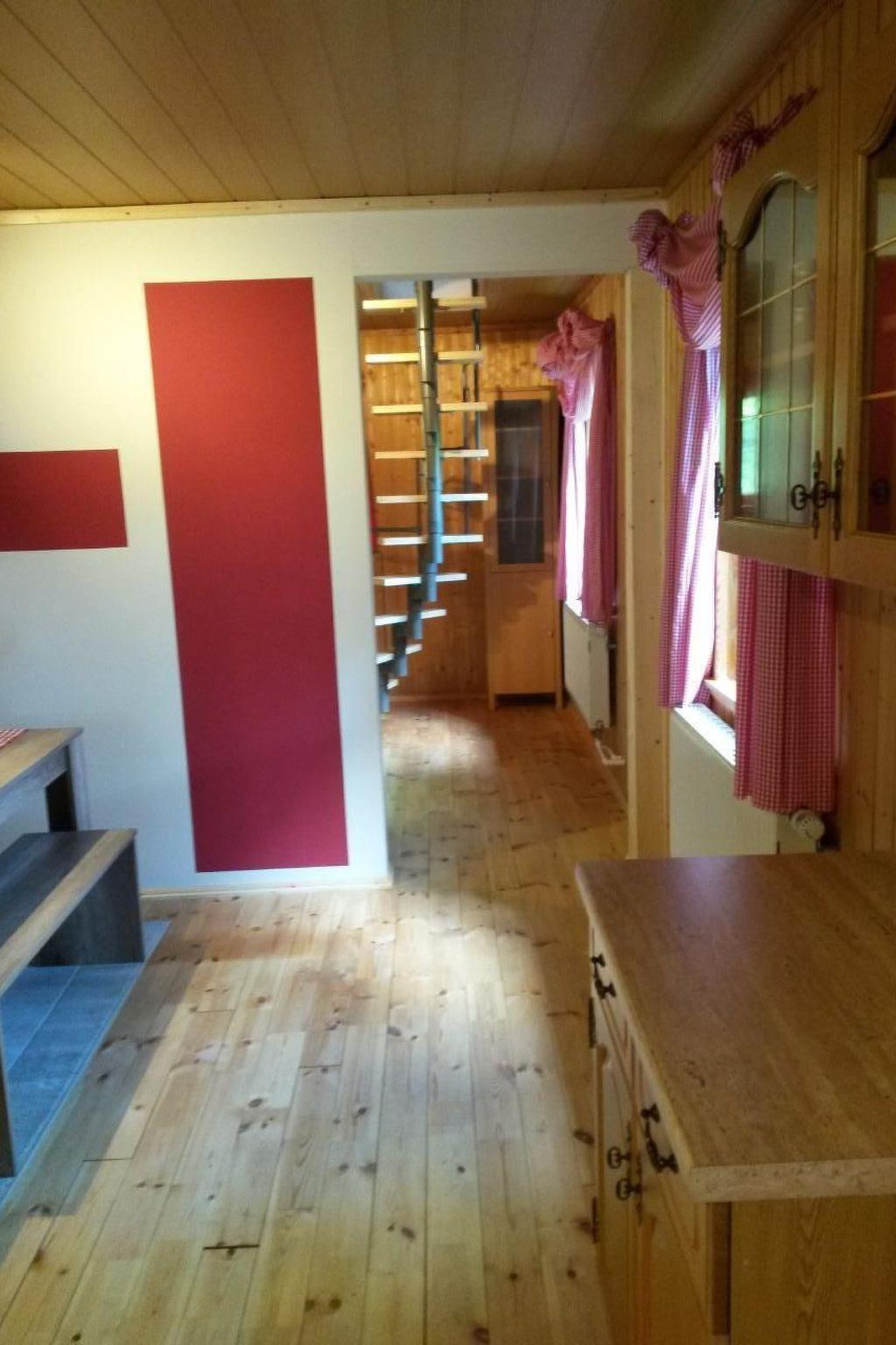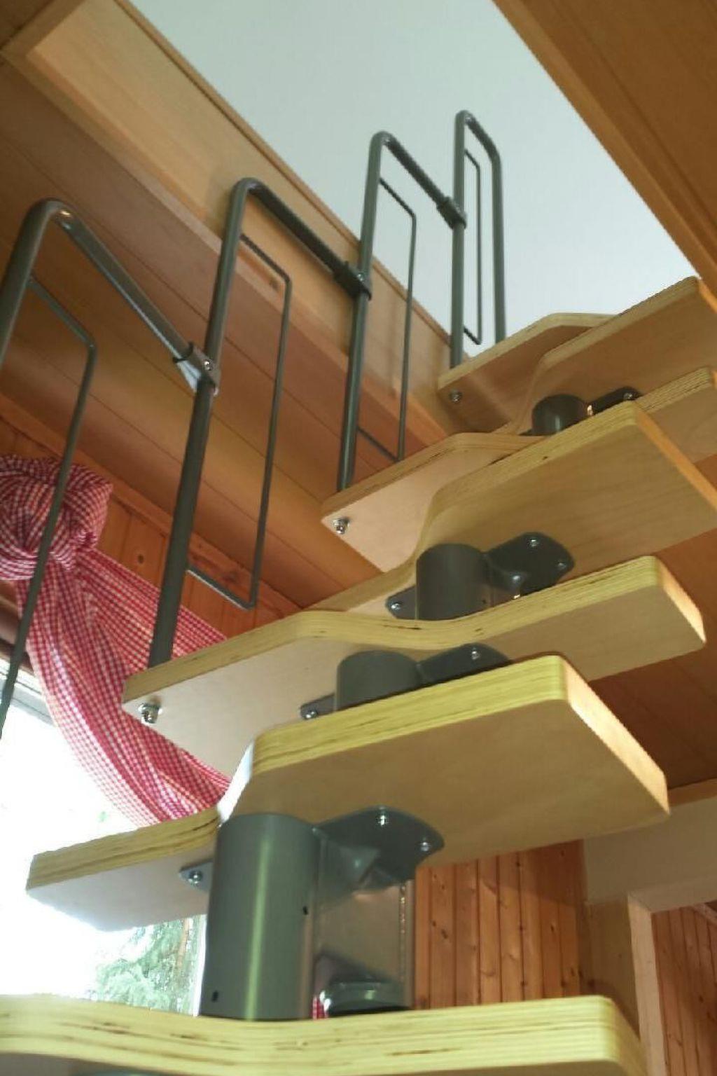 Inside the bungalow, you will find a fully equipped eat-in kitchen with modern amenities such as an oven, microwave and fridge-freezer, providing plenty of storage space for culinary adventures. Meals can be enjoyed at a modern dining area, while the separate living room with its comfortable sofa invites you to relax and watch TV. A spiral wooden staircase leads to the cosy bedroom in the attic, which not only offers a double bed, but also additional sleeping options. There are two youth beds for our younger guests, and a travel cot with changing mat, a baby monitor and a high chair are available on request.