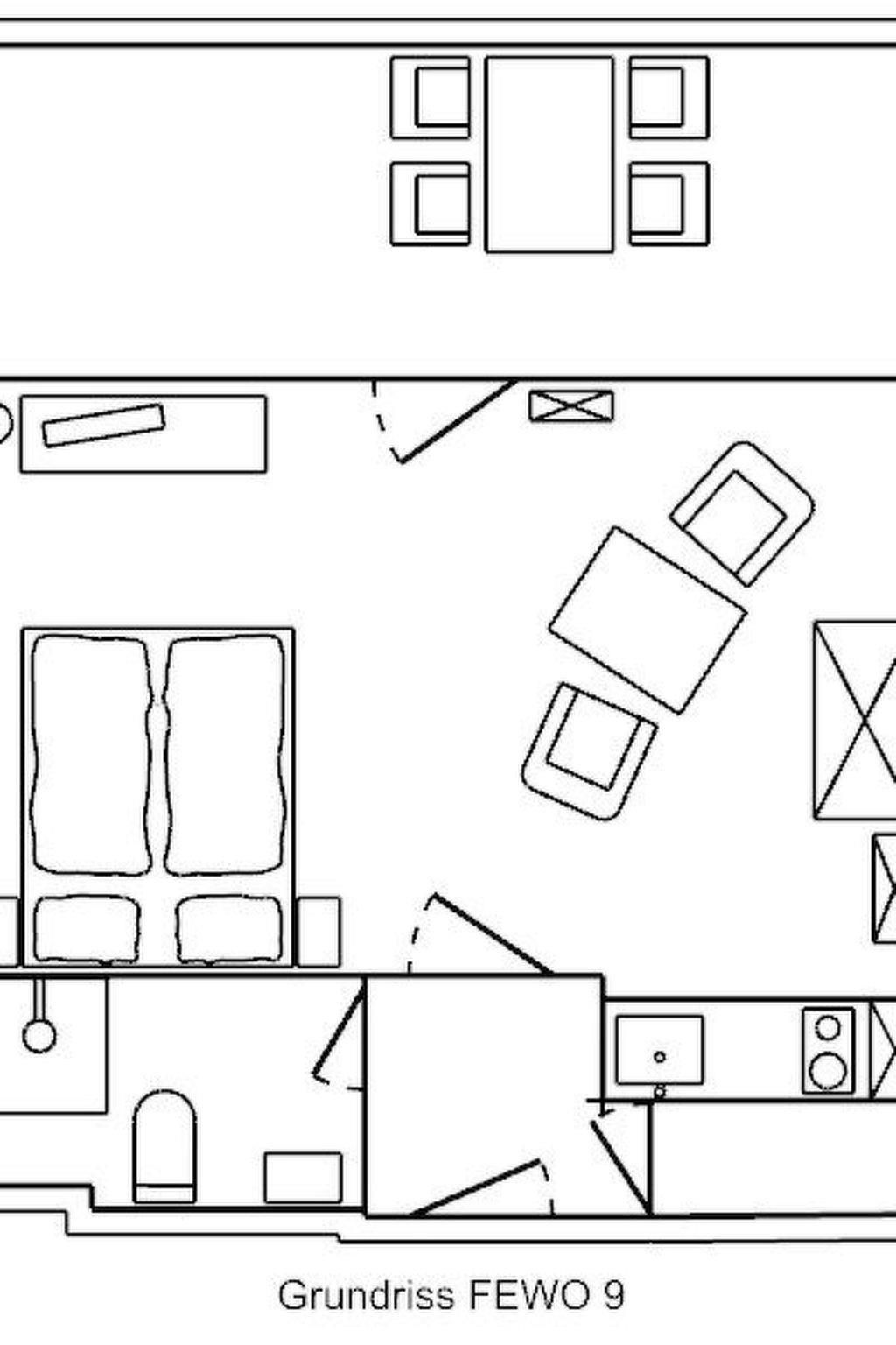 The furnishings are rustic and in good condition. The apartment has a comfortable box-spring bed with a lying surface of 1.60x2m, a kitchenette and a cosy dining area. There is a bathroom with shower and WC and a storage room. Each flat has a covered parking space directly in front of the house. There is a key box in this carport with the number 9. Before arrival you will receive a six-digit code to open the box, and in the communal cellar there is a washing machine and tumble dryer as well as a lockable bicycle cellar. On the 1st floor there is a communal balcony (south-facing) with seating and parasol. A barbecue is available and can be used.