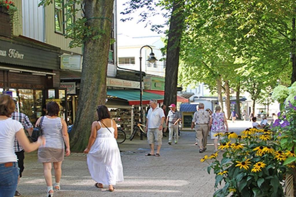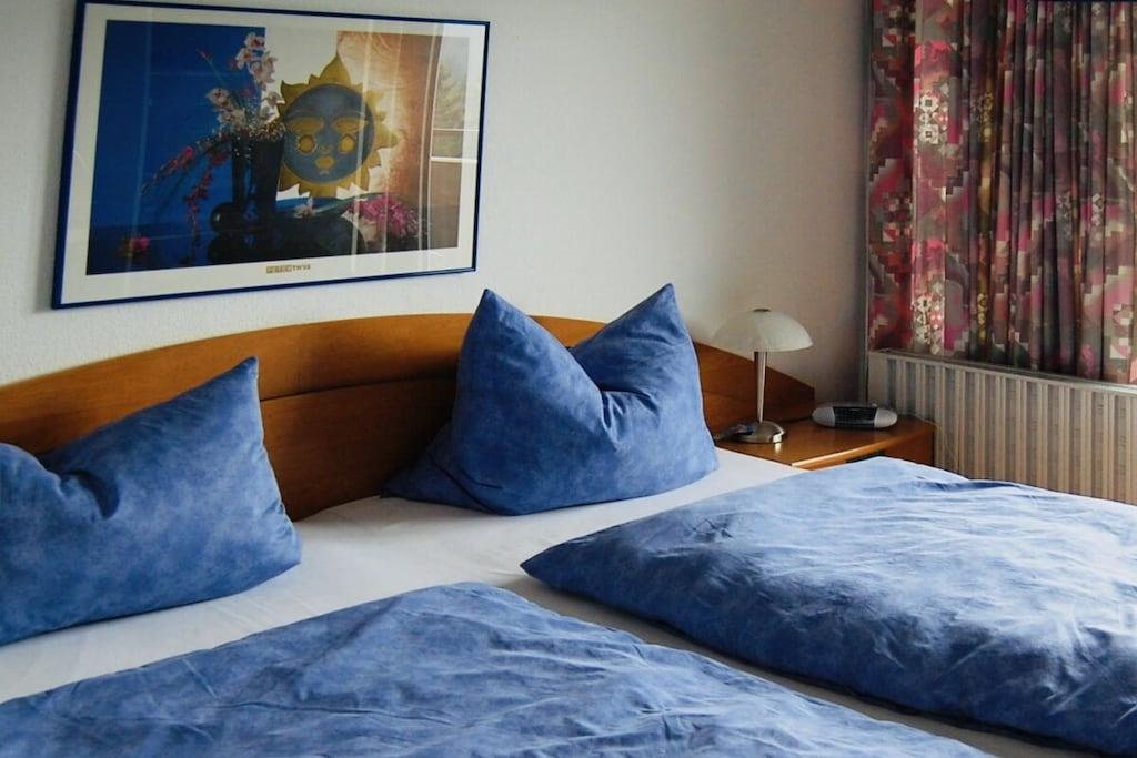 Unsere Ferienwohnung ist sehr ruhig und doch zentral gelegen. Sie ist 52 qm groß und mit Wohn-, Schlafzimmer sowie Bad und großer Terrasse hell, modern und zugleich gemütlich eingerichtet. Platz ist für 2 - 3 Personen. Das Wohnzimmer besticht durch eine komfortable Sitzgruppe sowie weitere Annehmlichkeiten wie Kabel-TV, DVD-Player und eine Stereoanlage. Angegliedert finden Sie den voll ausgestatteten Küchenbereich mit Einbauküche (Geschirrspüler, Backofen, vier Cerankochfeldern) und gemütlicher Essecke. Der große Balkon bietet Ihnen aus der 6. Etage einen herrlichen Blick auf den Burgberg mit seiner Seilbahn und die umliegenden Wälder. Von der Ferienwohnung aus können Sie mit dem Aufzug im Bademantel zum großzügigen (10 m x 20 m) Hallenschwimmbad gelangen. Das Wasser ist wohltuend auf 28° temperiert. Angeschlossen finden Sie einen Fitnessraum sowie einen Saunabereich mit Finn- (85°) und Kräutersauna (65°) und einen großen Ruheraum. Die Nutzung des Freizeitbereiches ist, soweit geöffnet, täglich möglich und für unsere Gäste kostenfrei.