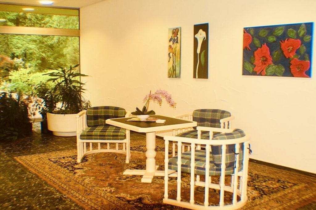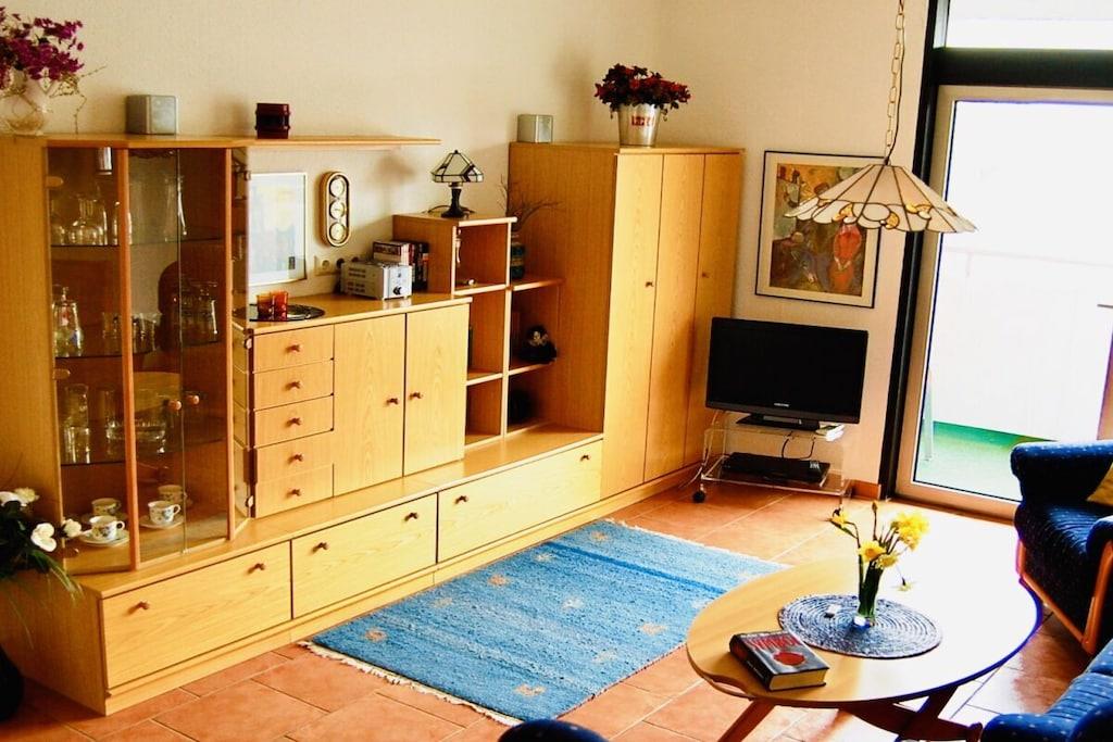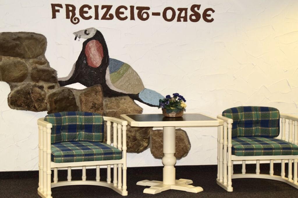 Unsere Ferienwohnung ist sehr ruhig und doch zentral gelegen. Sie ist 52 qm groß und hell, modern und zugleich gemütlich eingerichtet. Platz ist für 2 - 3 Personen. Das Wohnzimmer besticht durch eine komfortable Sitzgruppe sowie weitere Annehmlichkeiten wie Kabel-TV, DVD-Player und eine Stereoanlage. Angegliedert finden Sie den voll ausgestatteten Küchenbereich mit Einbauküche (Geschirrspüler, Backofen, vier Cerankochfeldern) und gemütlicher Essecke. Der große Balkon bietet Ihnen aus der elften Etage einen herrlichen Blick auf den Burgberg mit seiner Seilbahn und die umliegenden Wälder. Von der Ferienwohnung können Sie mit dem Aufzug zum großzügigen Hallenschwimmbad (10 m x 20 m) gelangen. Das Wasser ist wohltuend auf 28° temperiert. Angeschlossen finden Sie einen Saunabereich mit Finn- (85°) und Kräutersauna(65°) und einem großen Ruheraum. Die Nutzung des Freizeitbereiches ist täglich möglich und für unsere Gäste kostenfrei.