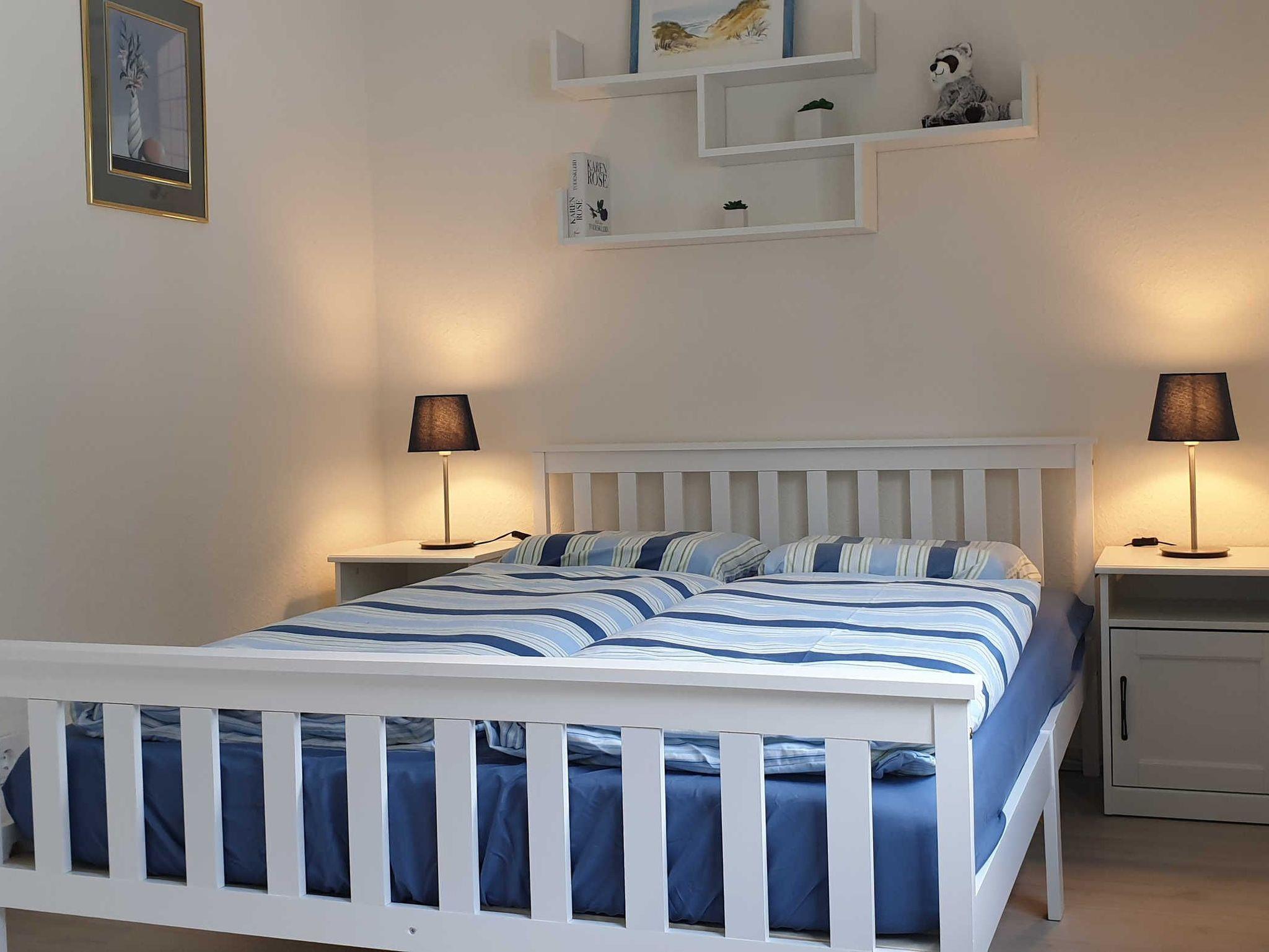 1 Schlafzimmer (1,40 m breites Doppelbett, durchgängige Matratze)
