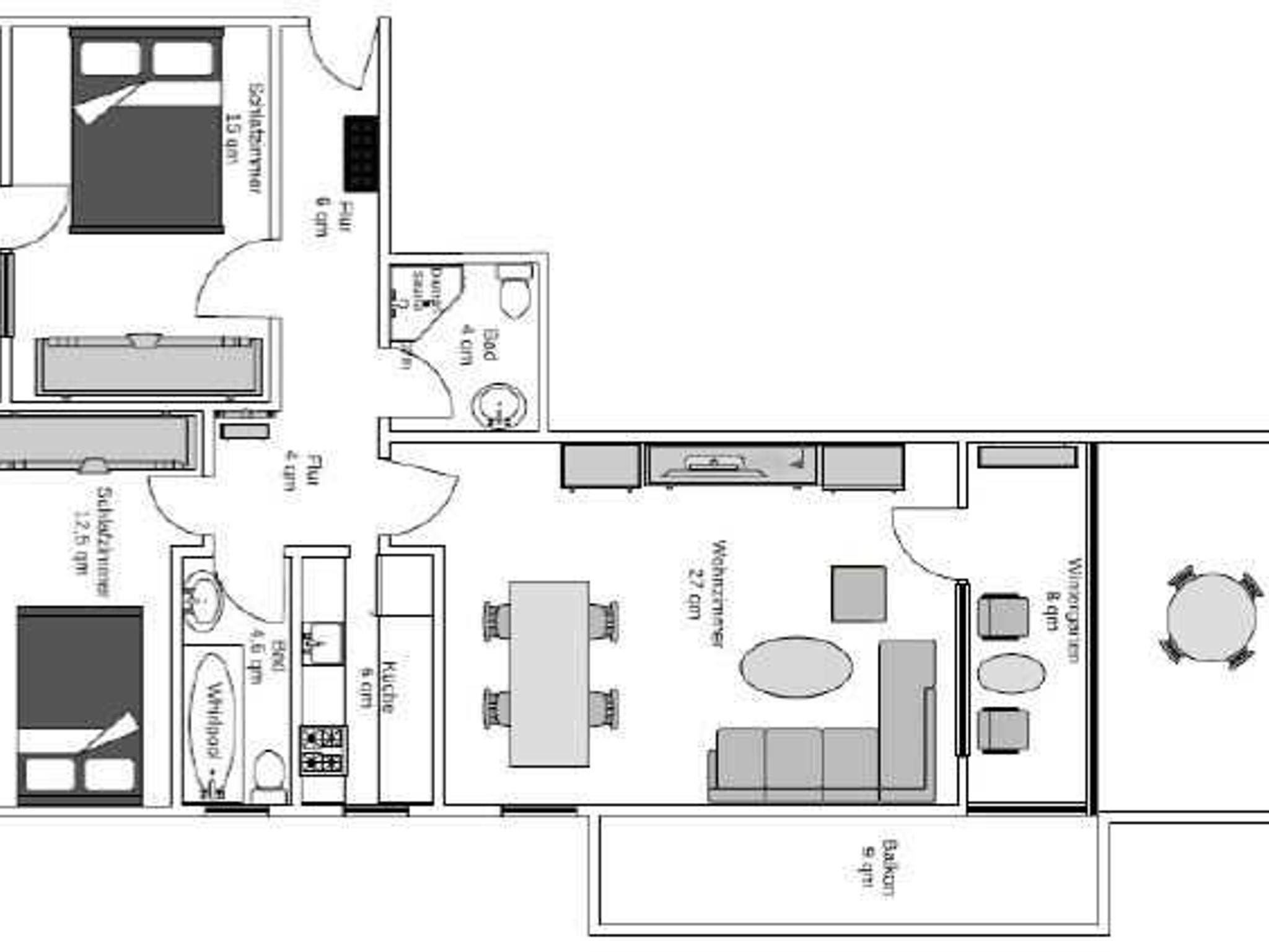 Auf ca. 78 qm zzgl. Wintergarten (8 m²), einem separaten Nord-Ost-Balkon (7 m²) und einer große Ost-West Terrasse (18 m²) erwartet Sie viel Raum, um Ihren Besuch zu genießen. Die Wohnung verfügt neben den 2 Schlafzimmer über eine Schlafcouch im Wohnzimmer. Die 2 hochwertigen Badezimmer laden mit Whirlpool und Dampfsauna zum Entspannen ein. Alle Außenbereiche verfügen über Gartenmöbel. Die Ferienwohnung befindet sich im Hochparterre, ist aber auch mit dem Fahrstuhl zu erreichen, so das ein ebenerdiger Zugang möglich ist