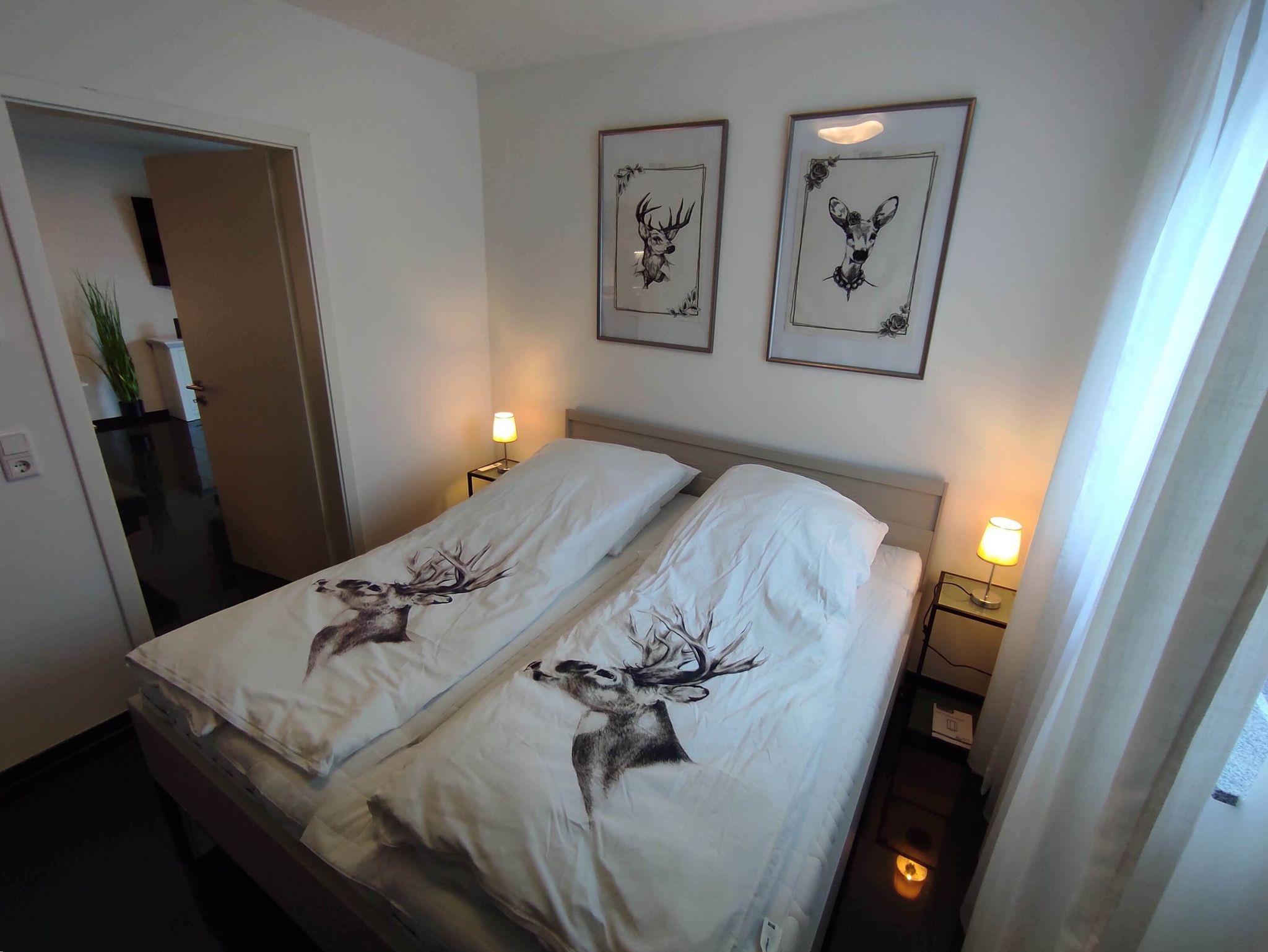 Im Schlafzimmer steht ein 180 x 200 cm Doppelbett, sowie ein 200 cm breiter Kleiderschrank, in dem sich problemlos die mitgebrachte Kleidung unterbringen lässt. Ein weiterer 32 Zoll großer fernseher runden die Einrichtung des Schlafzimmers ab.