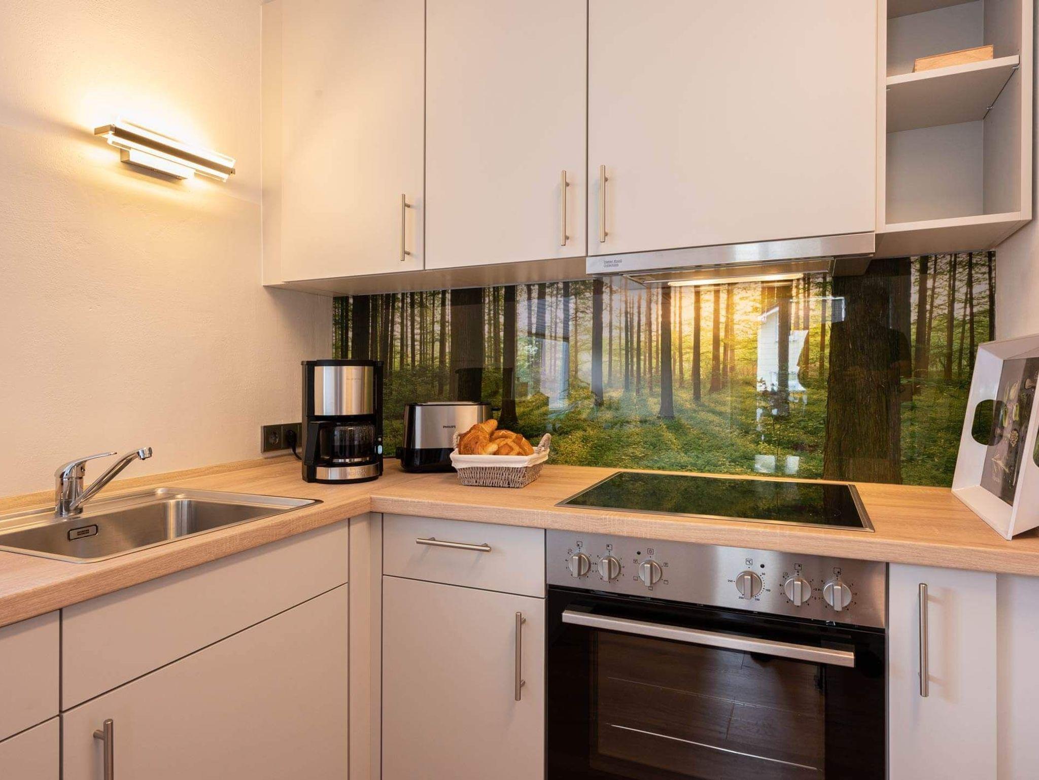 Neue, separate Küche mit allem, was man braucht zum Frühstücken und Mahlzeiten zubereiten.
